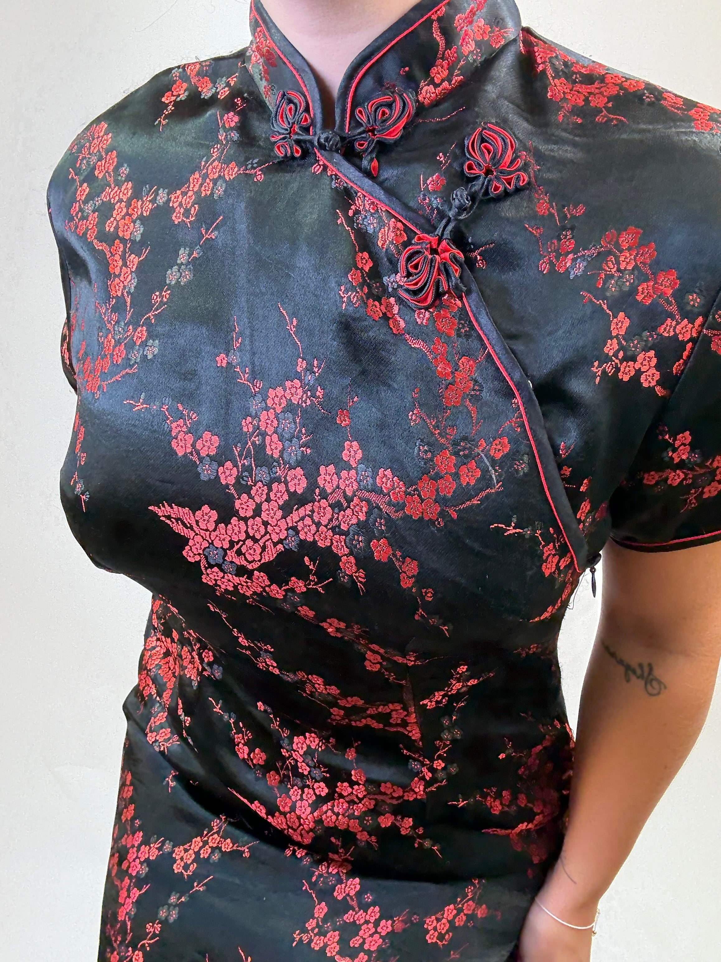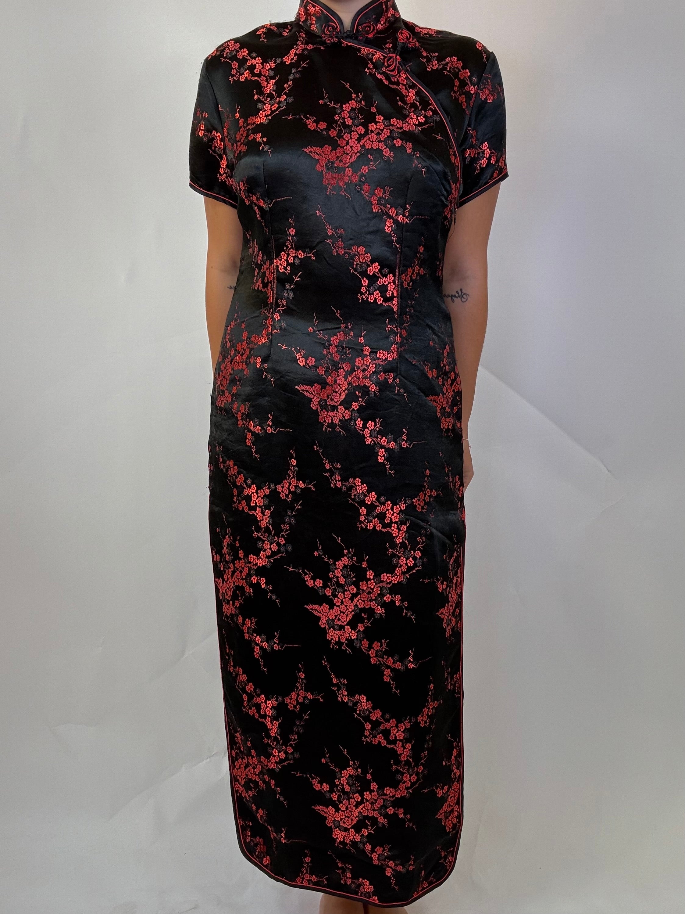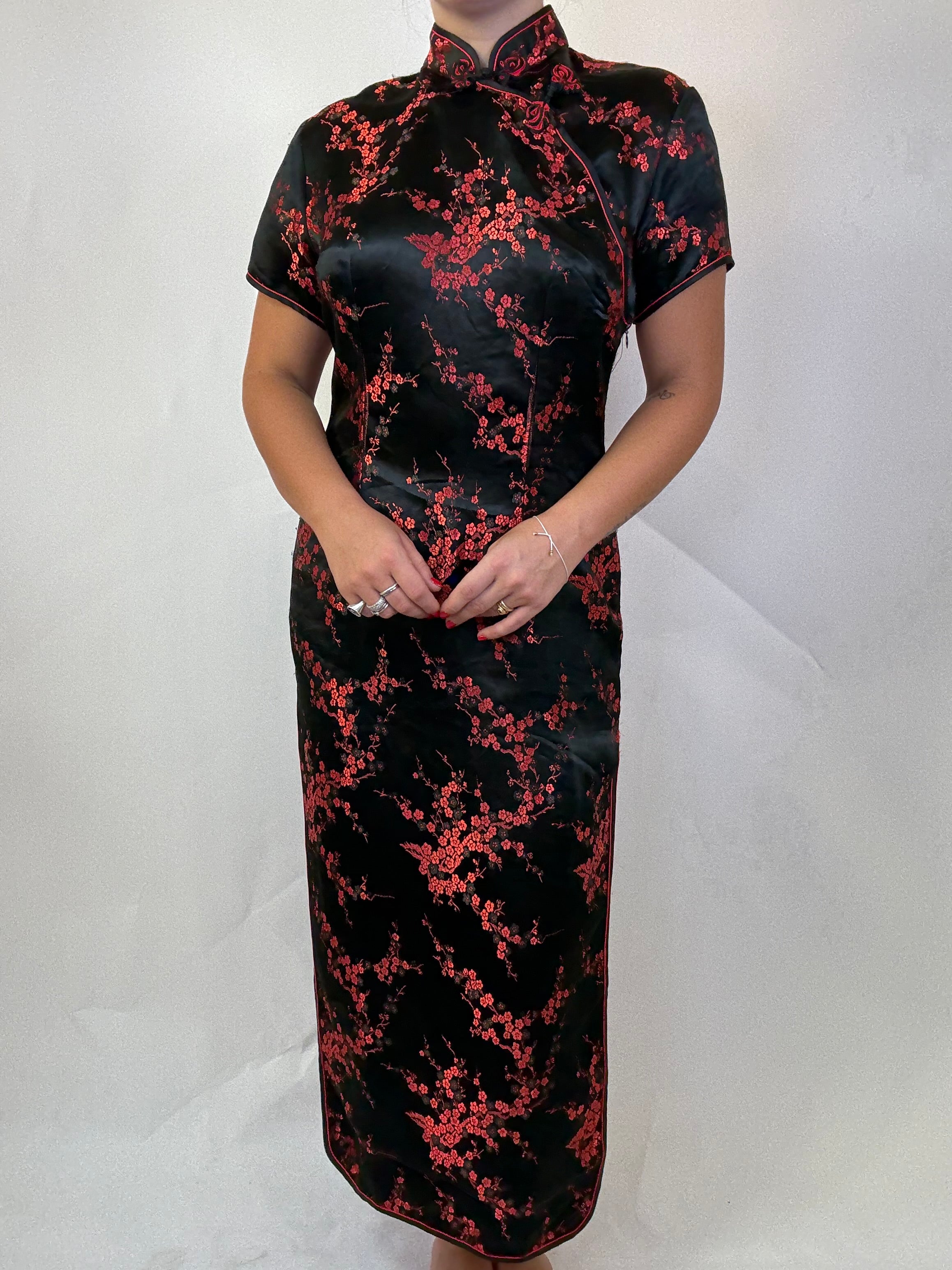 Abito Cinese con ricamo 100% seta taglia L Spalla a Spalla: 42cm Lunghezza totale: 131cm Taglia Modello\o:  42IT x 1,65cm