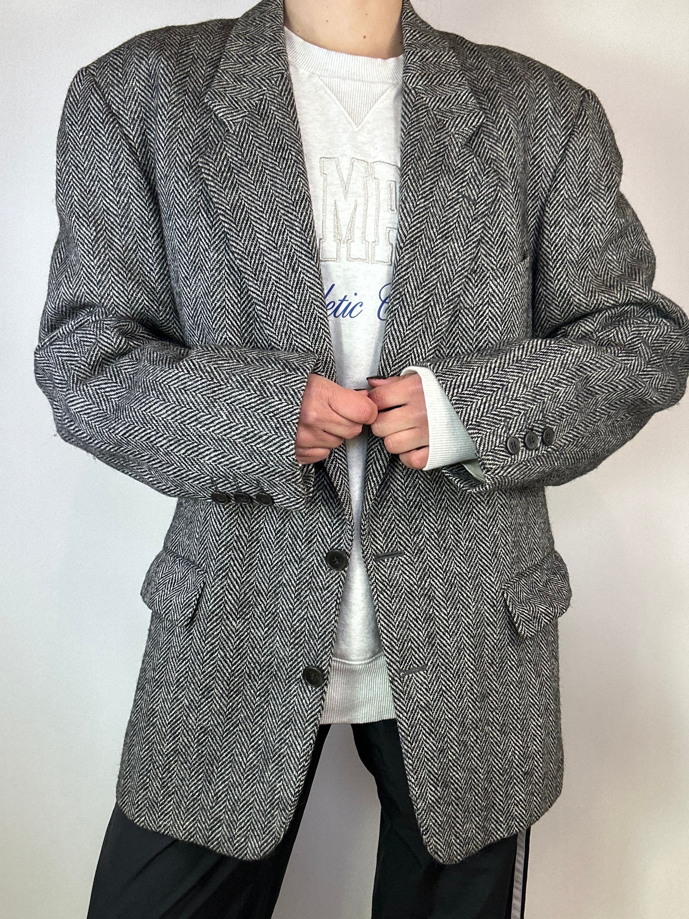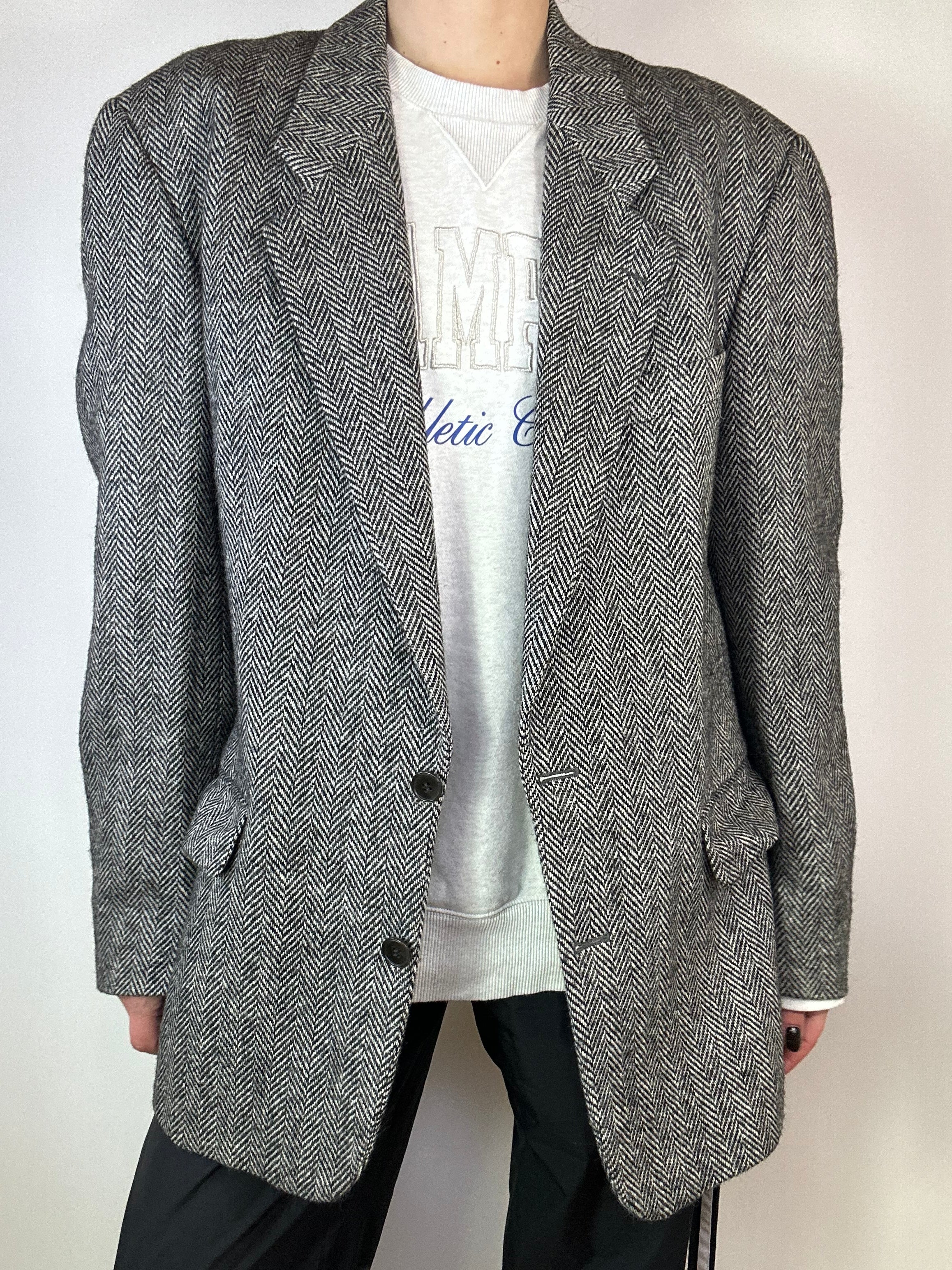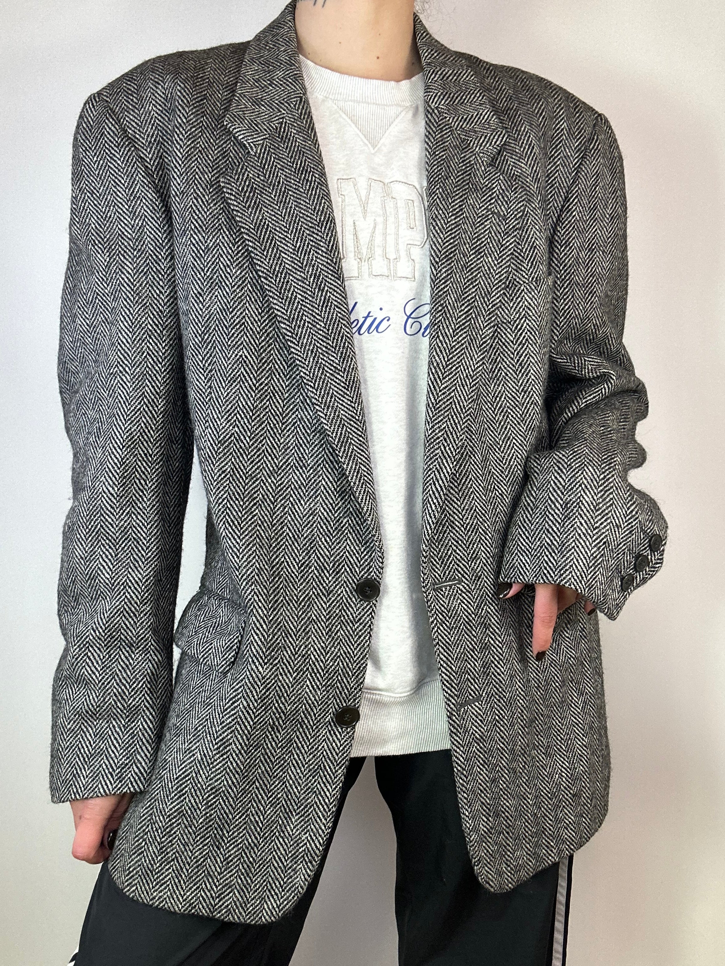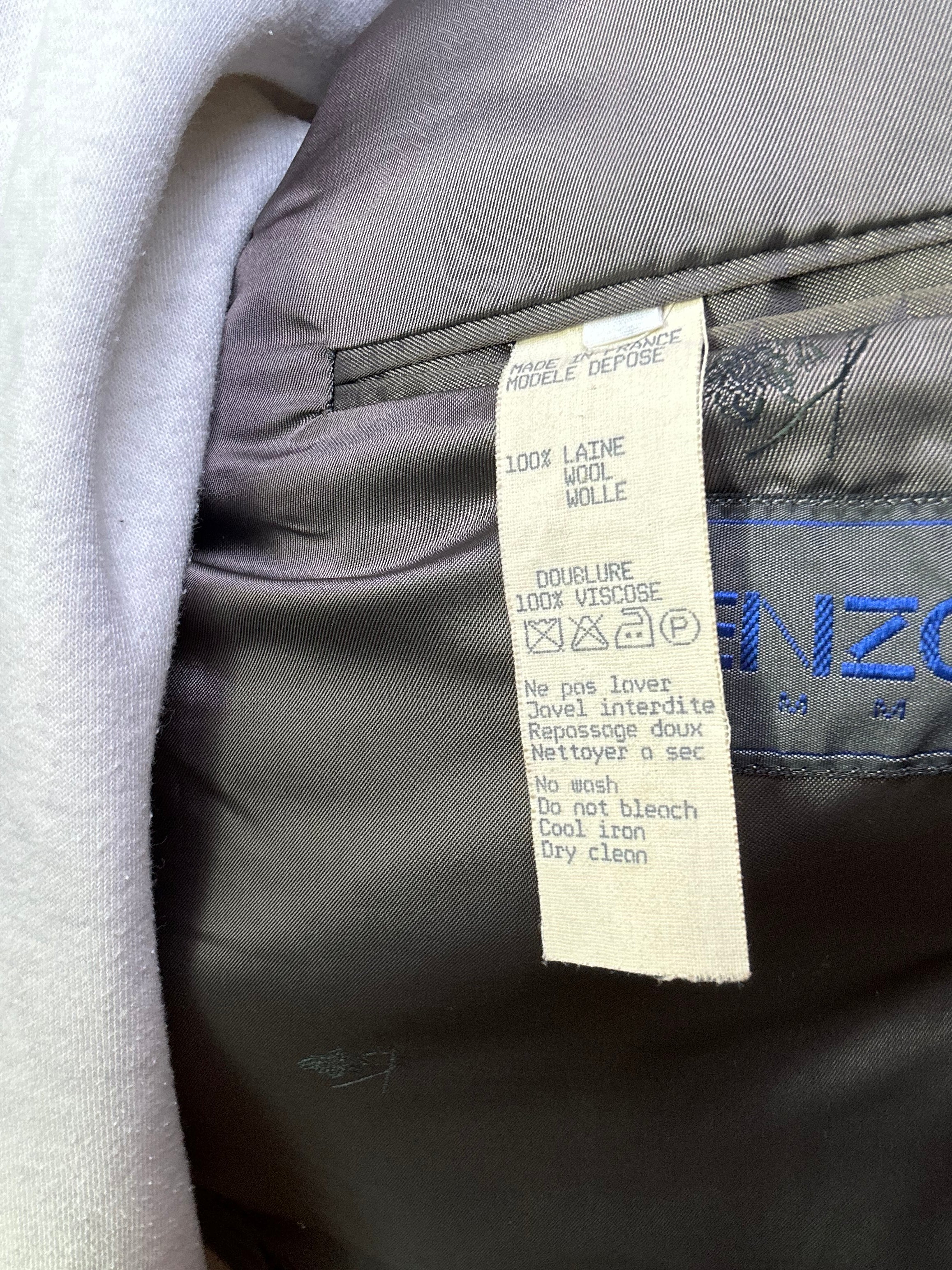 Blazer spigato grigio Kenzo taglia 48 Vestibilità: 42-44 Misure capo: Spalla a spalla 55cm, lunghezza 79cm Modella/o: Taglia 42-44, Altezza 1.70