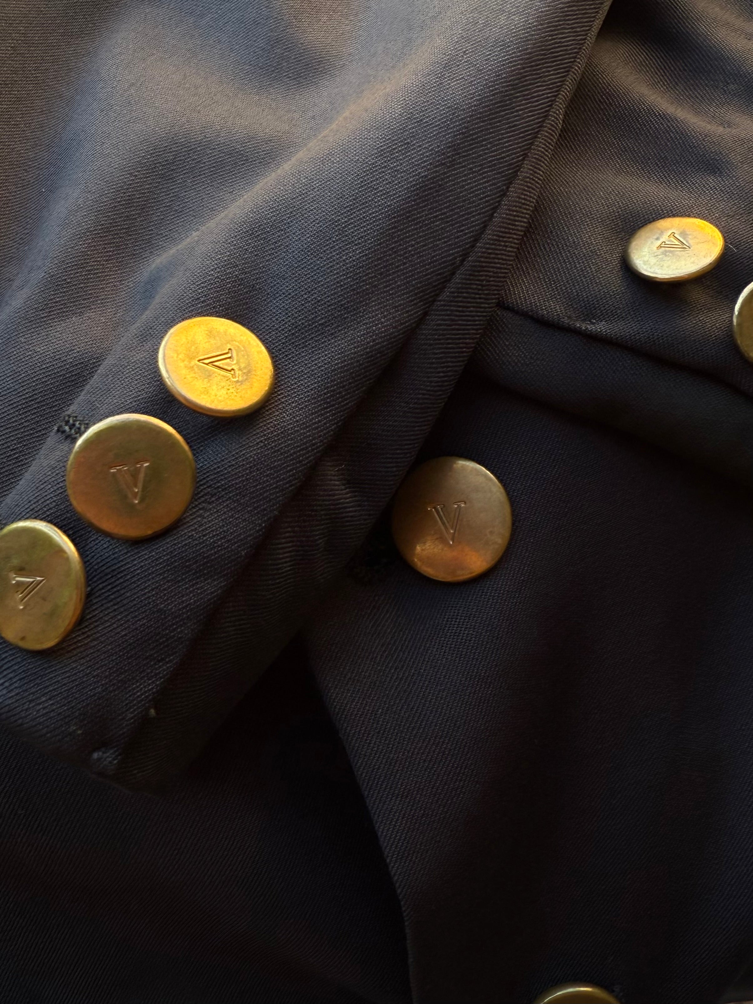 Blazer Valentino con bottoni legati in blu navy taglia 46 in pura lana vergine