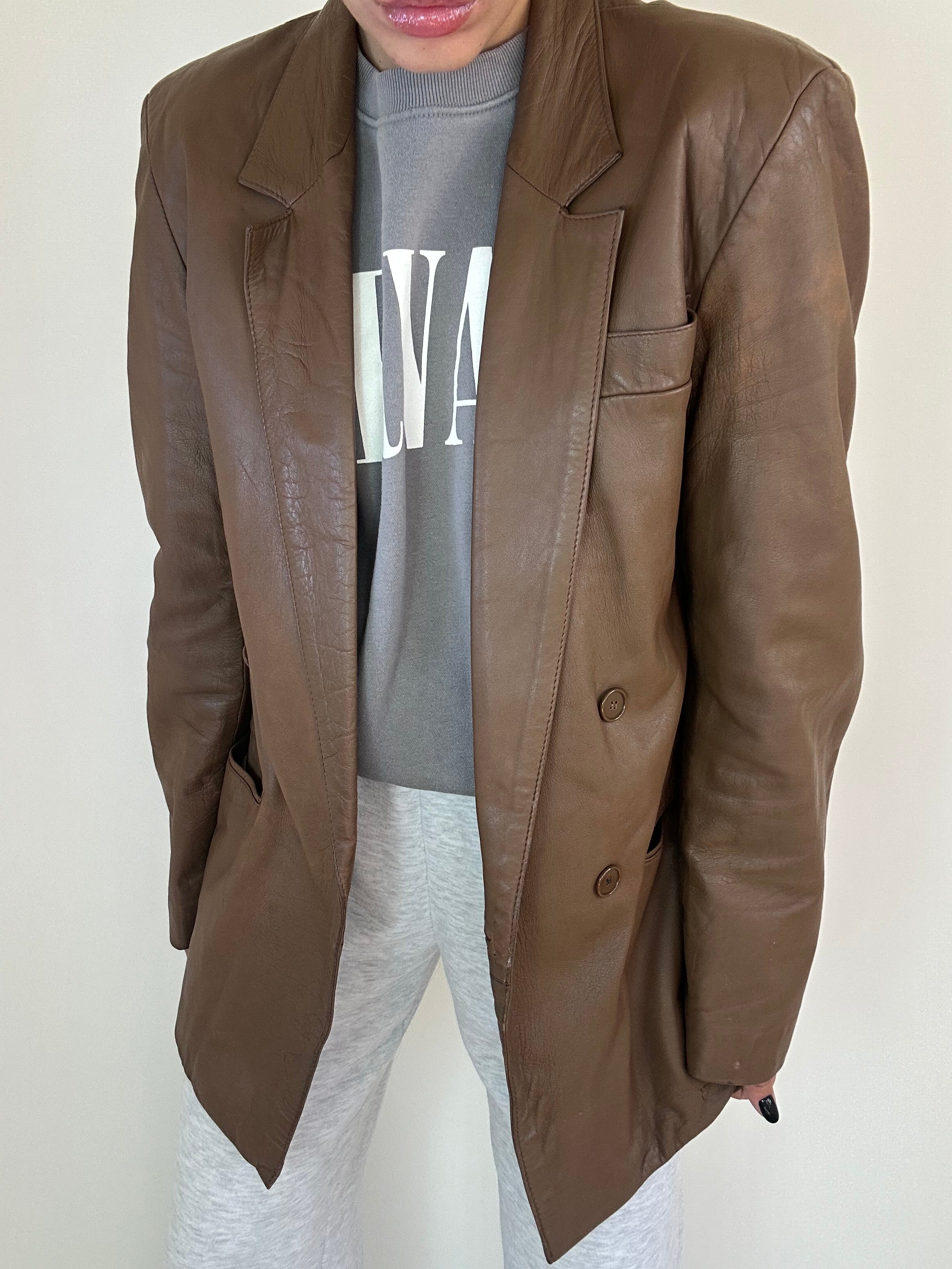 Blazer vera pelle beige taglia 50 Spalla a Spalla: 48cm Lunghezza totale: 77cm Taglia Modello\a:  42IT x 1,70