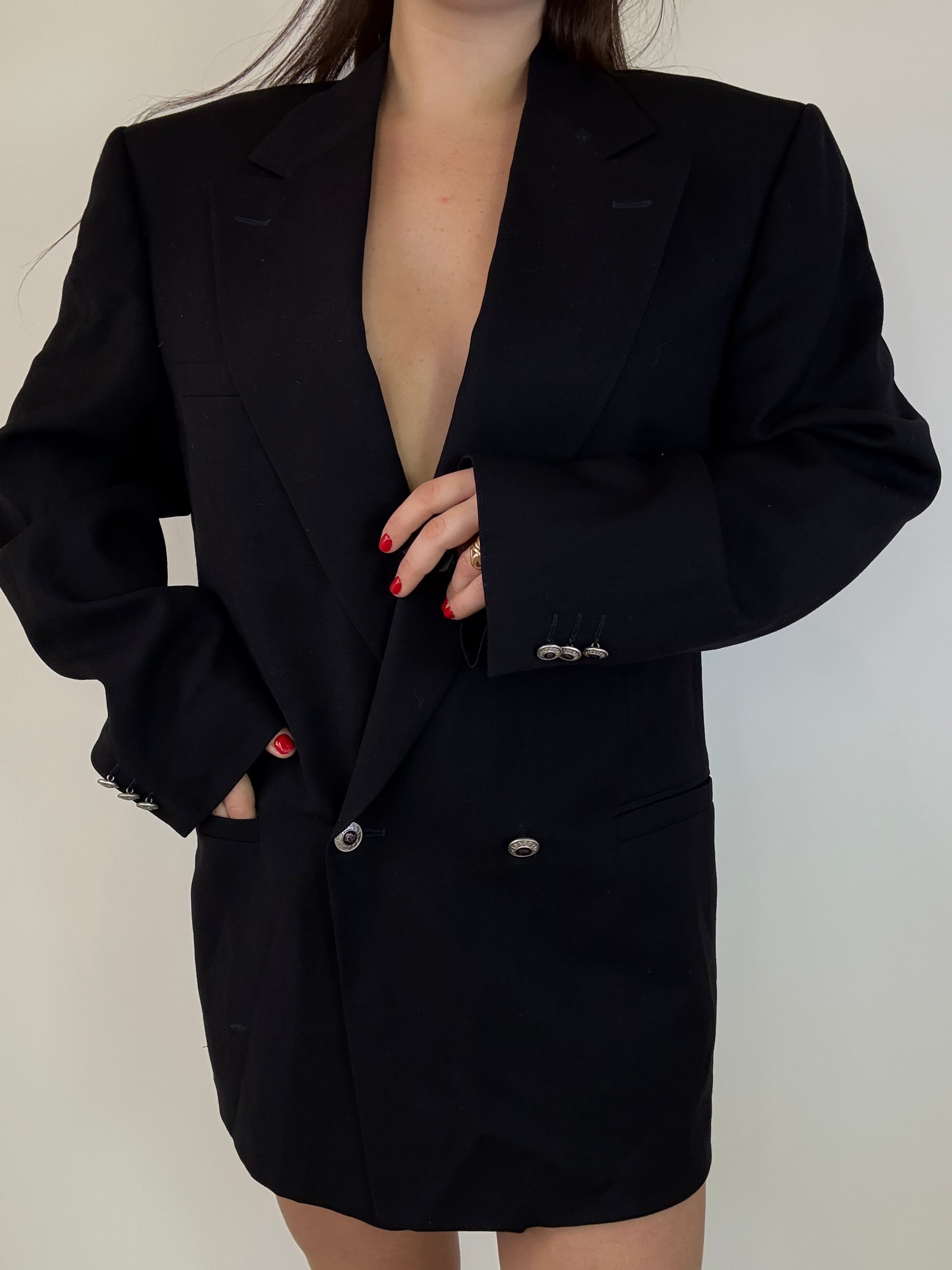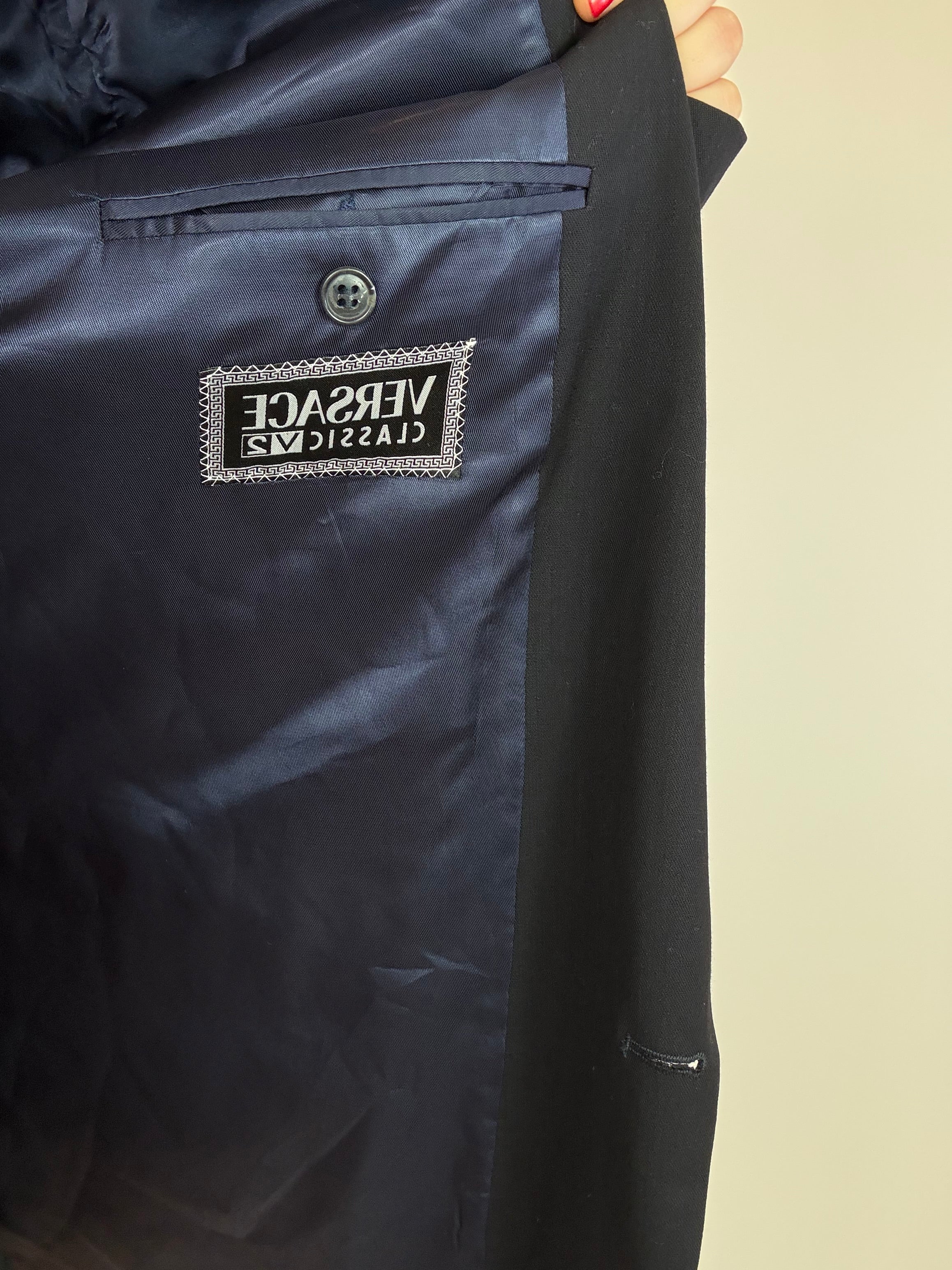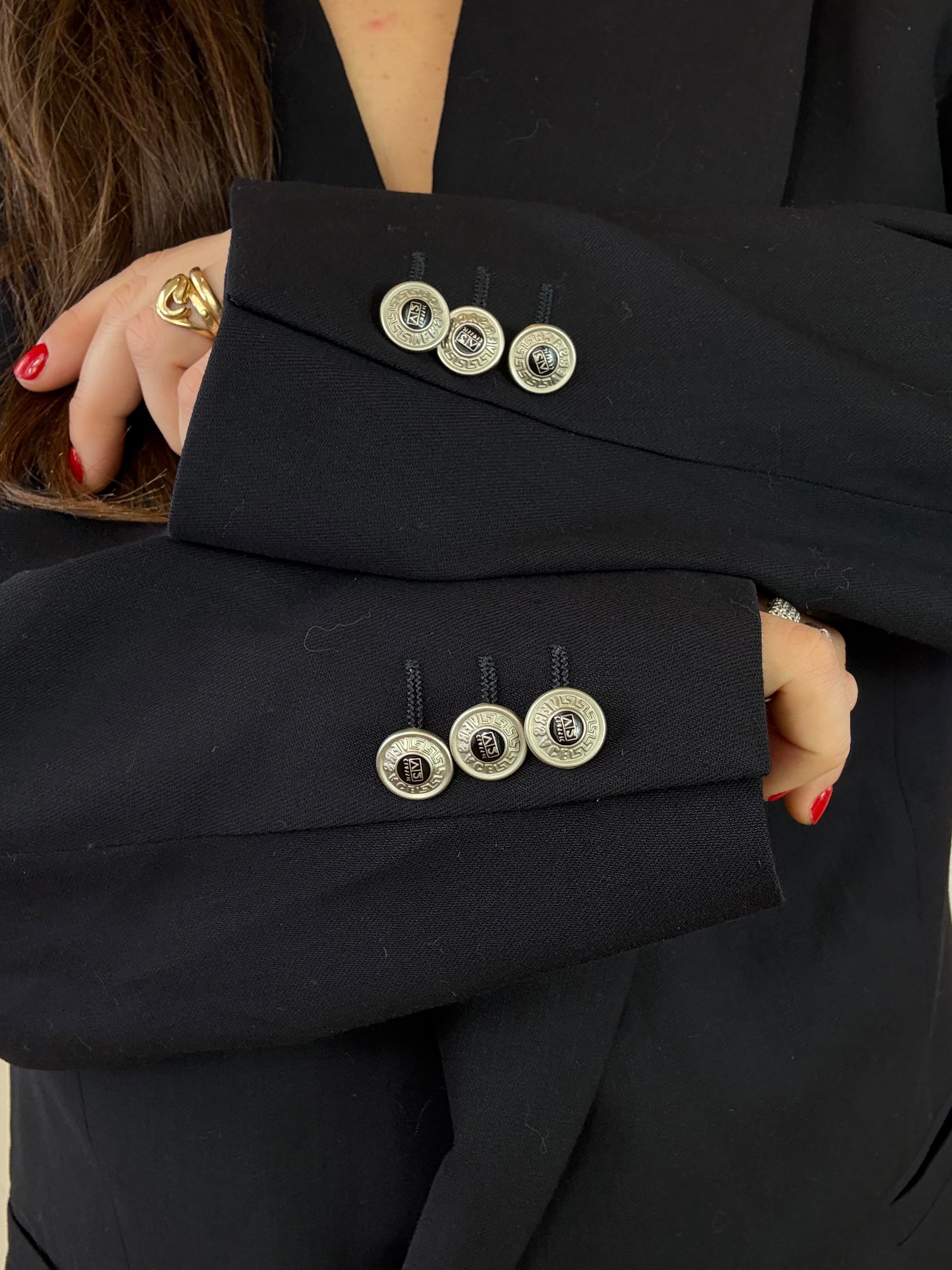 Blazer Versace con bottoni logati in blu notte in pura lana vergine taglia 50