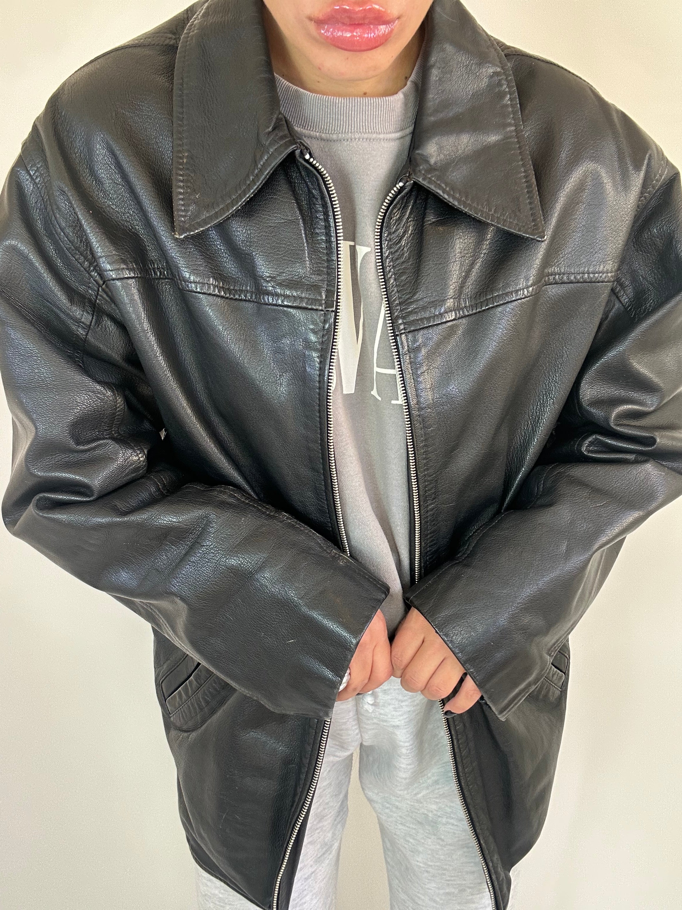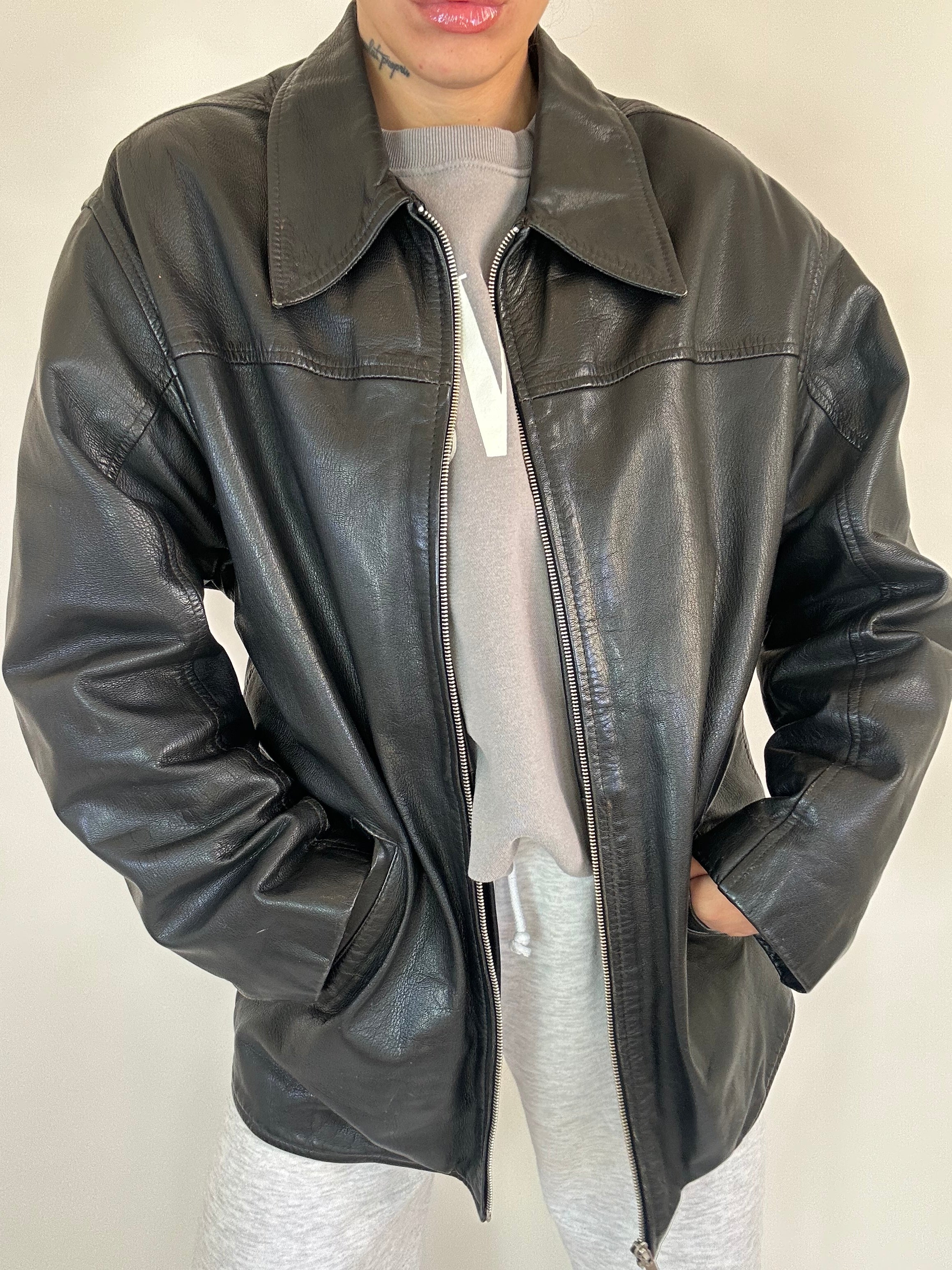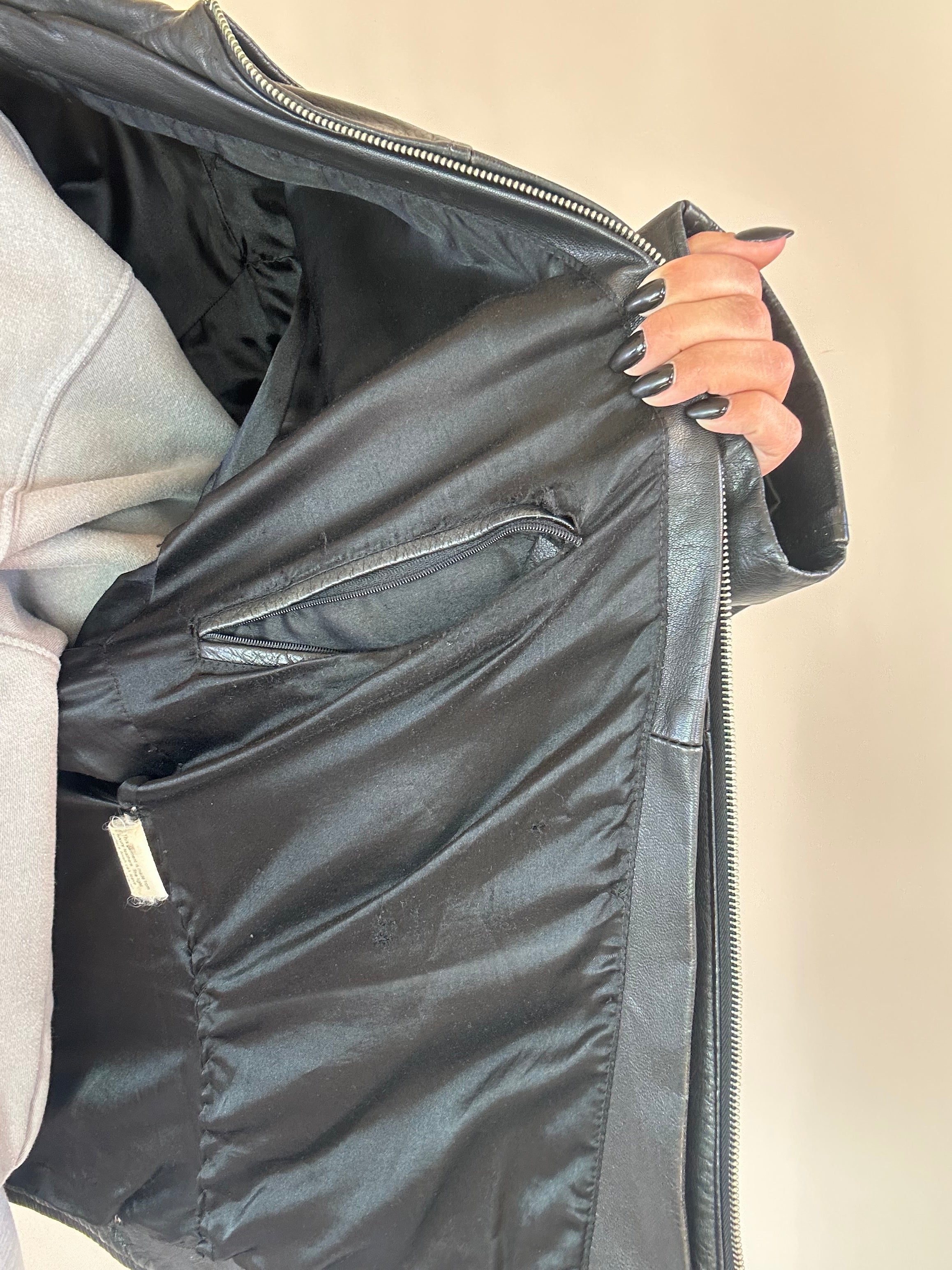 Bomber vera pelle nero taglia XL  Spalla a Spalla: 54cm  Lunghezza totale: 76cm  Taglia Modello\a:  42IT x 1,70