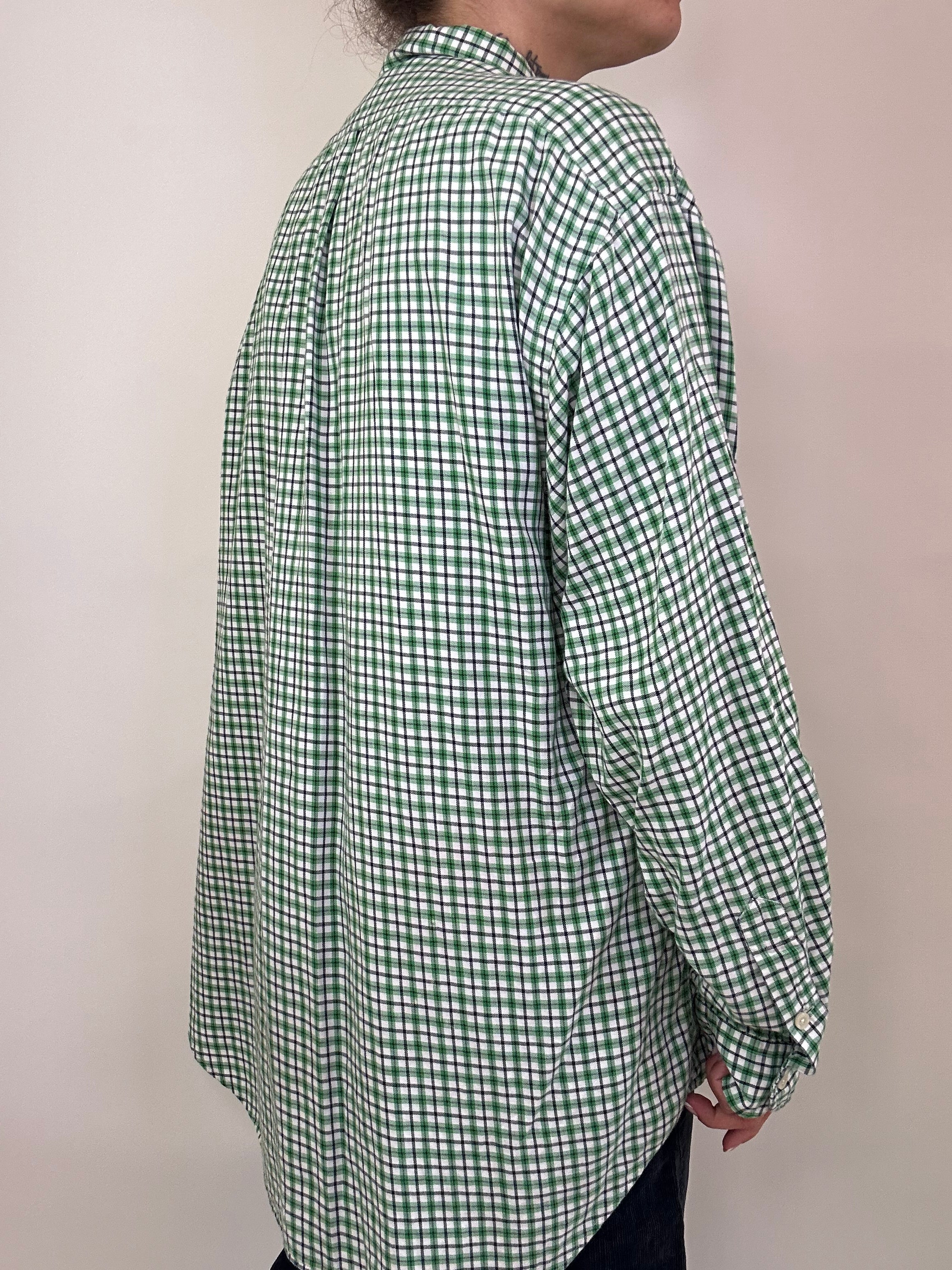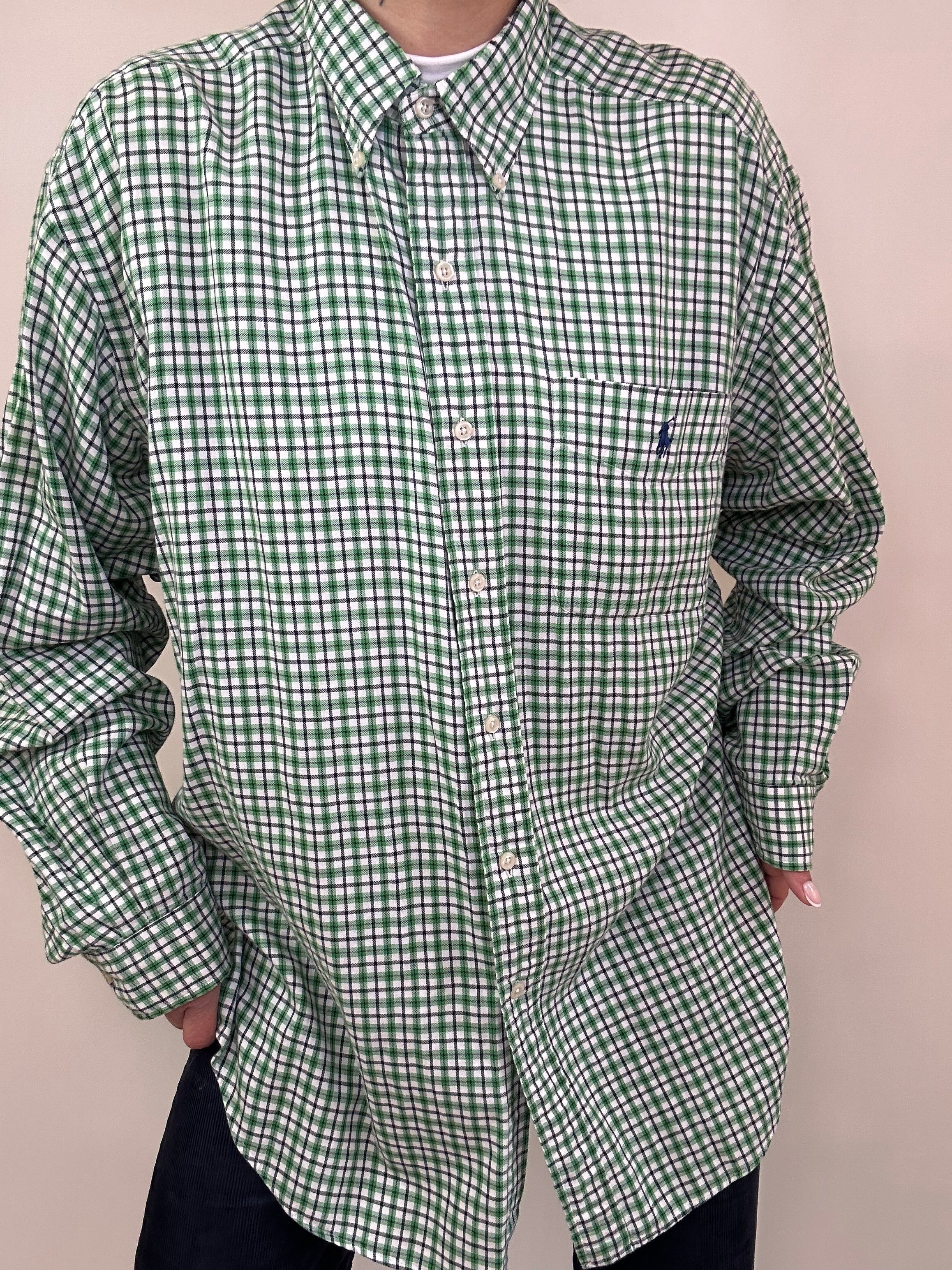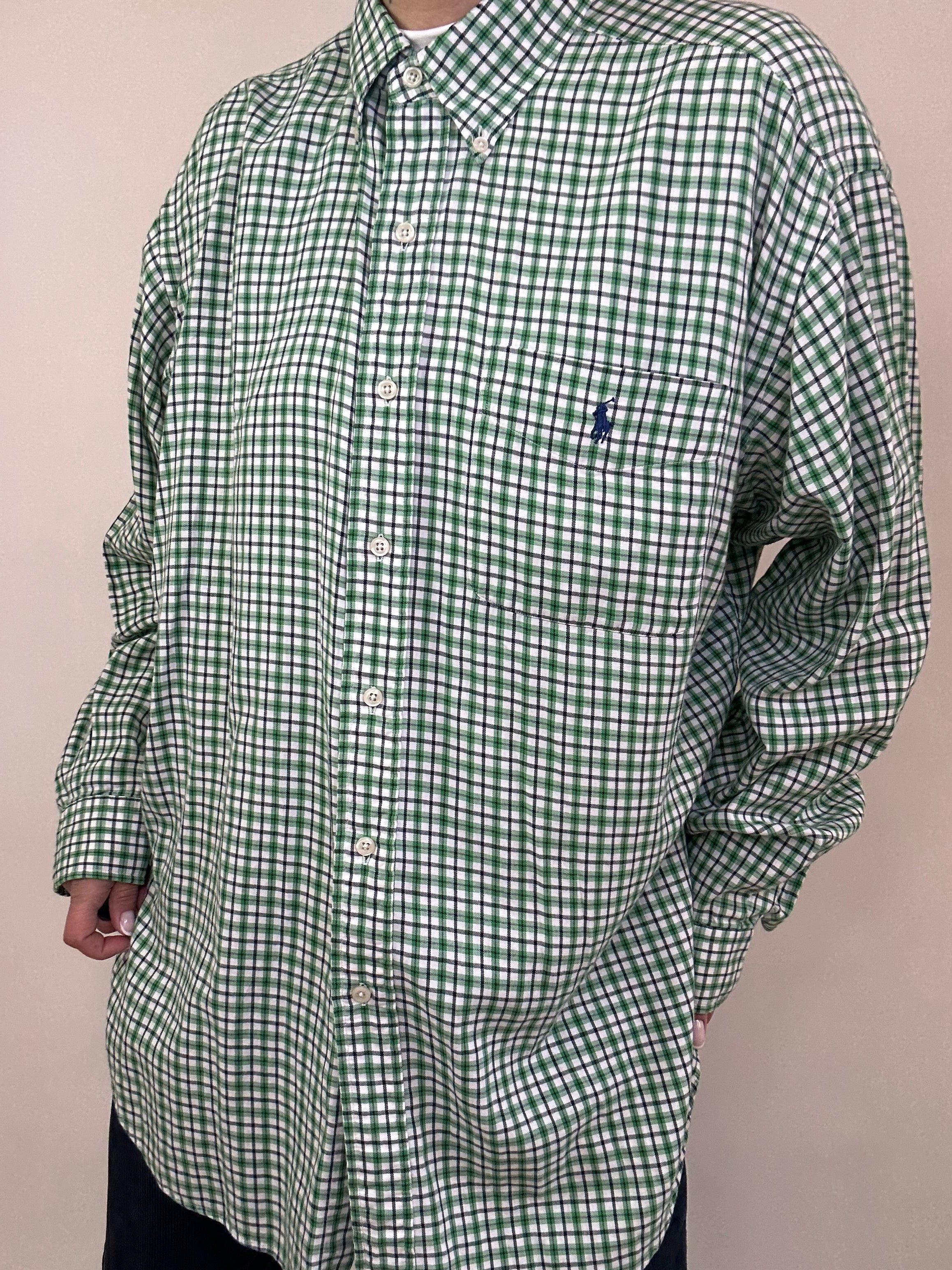 Camicia Quadretti Ralph Lauren con il verde taglia L in 100% cotone Vestibilità donna: 42-44 Misure capo: Spalla a spalla 58cm, lunghezza 85cm Altezza modella: 1.65, taglia 42
