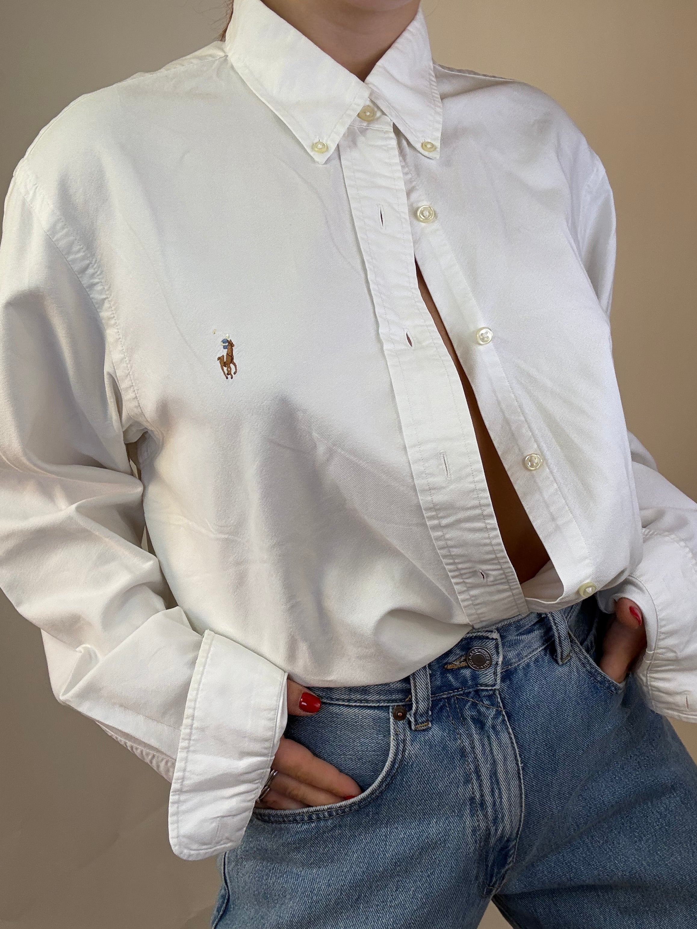 Camicia Ralph Lauren bianca Custom Fit taglia 17-43 in 100% cotone  Spalla a Spalla: 50cm Lunghezza totale: 81cm Taglia Modello\o:  42IT x 1,65cm