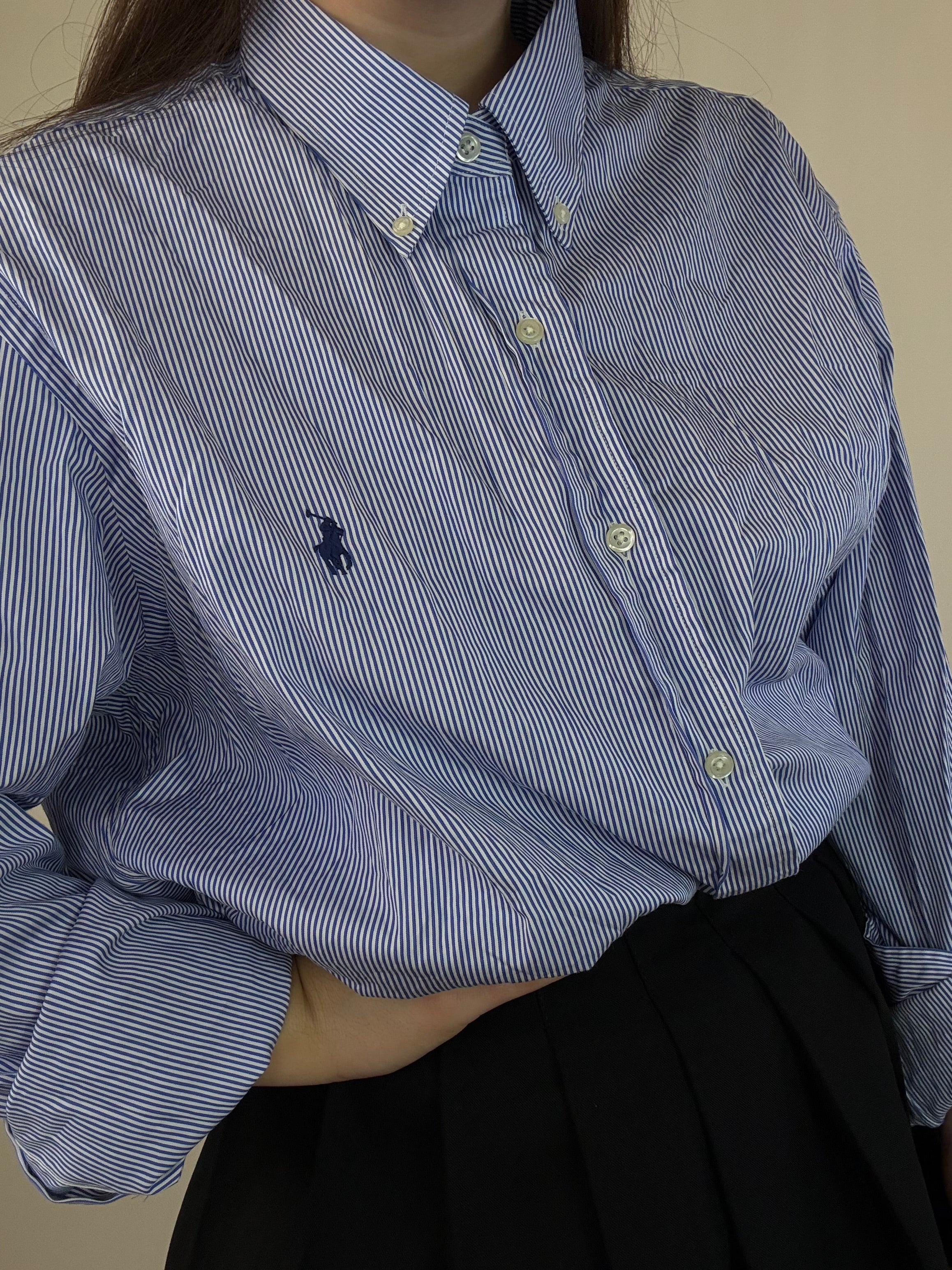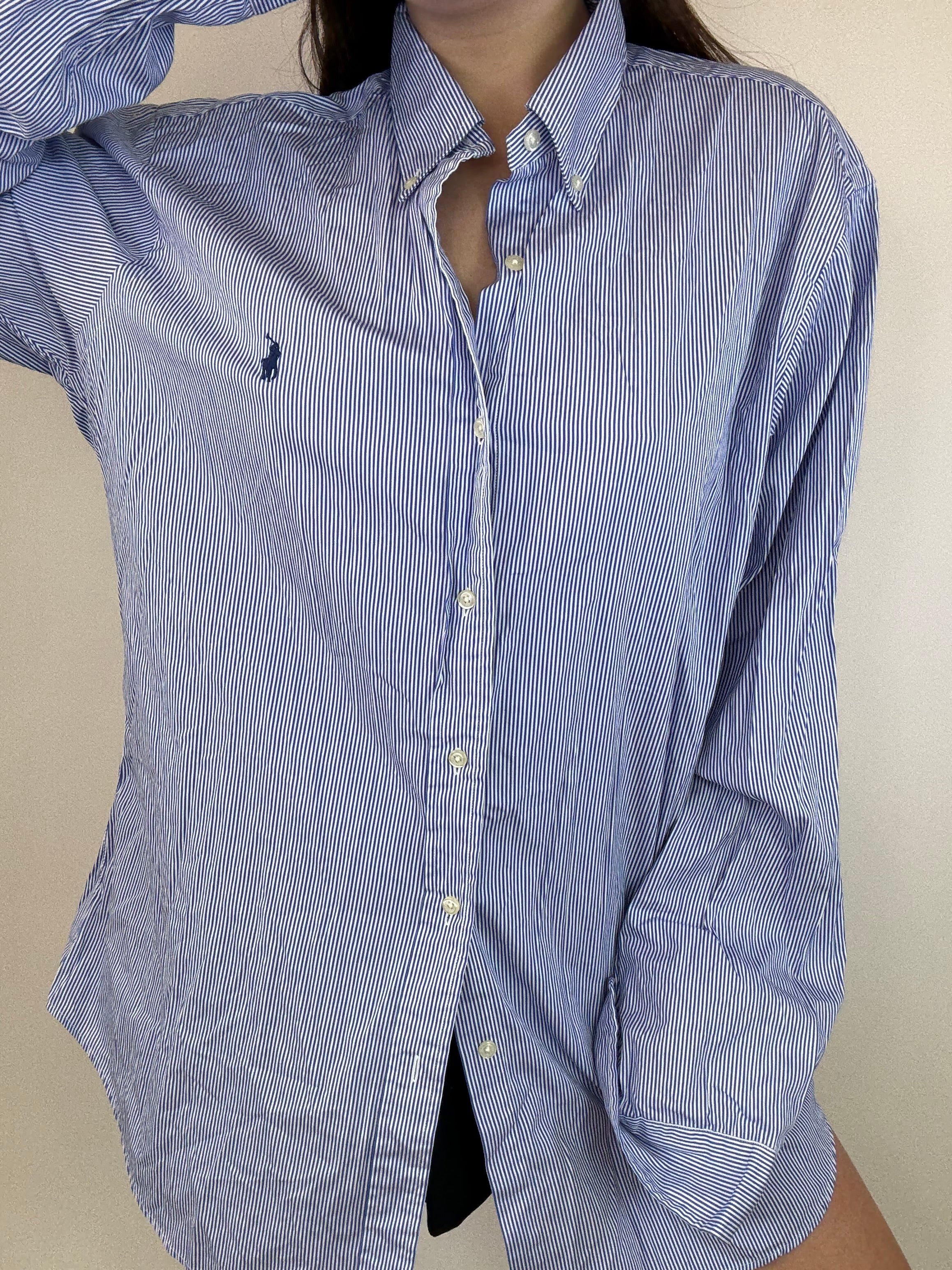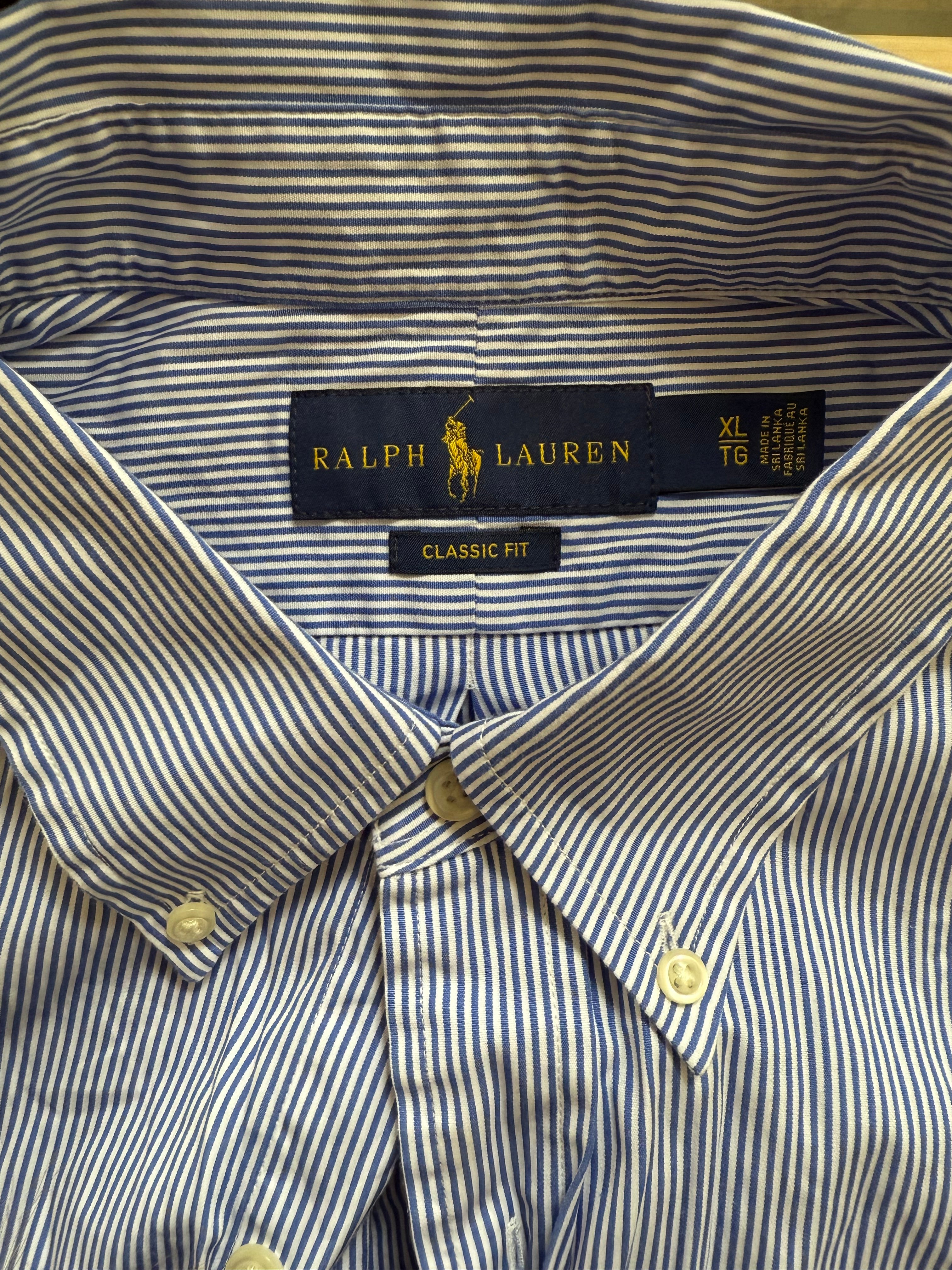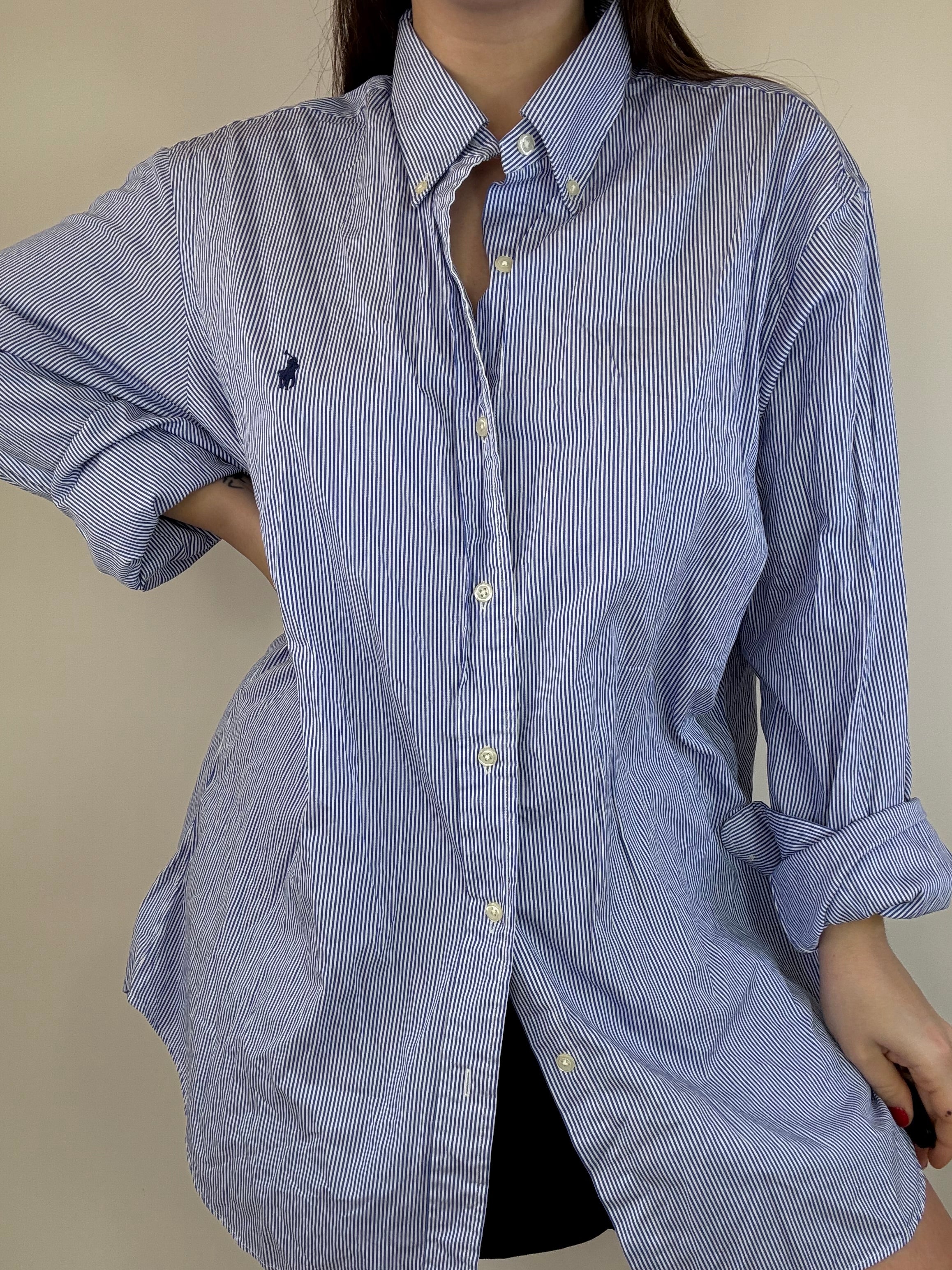 Camicia a Righe Ralph Lauren taglia XL Misure capo: Spalla a spalla 50cm, Lunghezza 77cm Modella: Taglia 42, 1.65mt