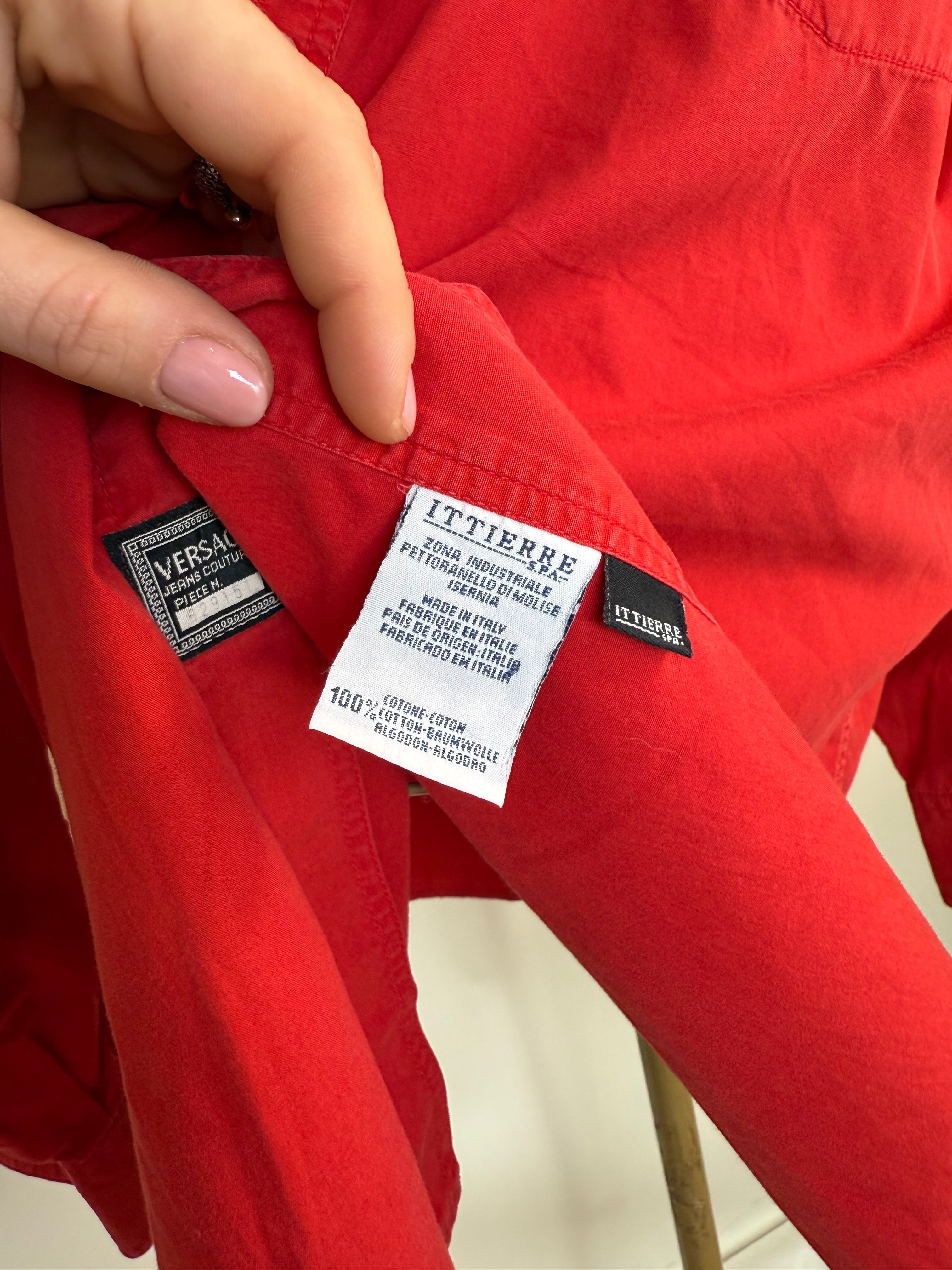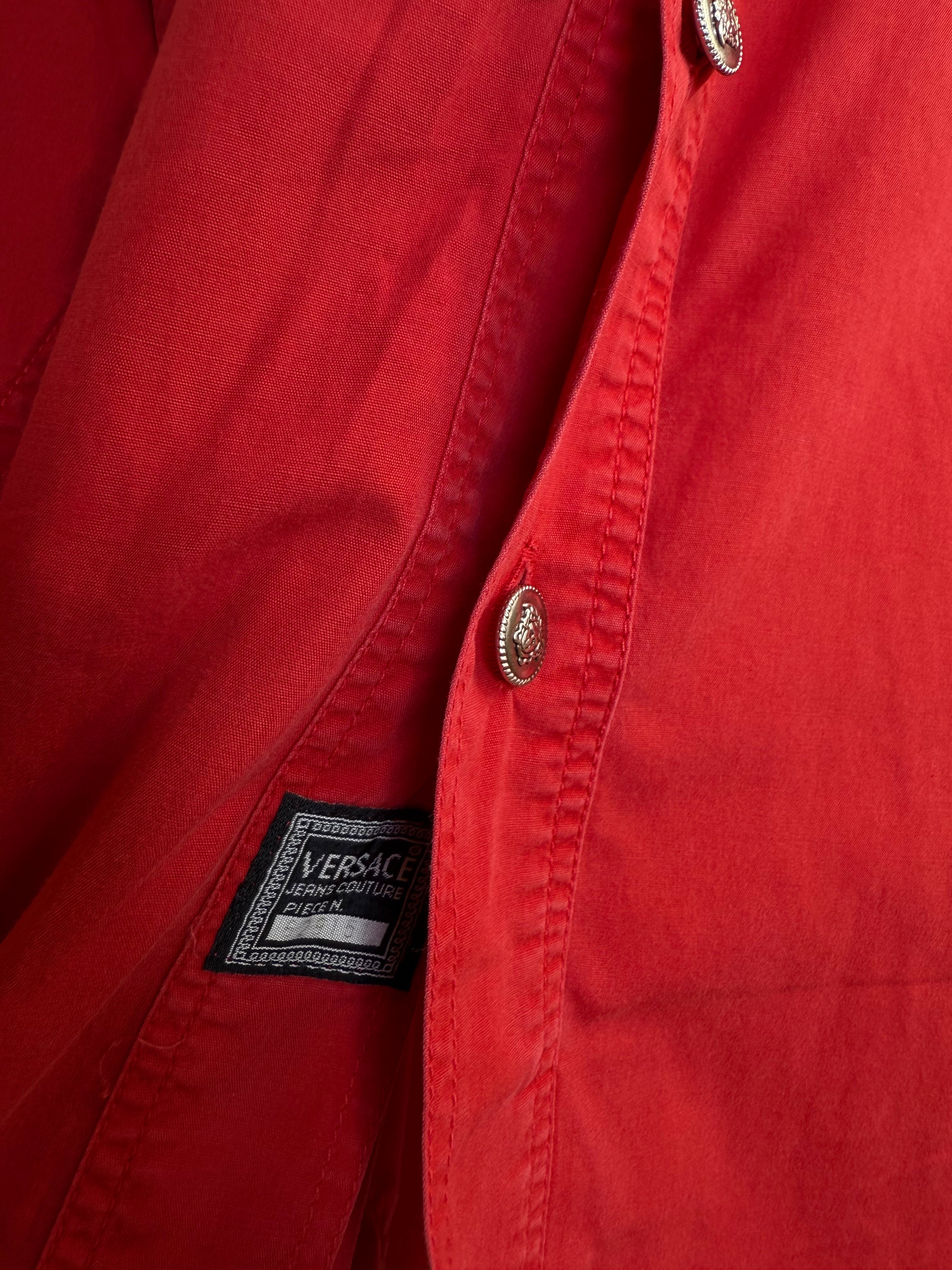 Camicia Versace con bottoni logati leone taglia M in 100% cotone Vestibilità: 42-44 Misure capo: Spalla a spalla 60cm, lunghezza 83cm Modella/o: Taglia 42-44, Altezza 1.65