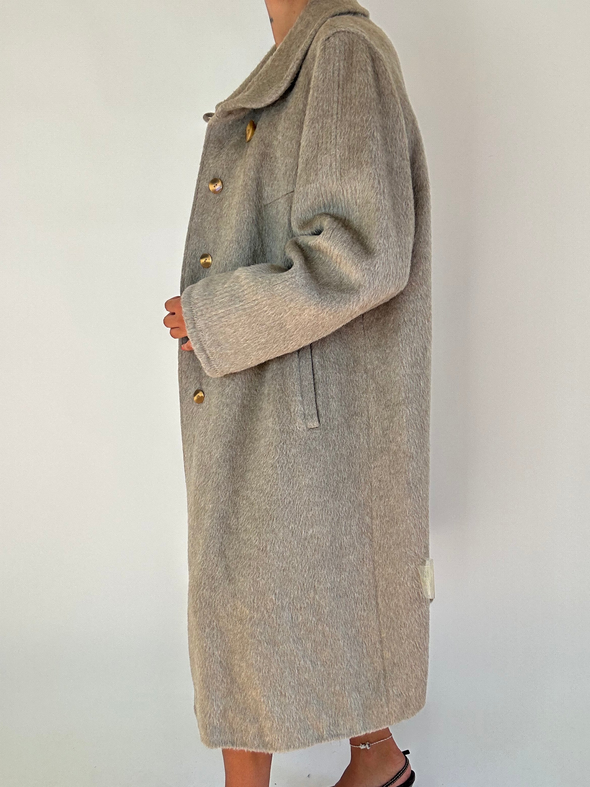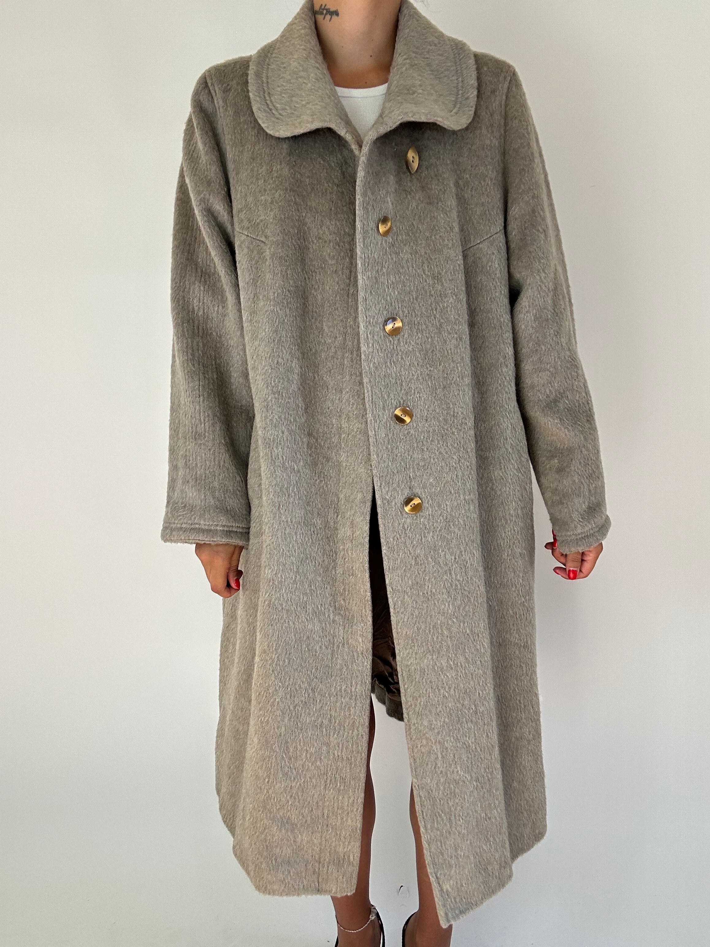 Cappotto Beige taglia 44 in 85% Lama 25% Lana  Spalla a Spalla: 44cm Lunghezza totale: 116cm  Taglia Modello\a:  42IT x 1,70