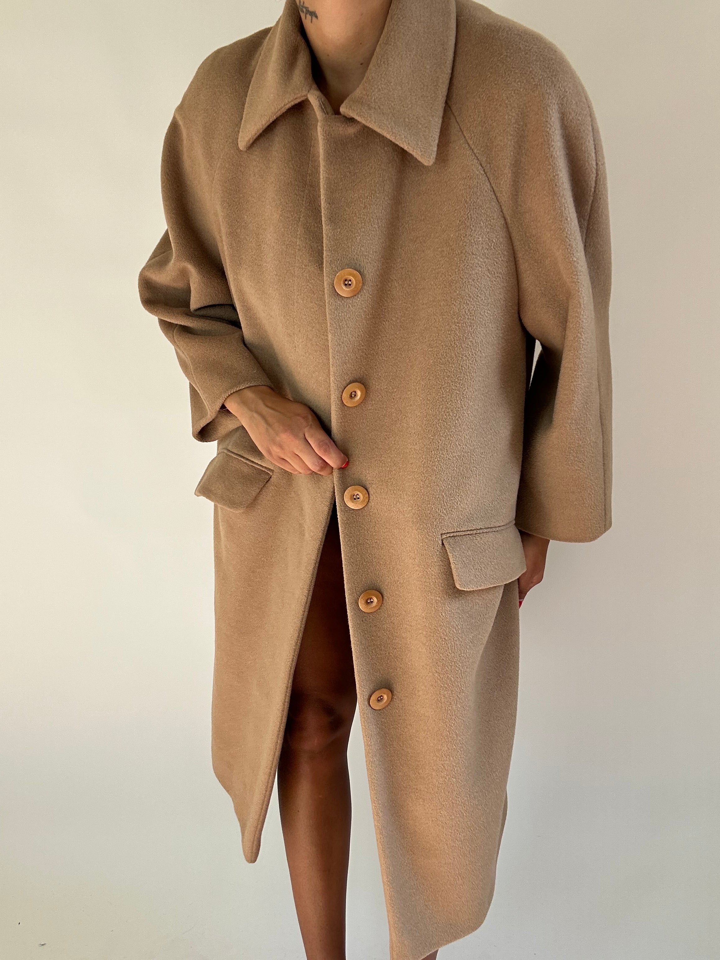 Cappotto Les Copains beige taglia M in 70% Lana 15% Cashmere 15% Angorà