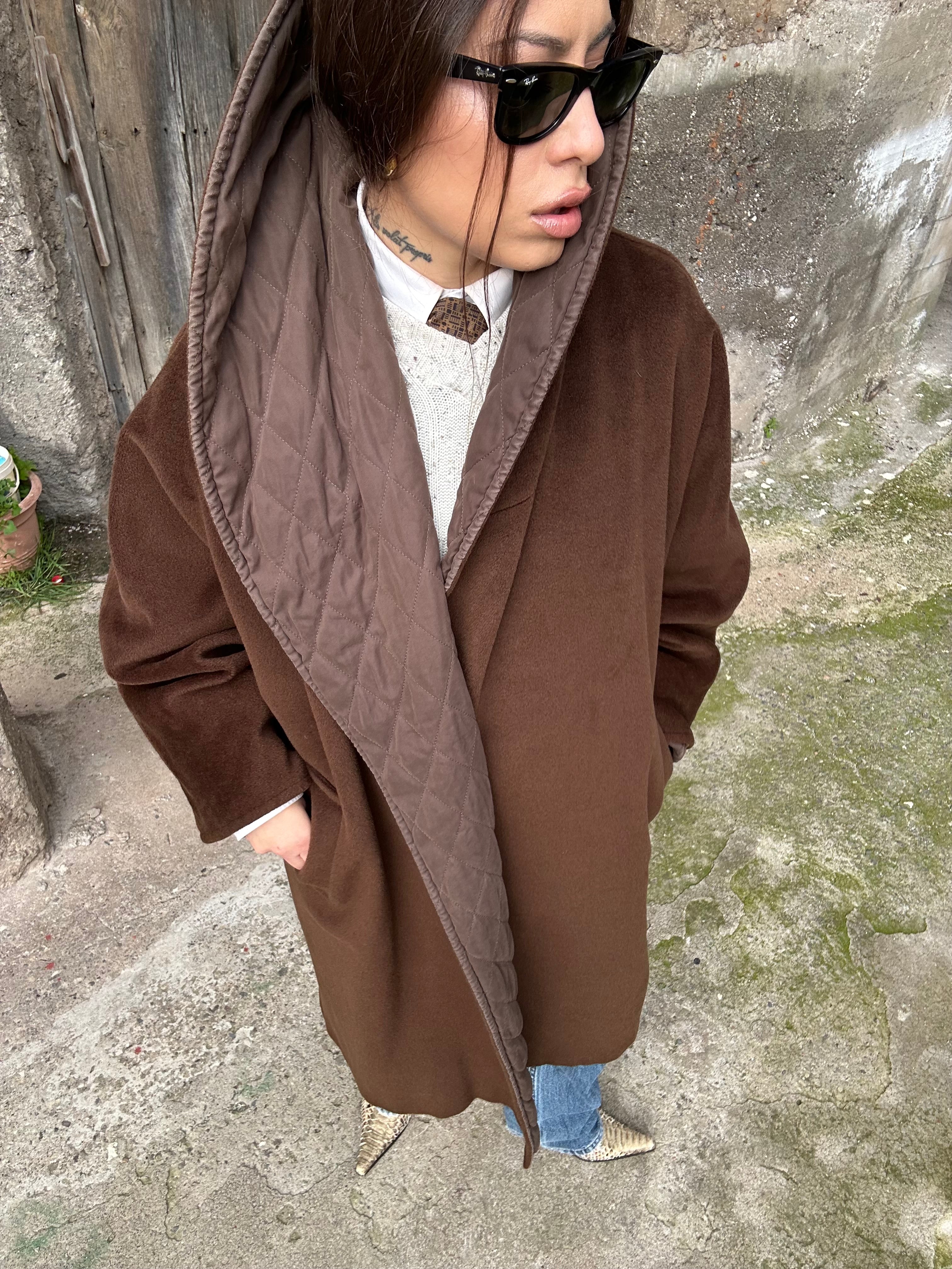 Cappotto Max Mara Marrone con rever imbottito taglia 44 in pura lana vergine