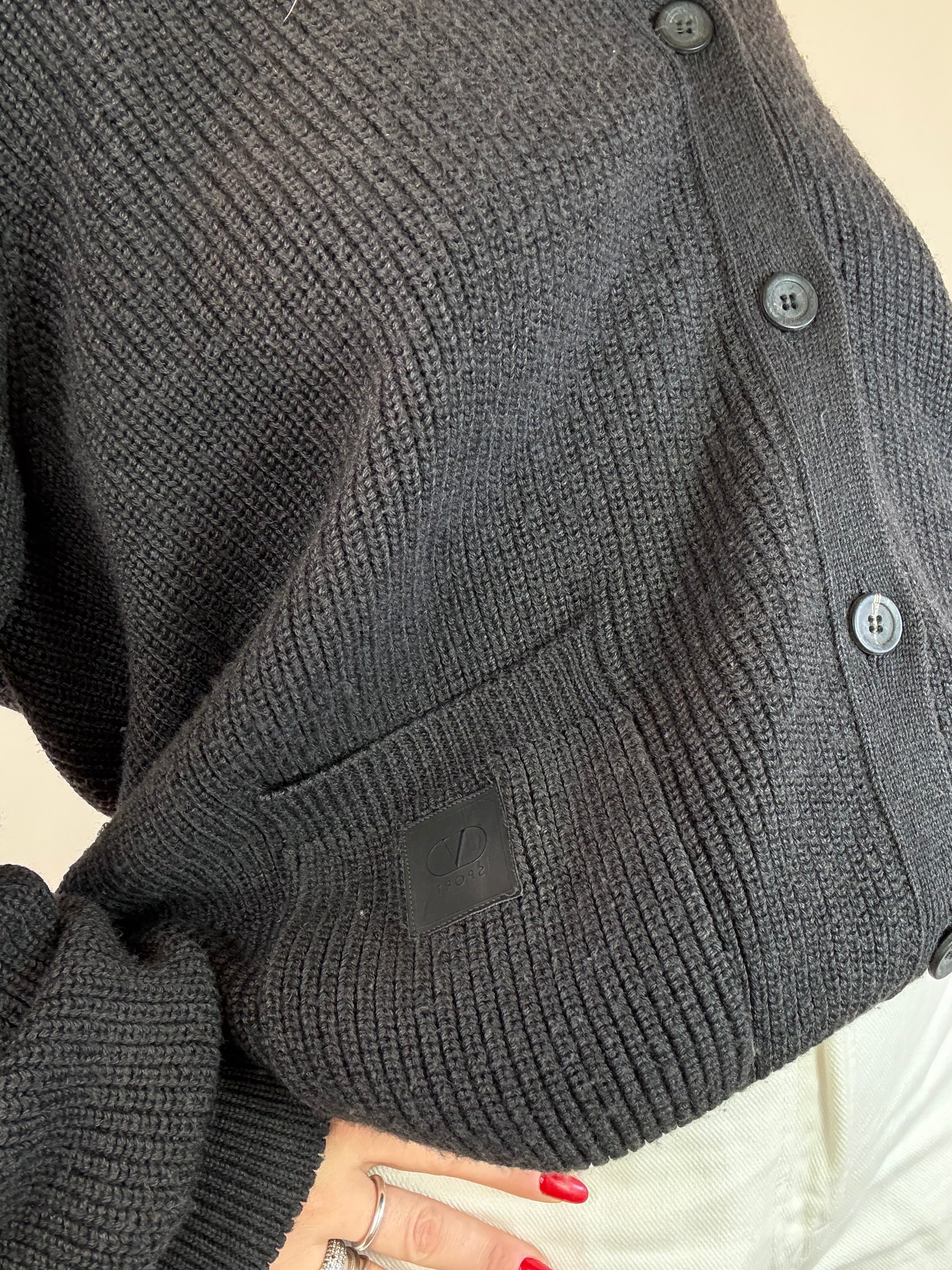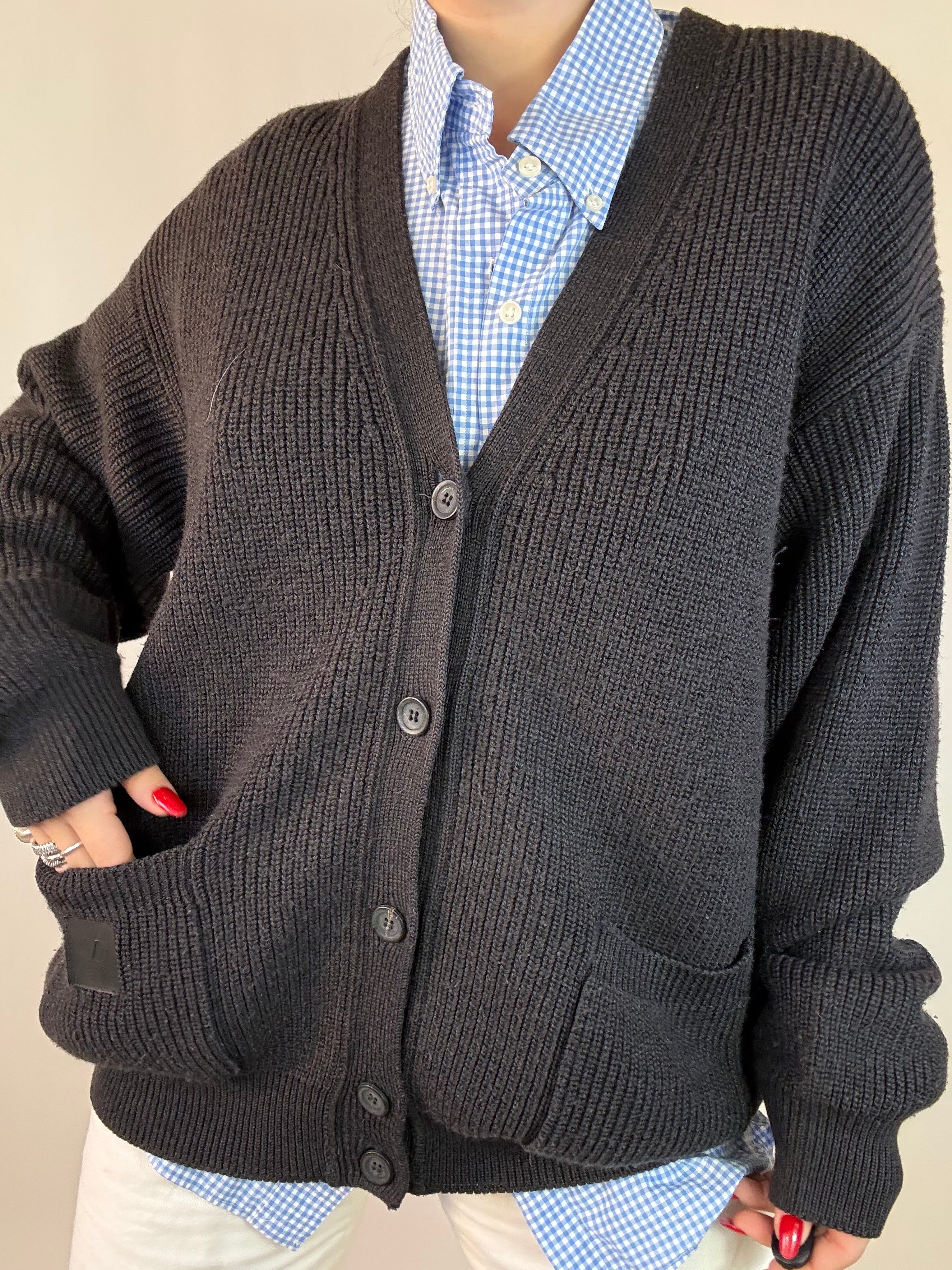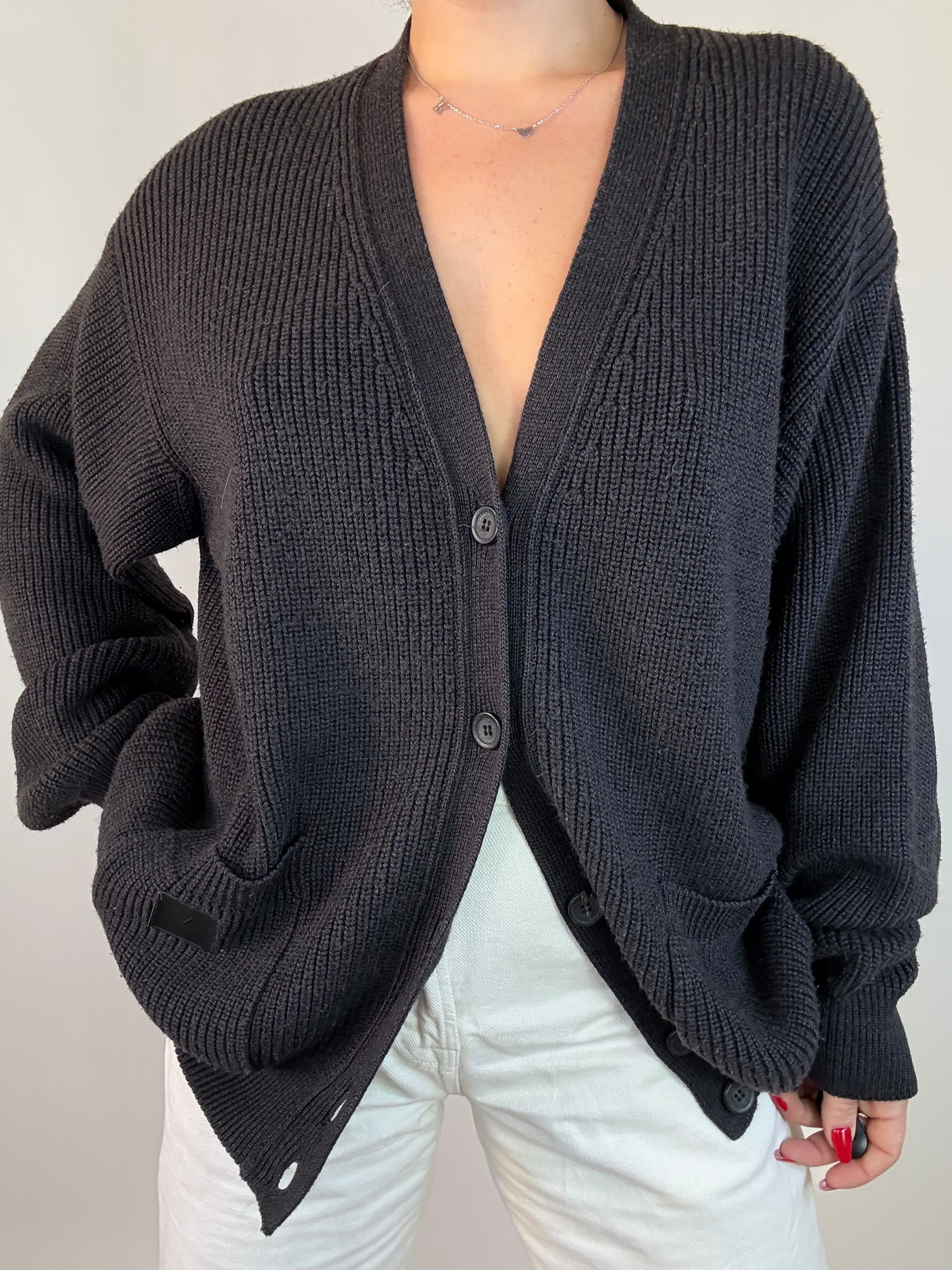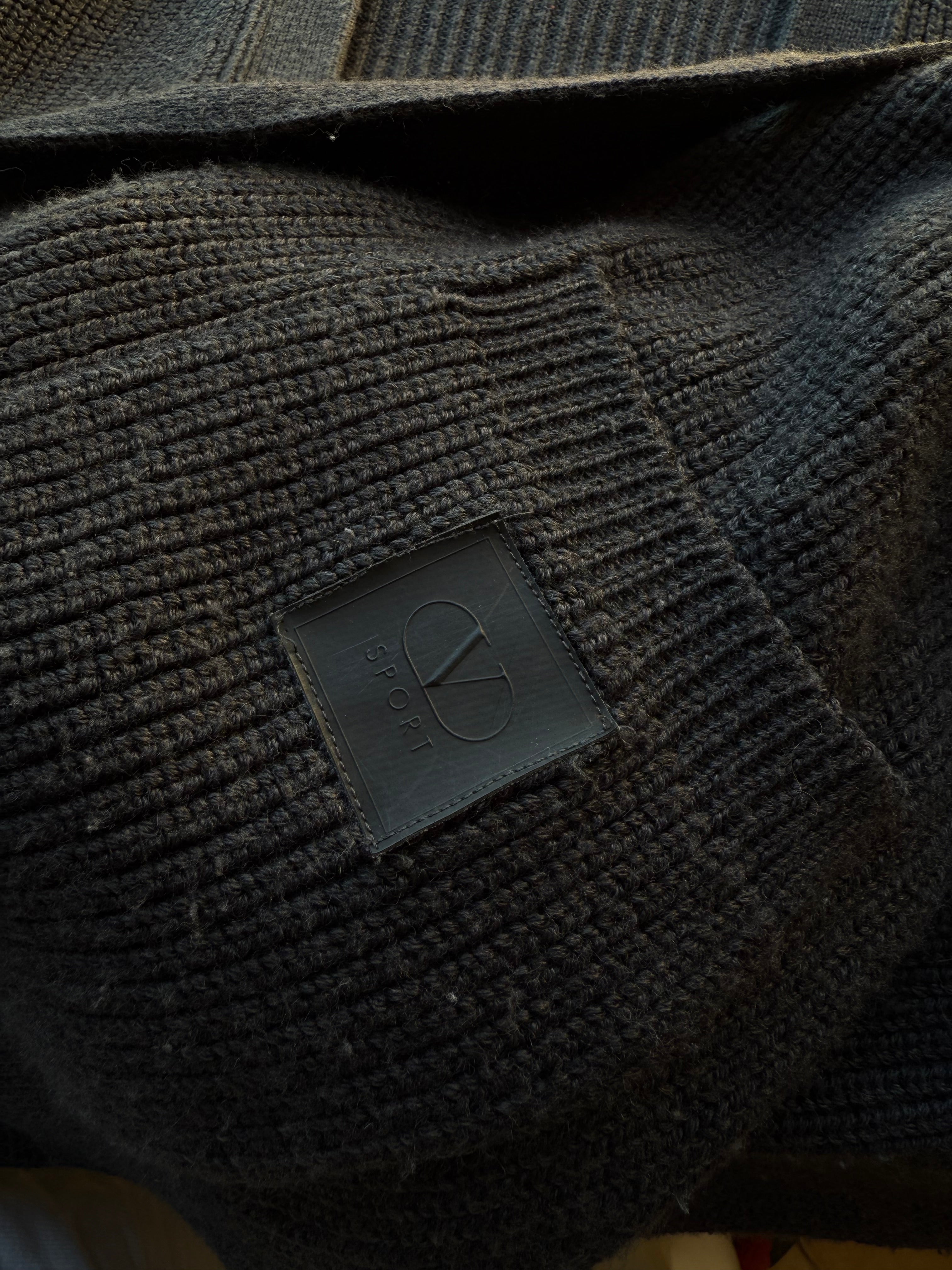 Cardigan Valentino Grigio Topo locato taglia 5 in pura lana vergine Misure capo: Spalla a spalla 52cm, Lunghezza 70cm Altezza modella: 1.65, taglia 42