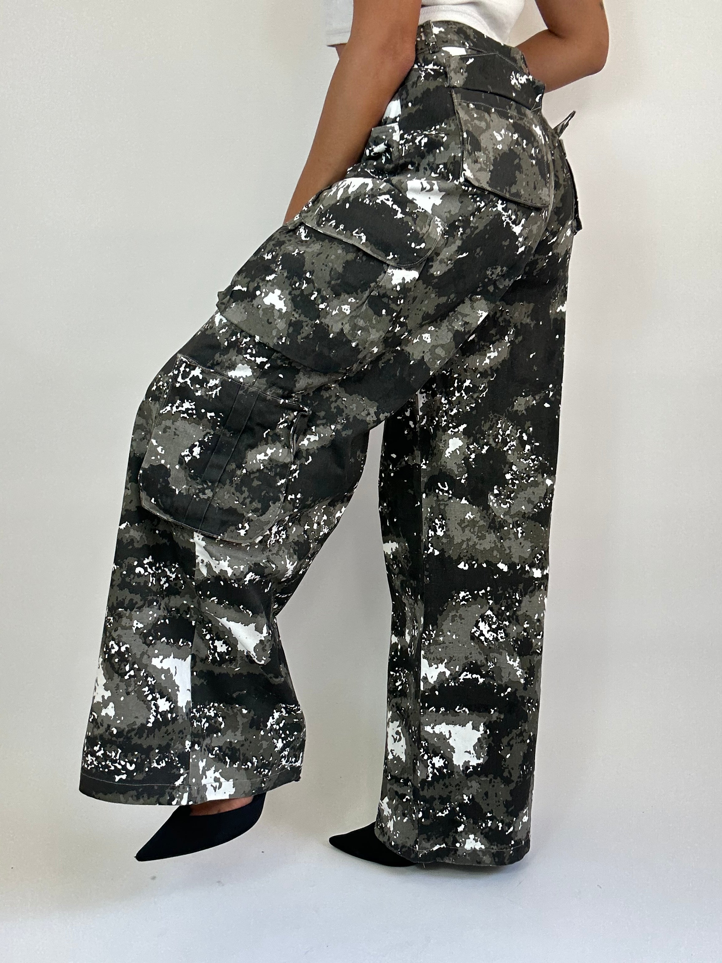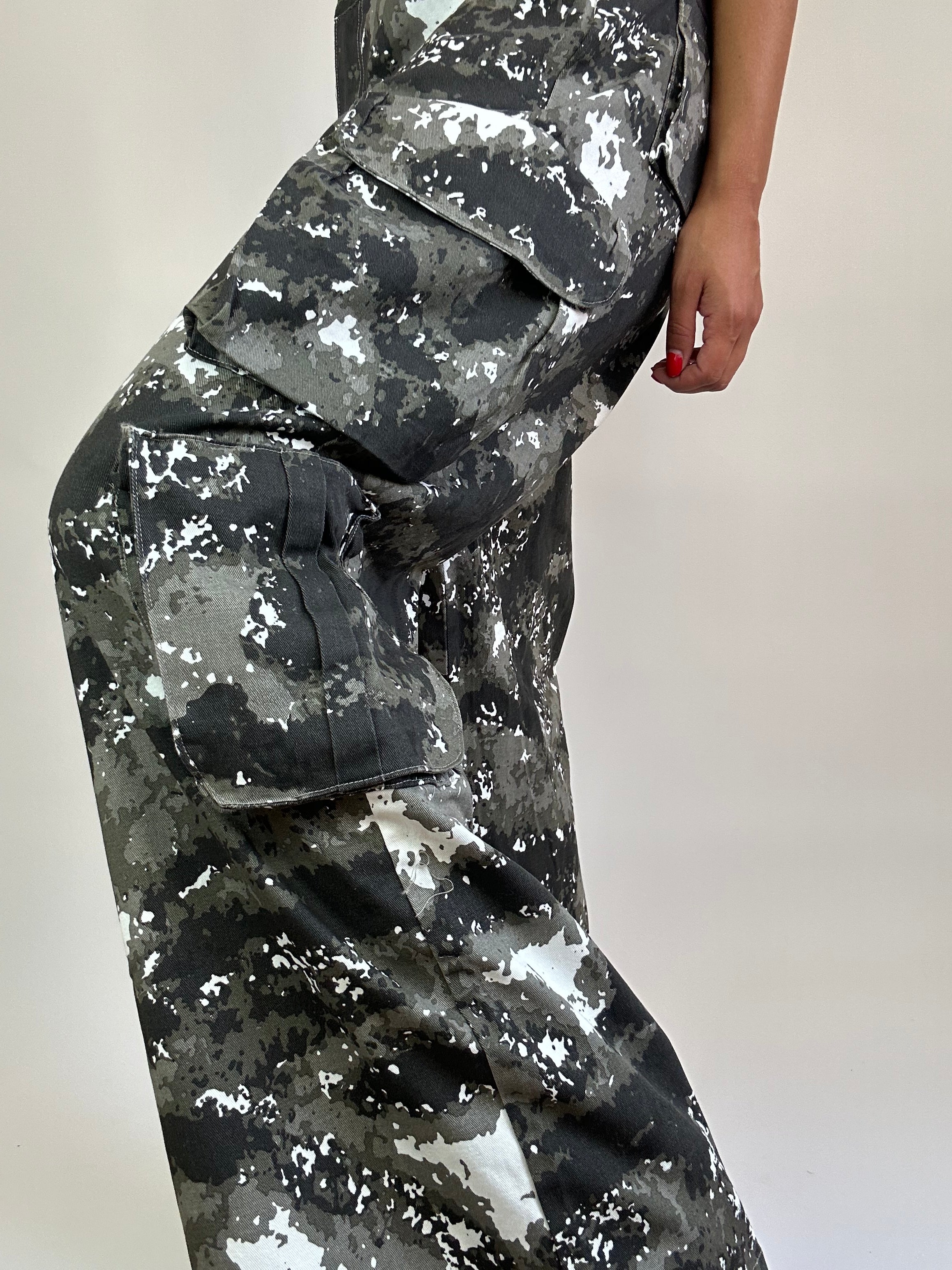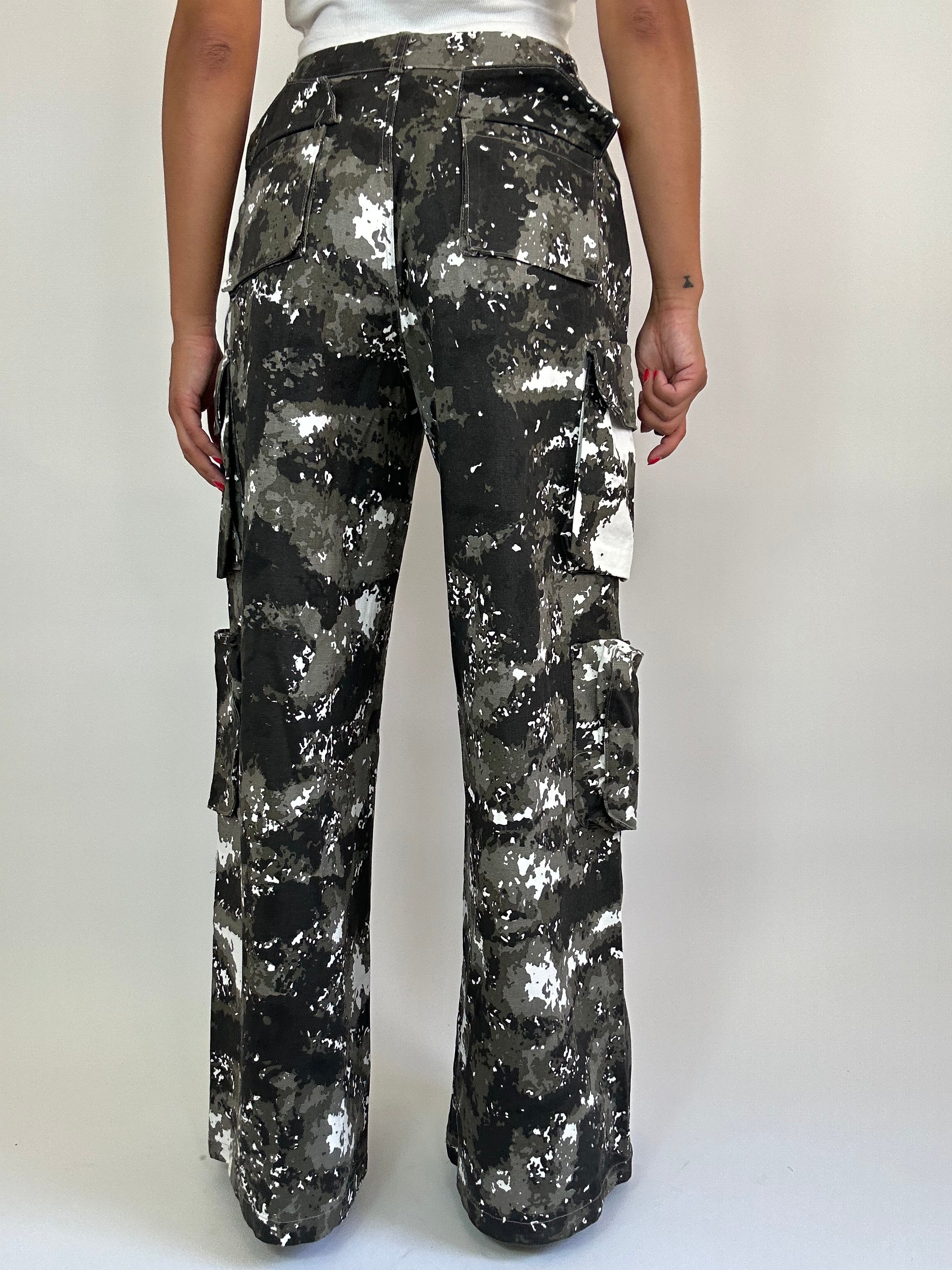 Cargo mimetico grigio taglia M vita piatta: 40cm Lunghezza totale: 105cm Taglia Modello\a:  42IT x 1,70
