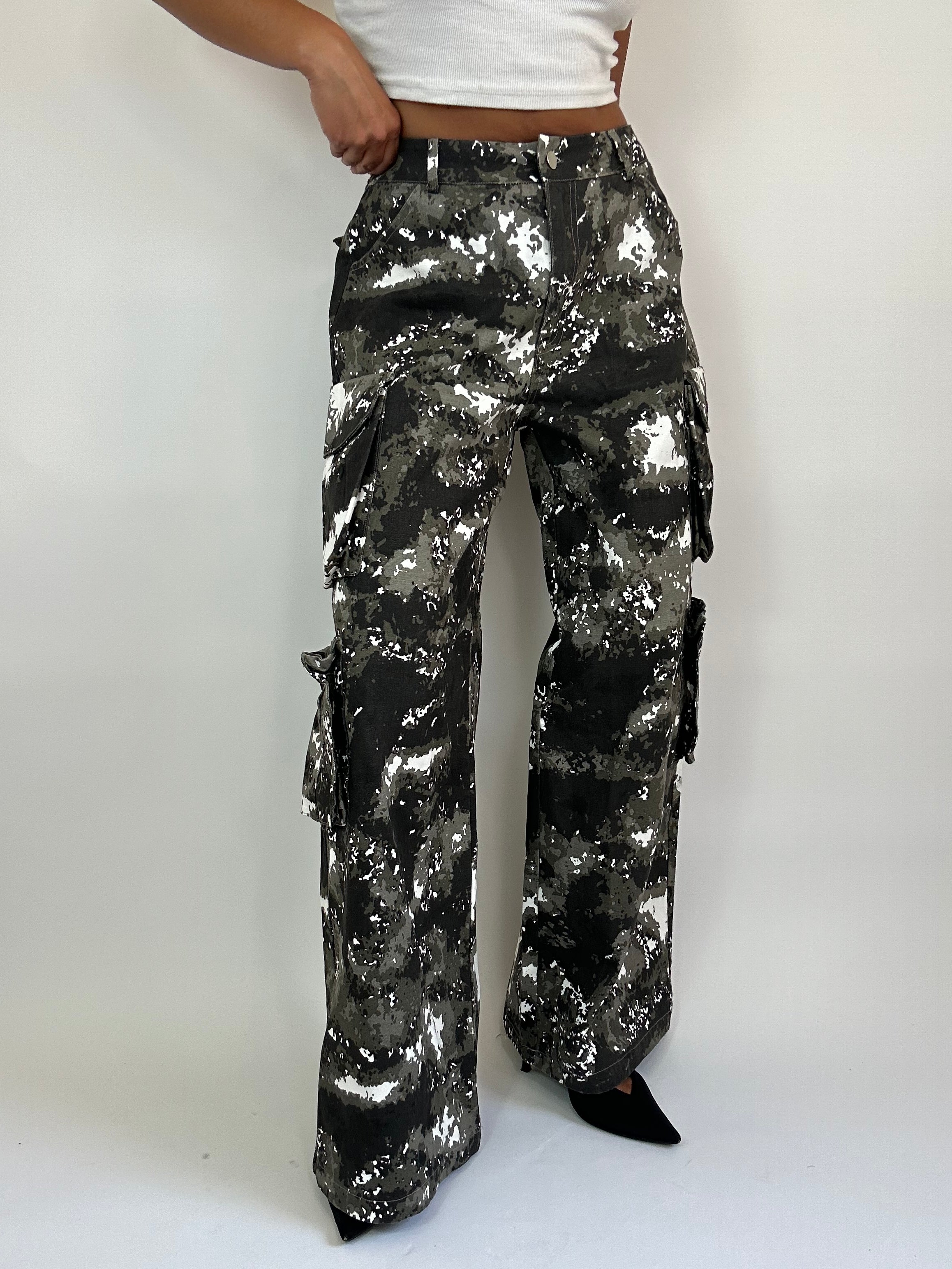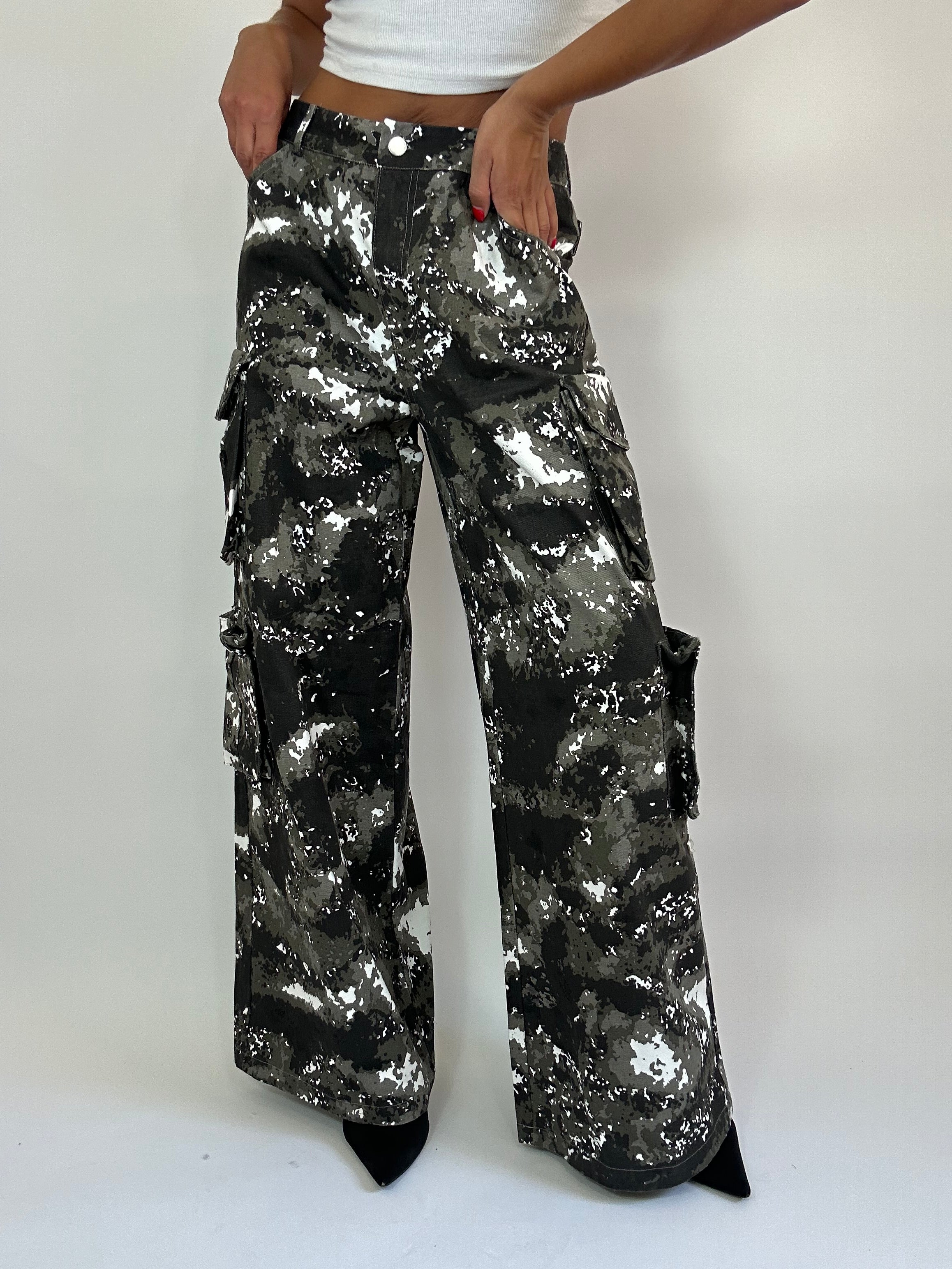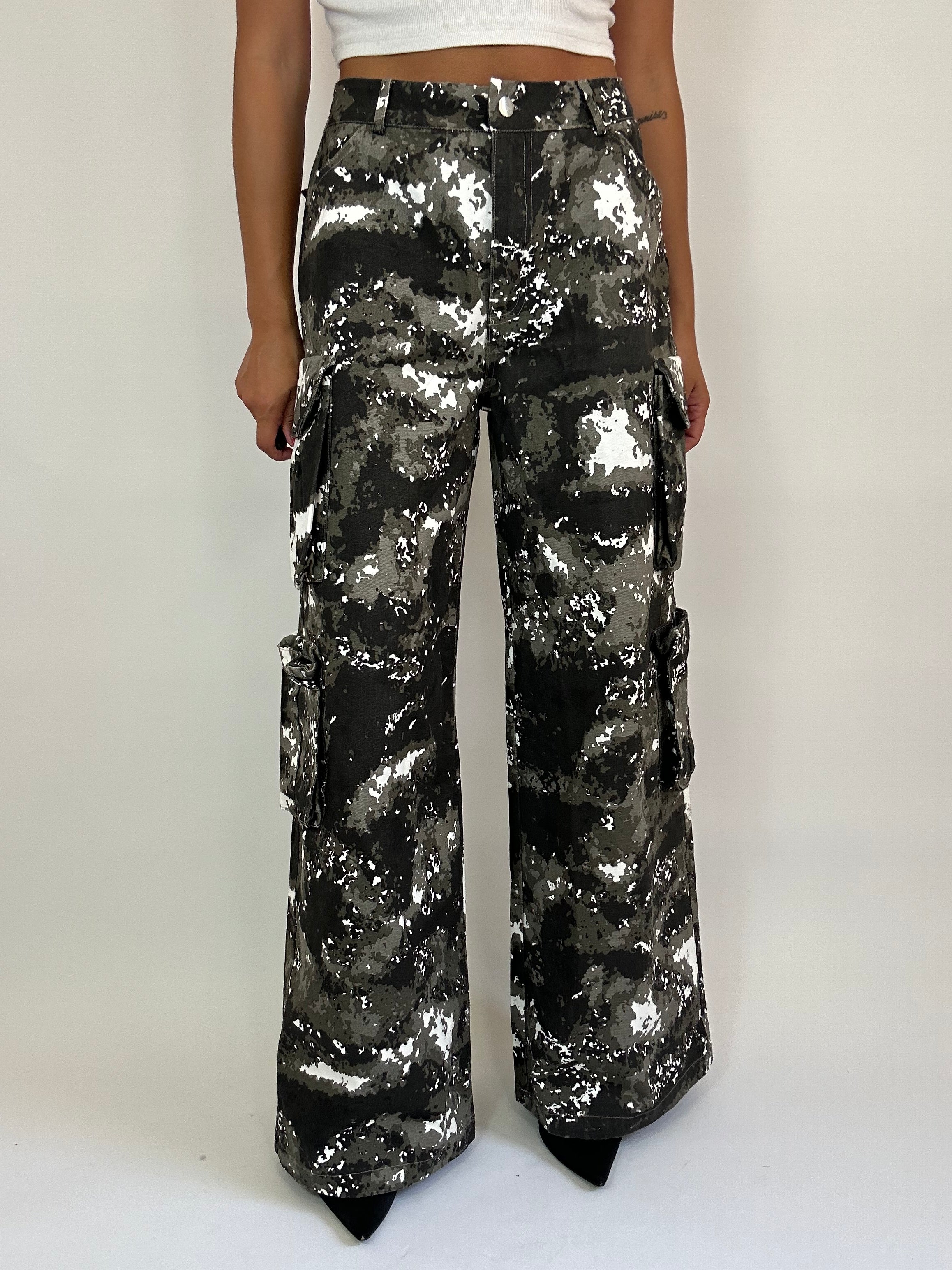 Cargo mimetico grigio taglia M vita piatta: 40cm Lunghezza totale: 105cm Taglia Modello\a:  42IT x 1,70
