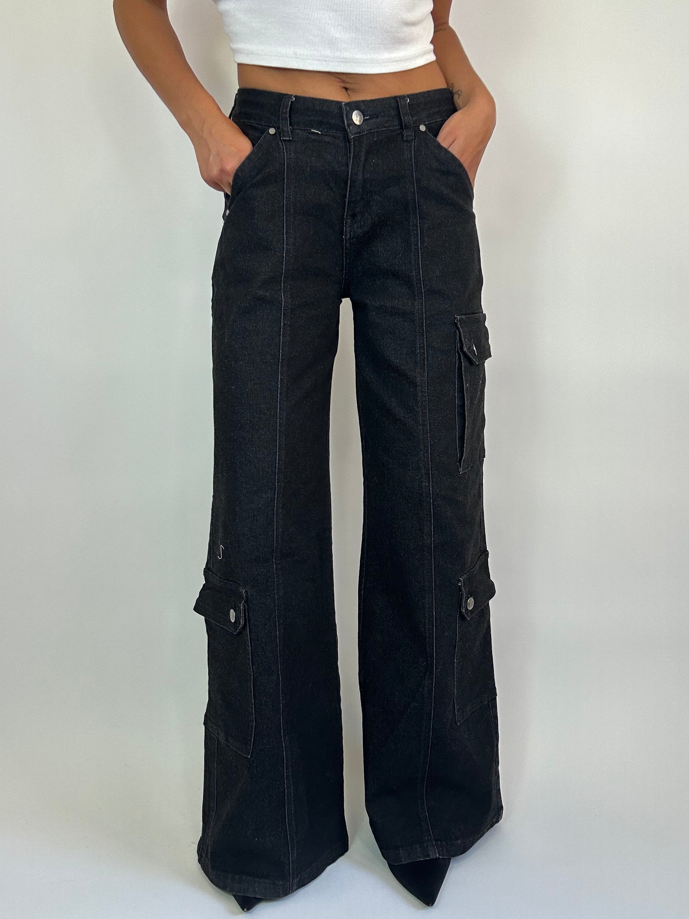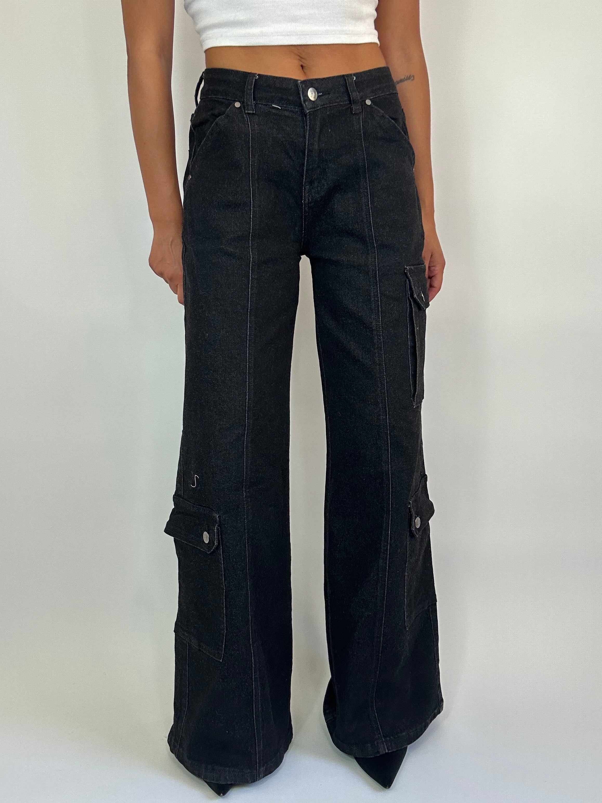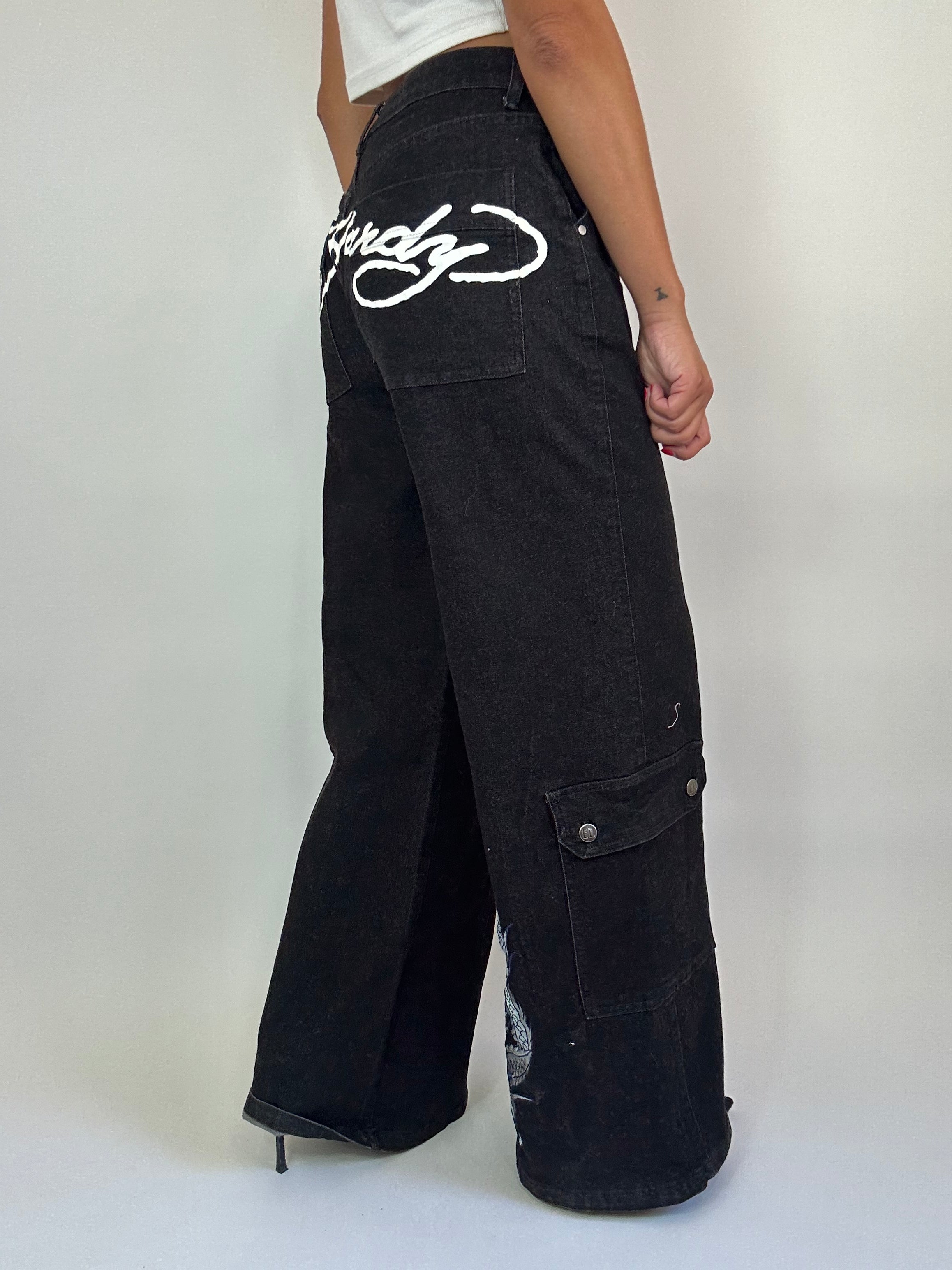 Cargo nero con stampa dragone taglia S  vita piatta: 38cm Lunghezza totale: 104cm Taglia Modello\a:  42IT x 1,70