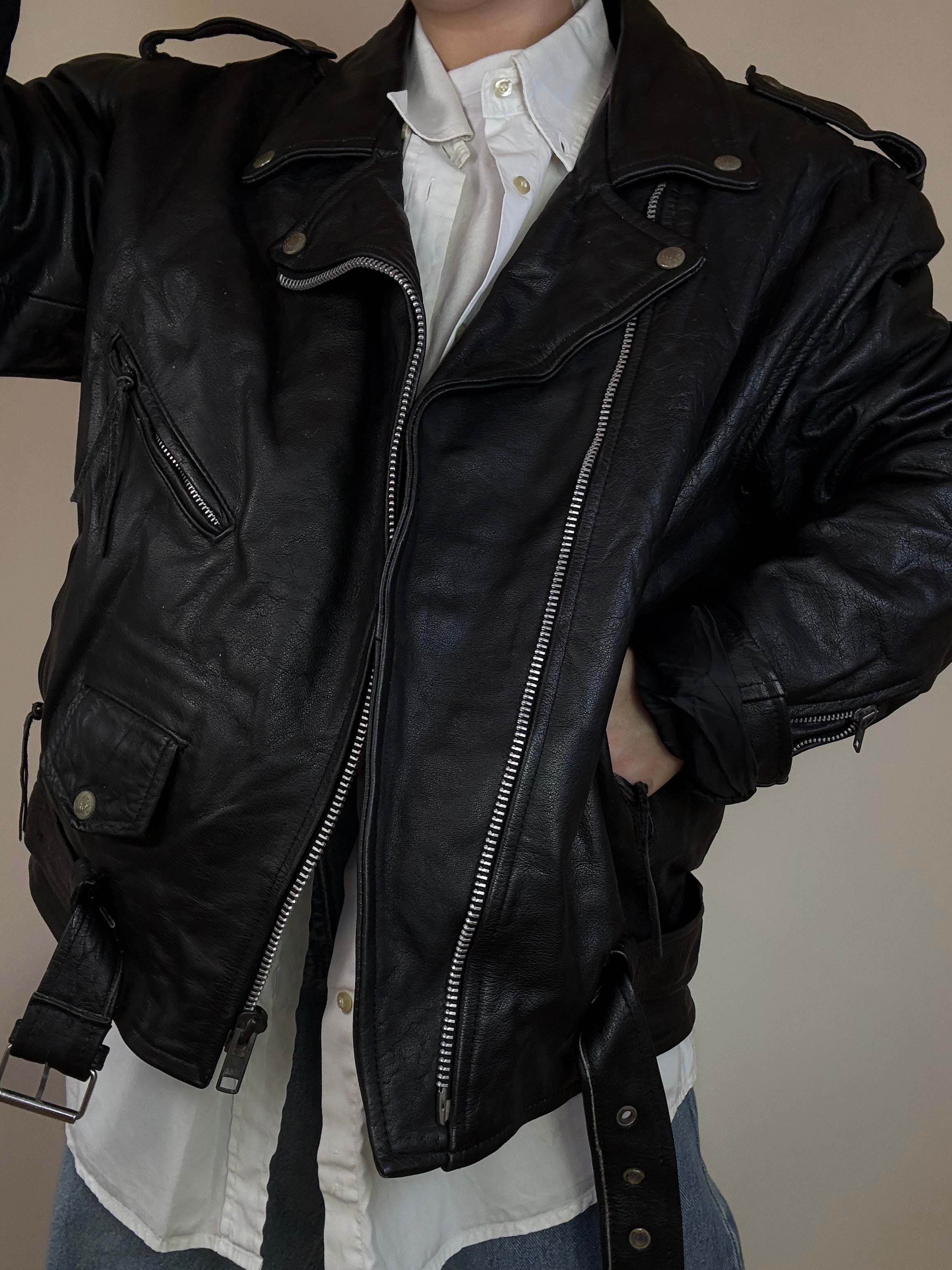 Chiodo in Vera Pelle Unisex Taglia 50 Imbottito