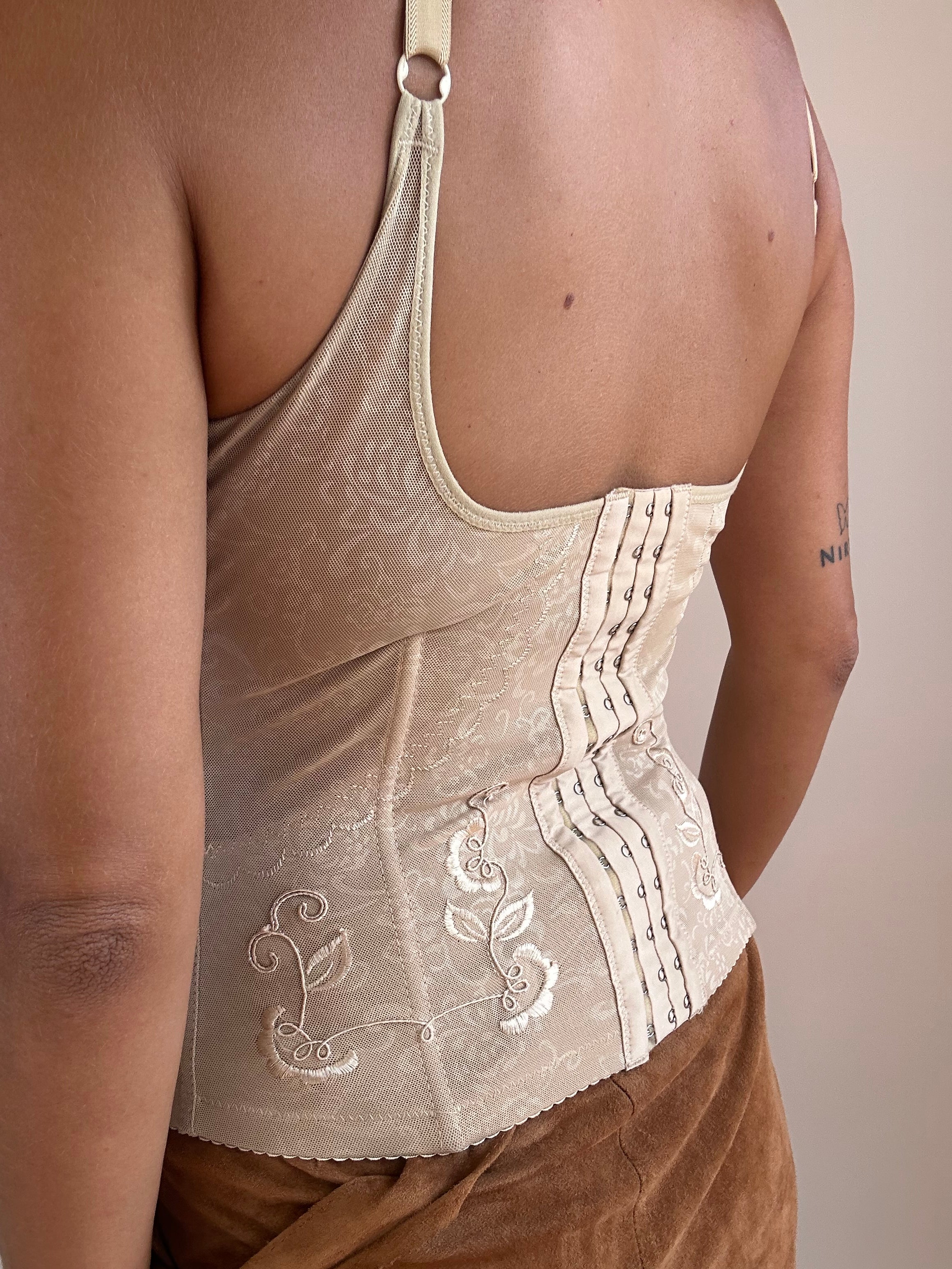 Corsetto beige taglia 44 regolabile  Ascella ad ascella: 38cm Lunghezza totale: 33cm Taglia Modello\a:  42IT x 1,70