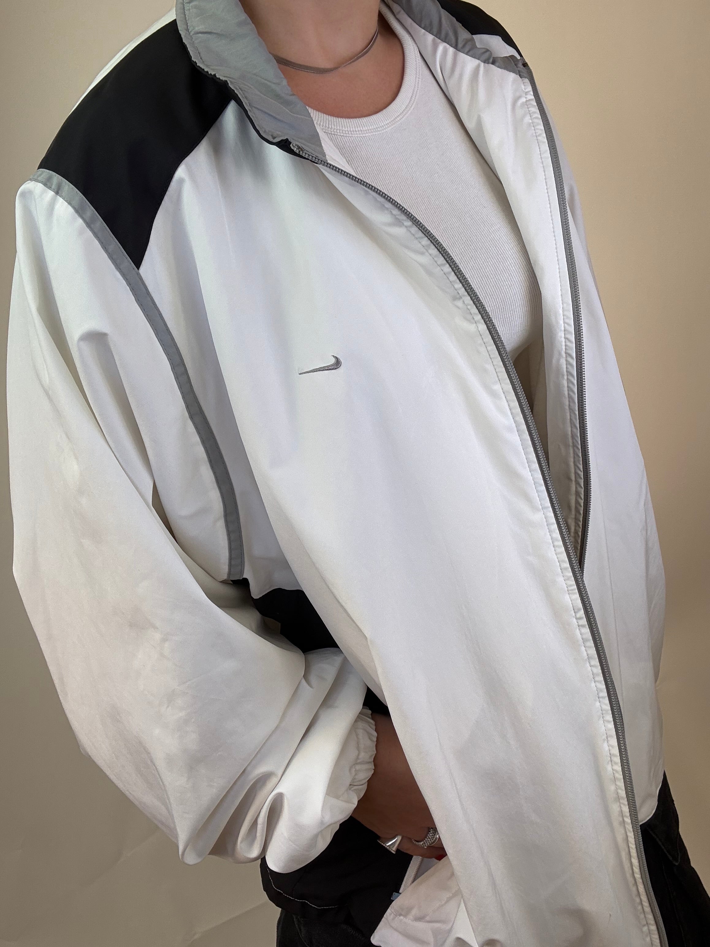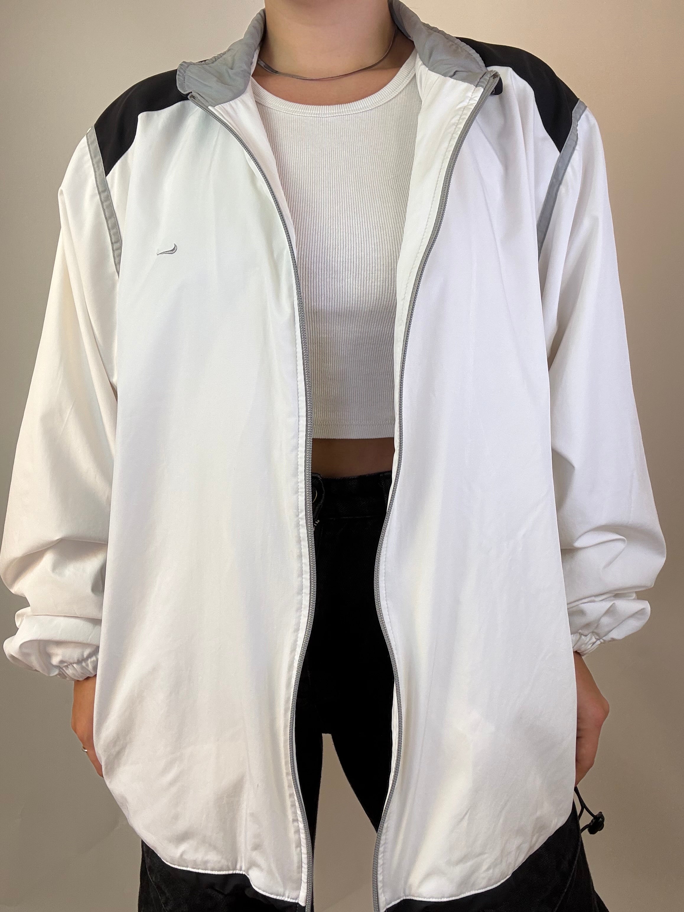 Felpa Nike con Zip bianca taglia XL Spalla a Spalla: 49cm Lunghezza totale: 73cm Taglia Modello\o:  42IT x 1,65cm
