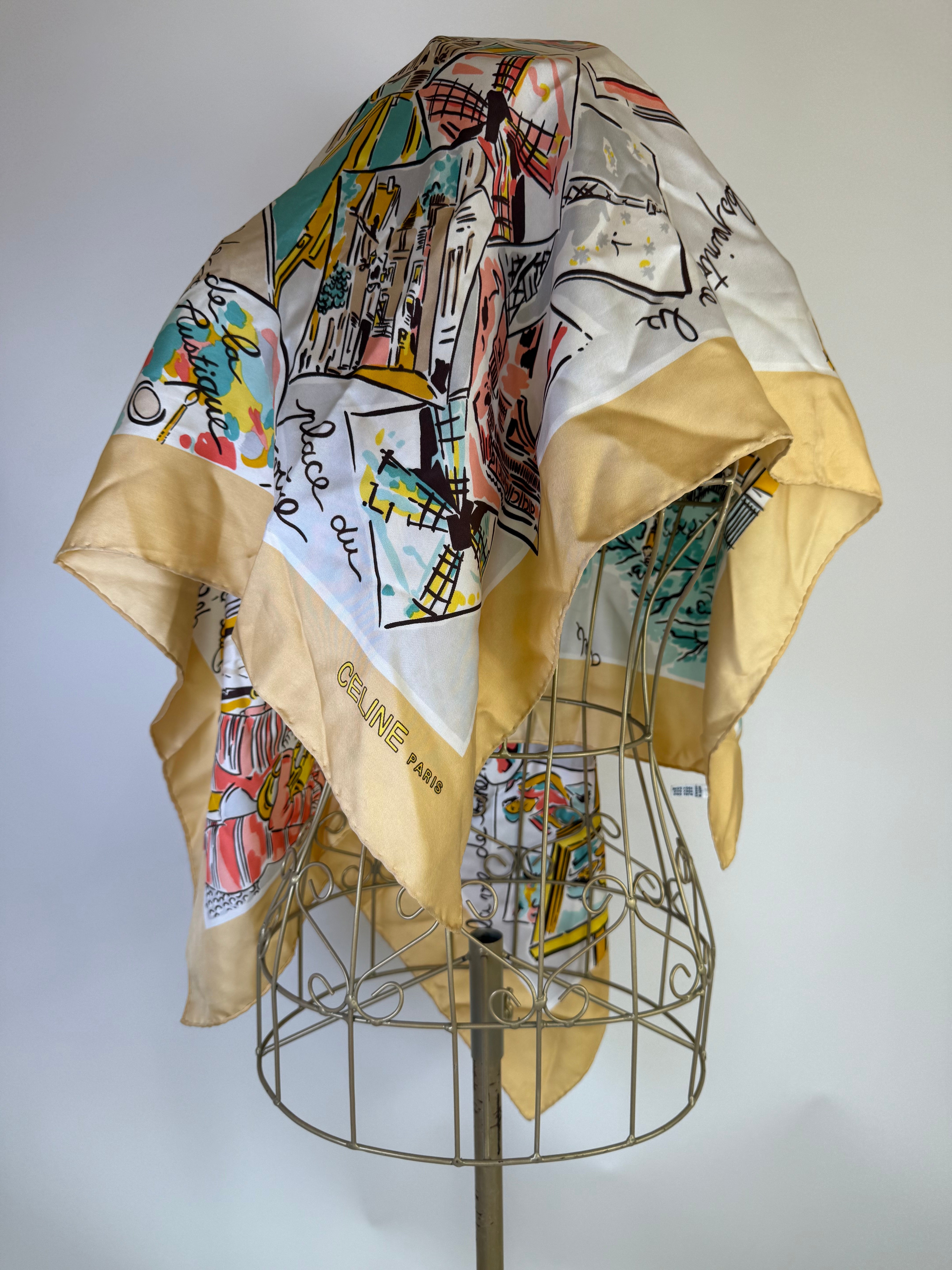Foulard Celine 100% seta Raffigura Paris Montmatre Misure capo: 90x90cm