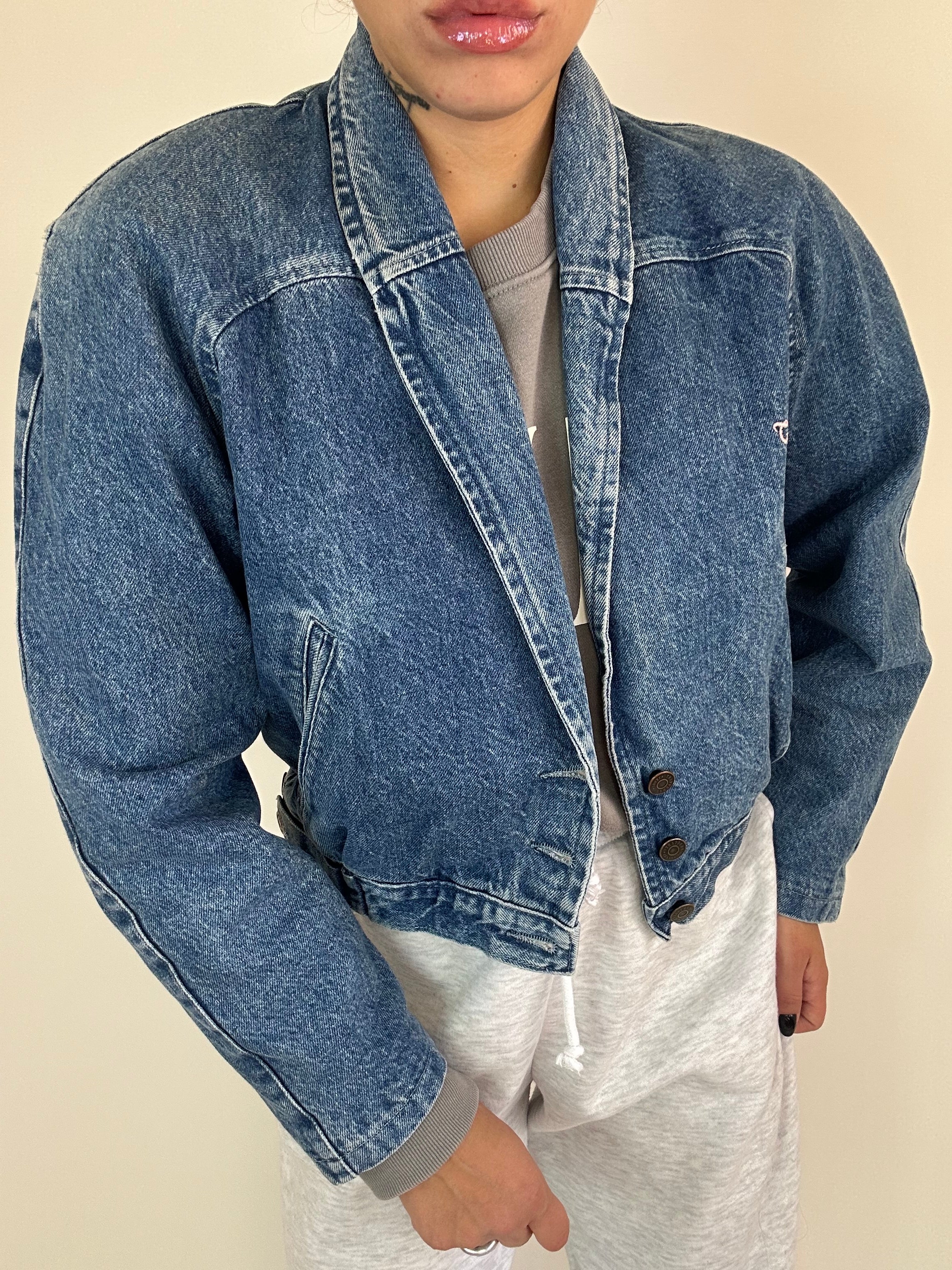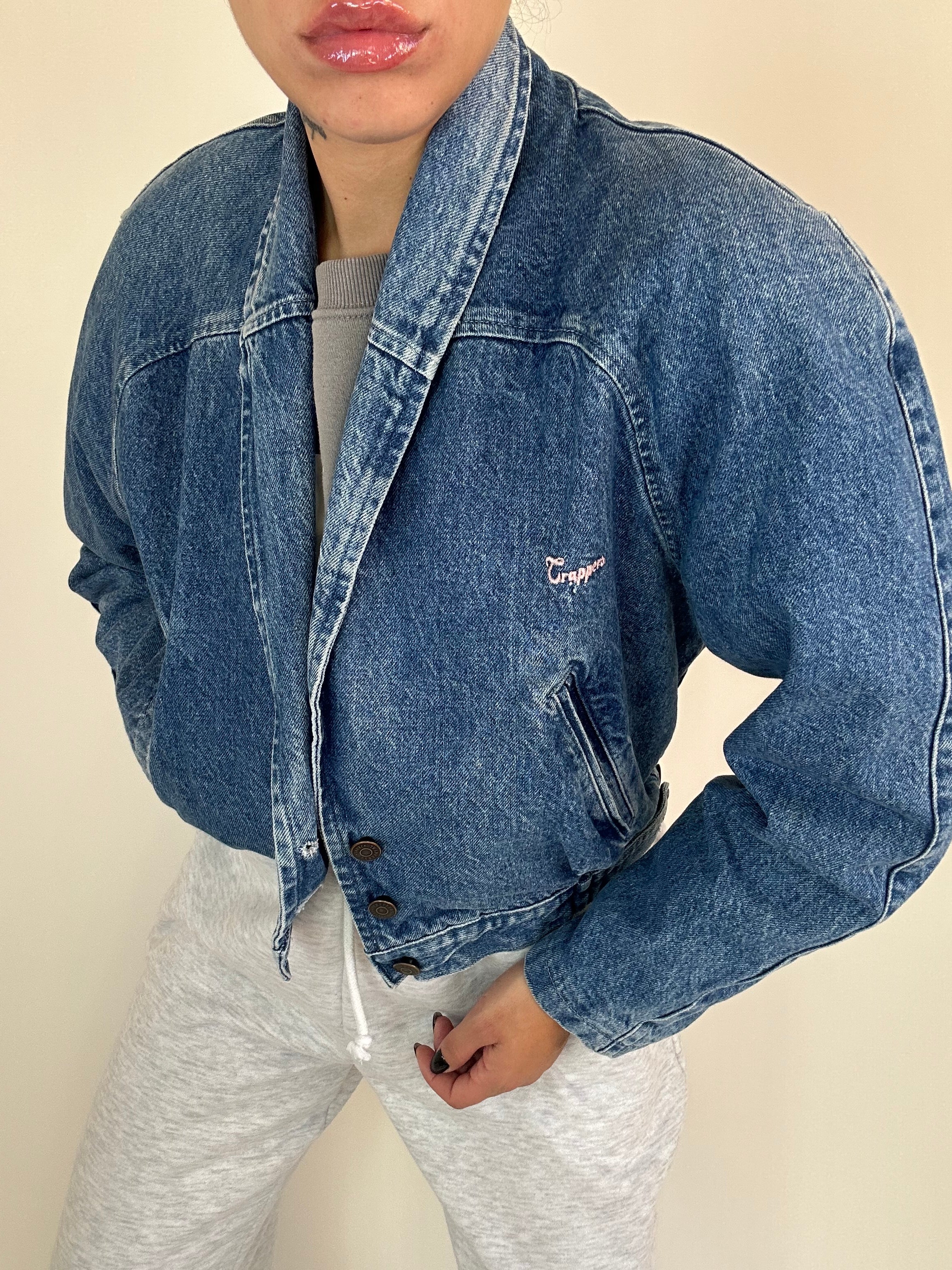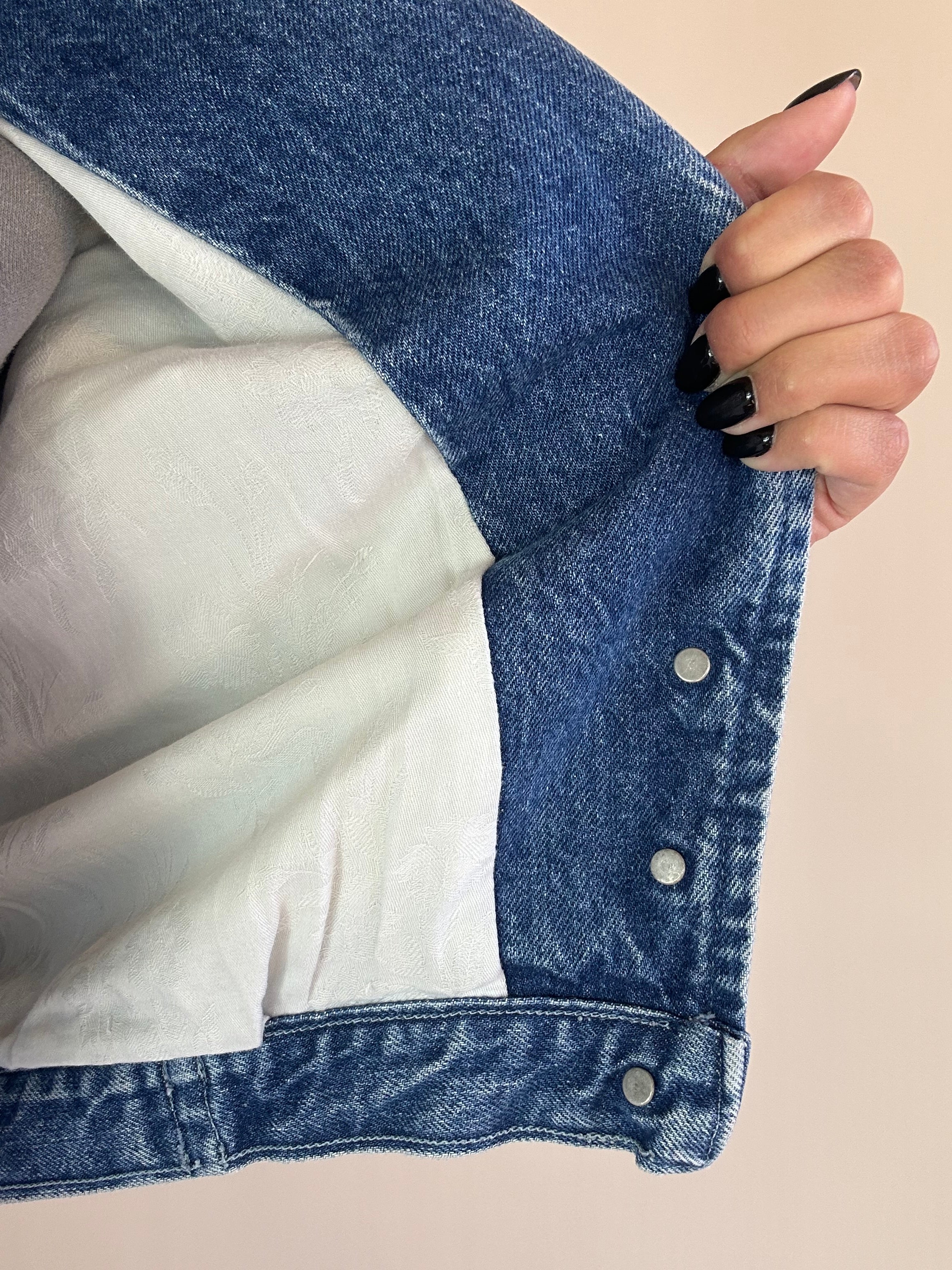 Giacca in denim con spalline taglia M  Spalla a Spalla: 47cm Lunghezza totale: 52cm  Taglia Modello\a:  42IT x 1,70