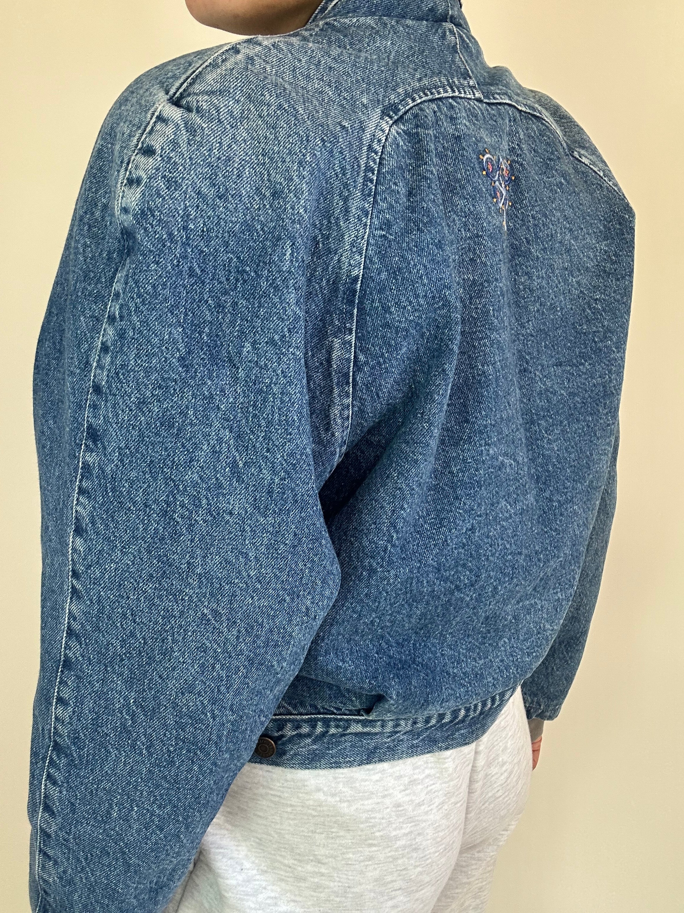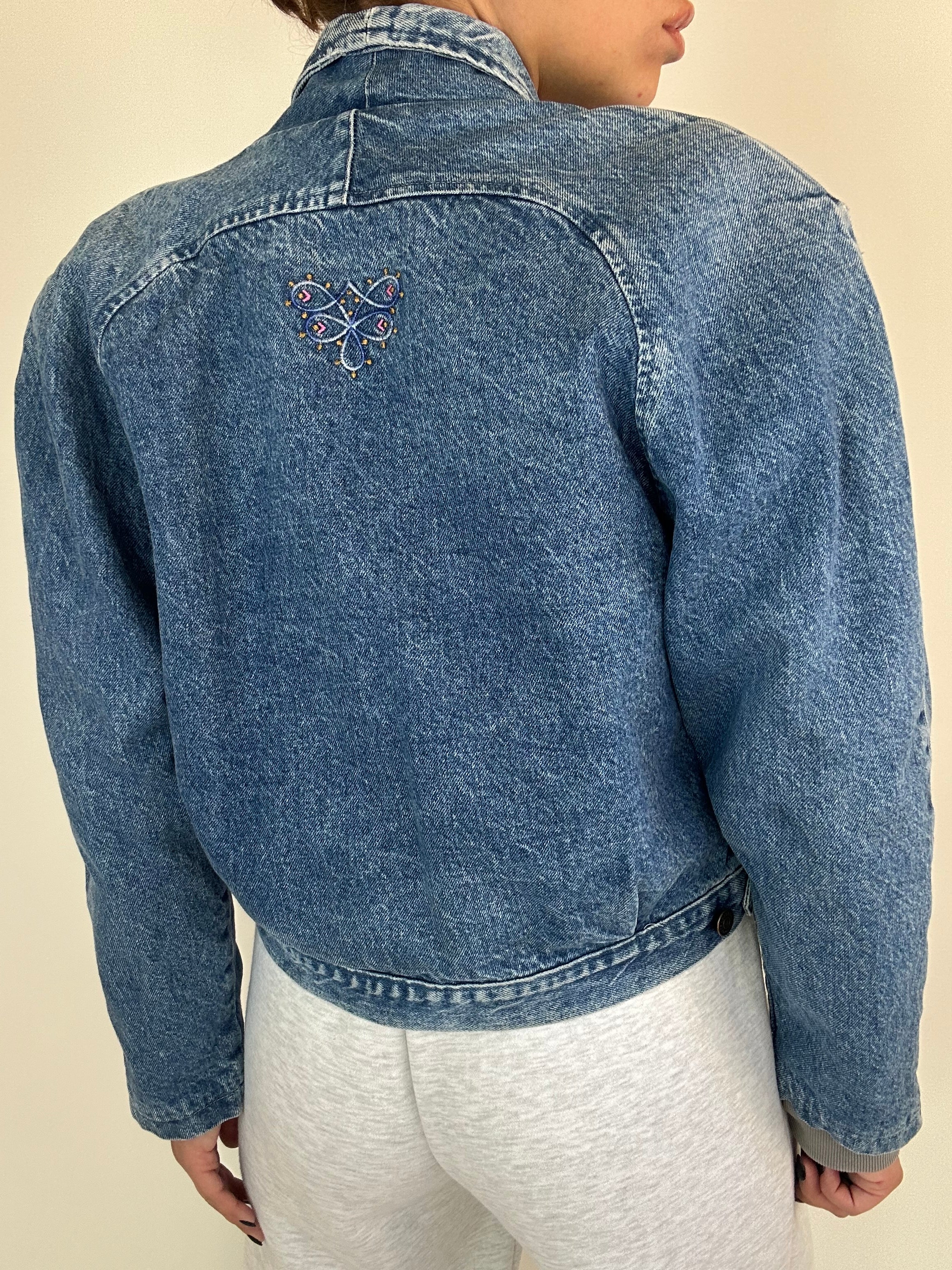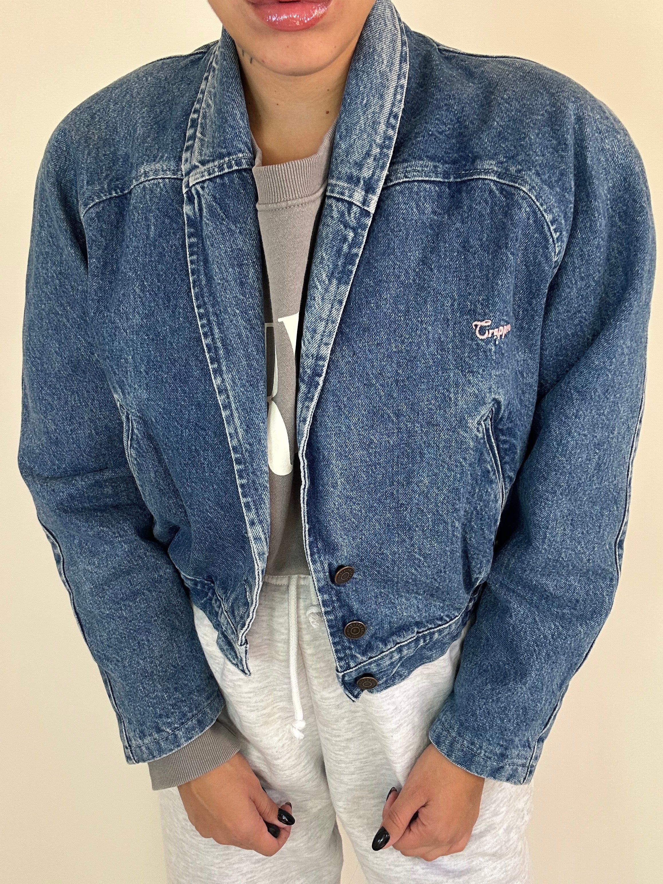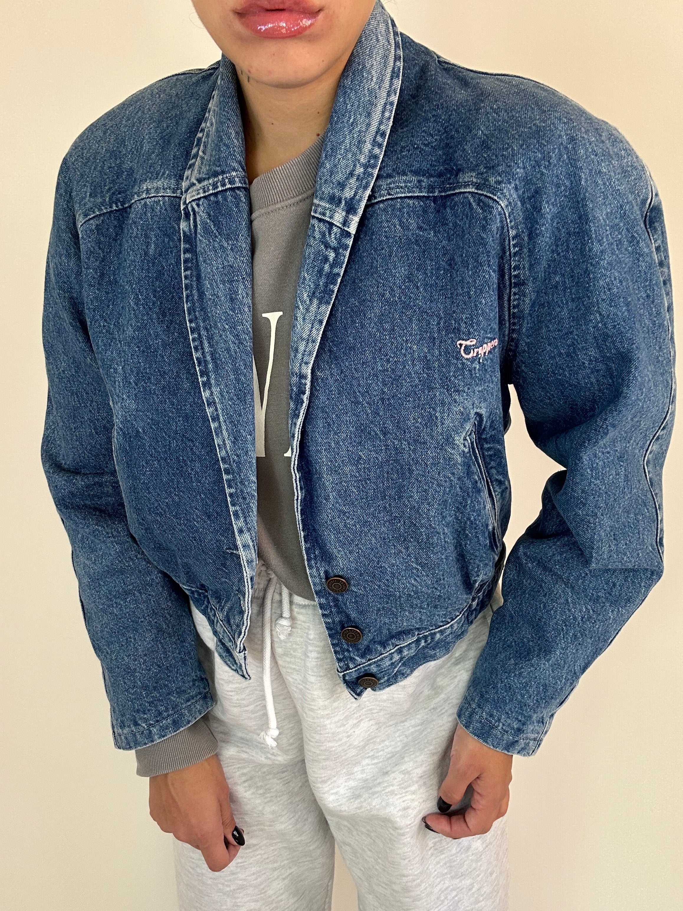 Giacca in denim con spalline taglia M  Spalla a Spalla: 47cm Lunghezza totale: 52cm  Taglia Modello\a:  42IT x 1,70