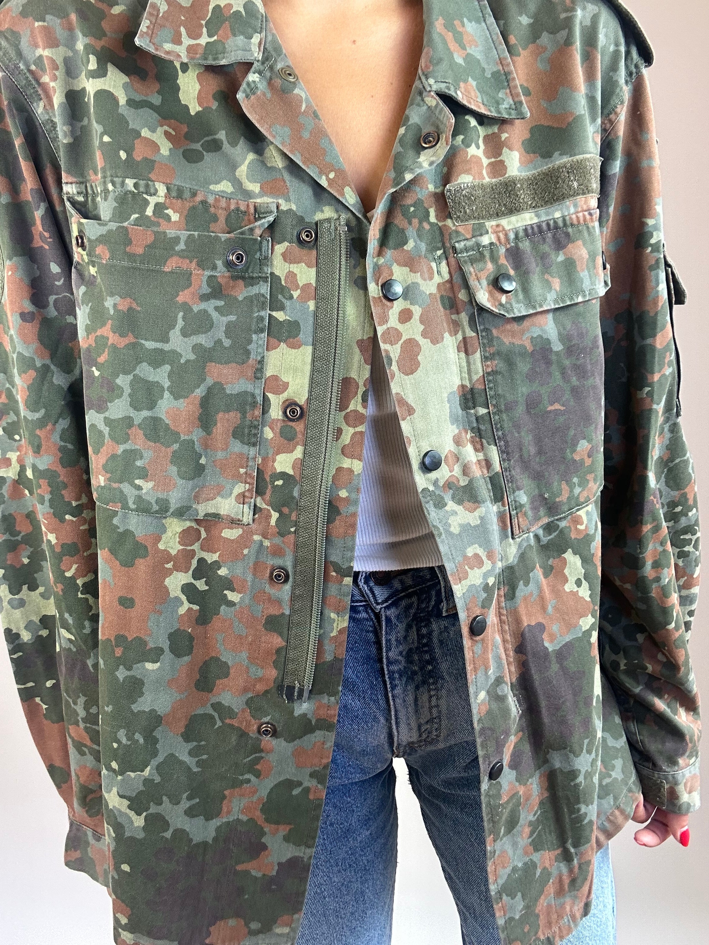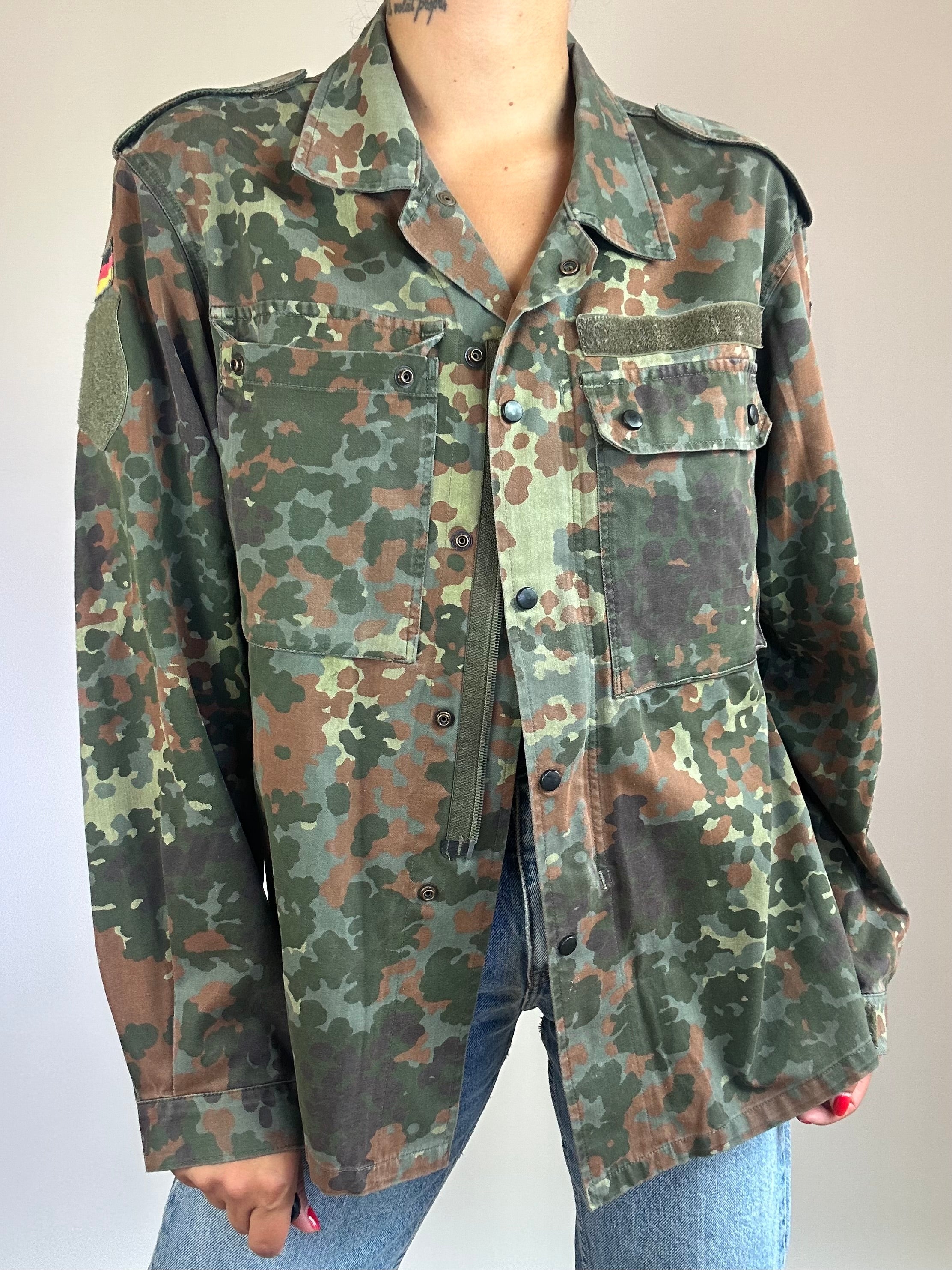 Giacca militare taglia M in 65% Cotone 35% Poliestere  Spalla a Spalla: 46cm  Lunghezza totale: 68cm Taglia Modello\a:  42IT x 1,70