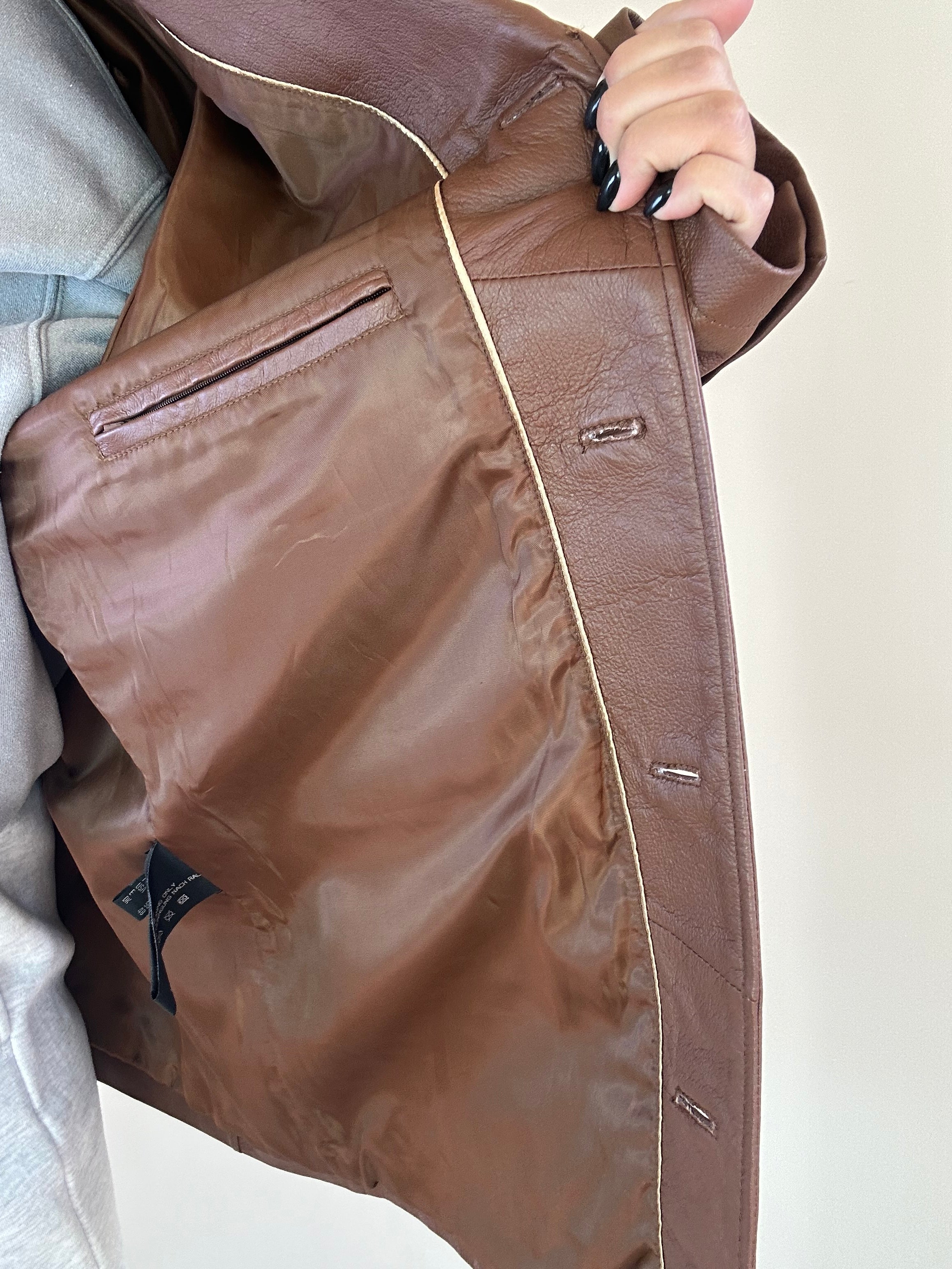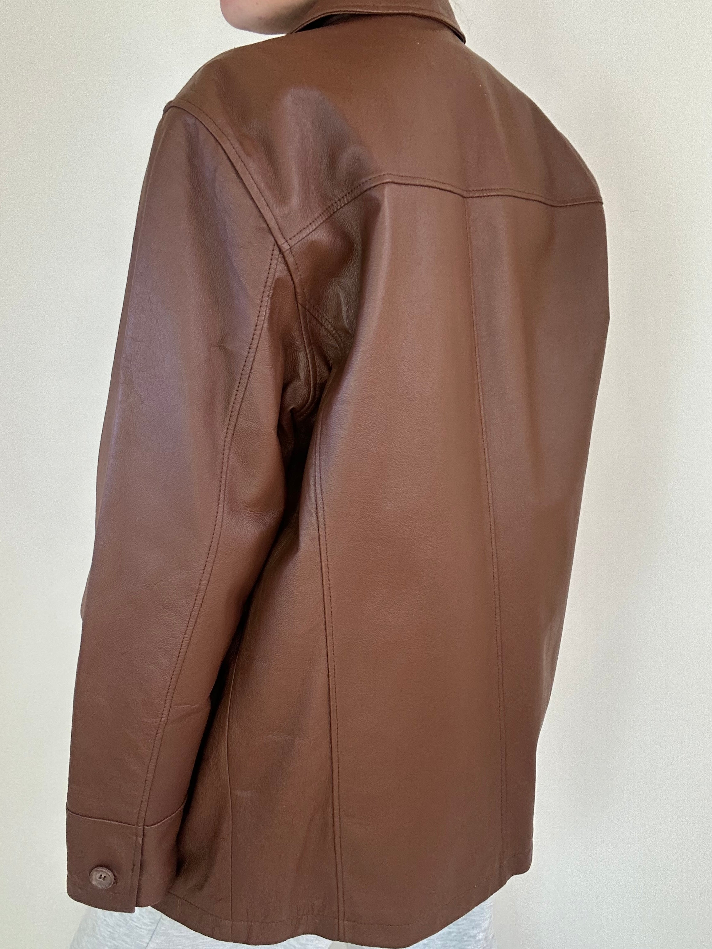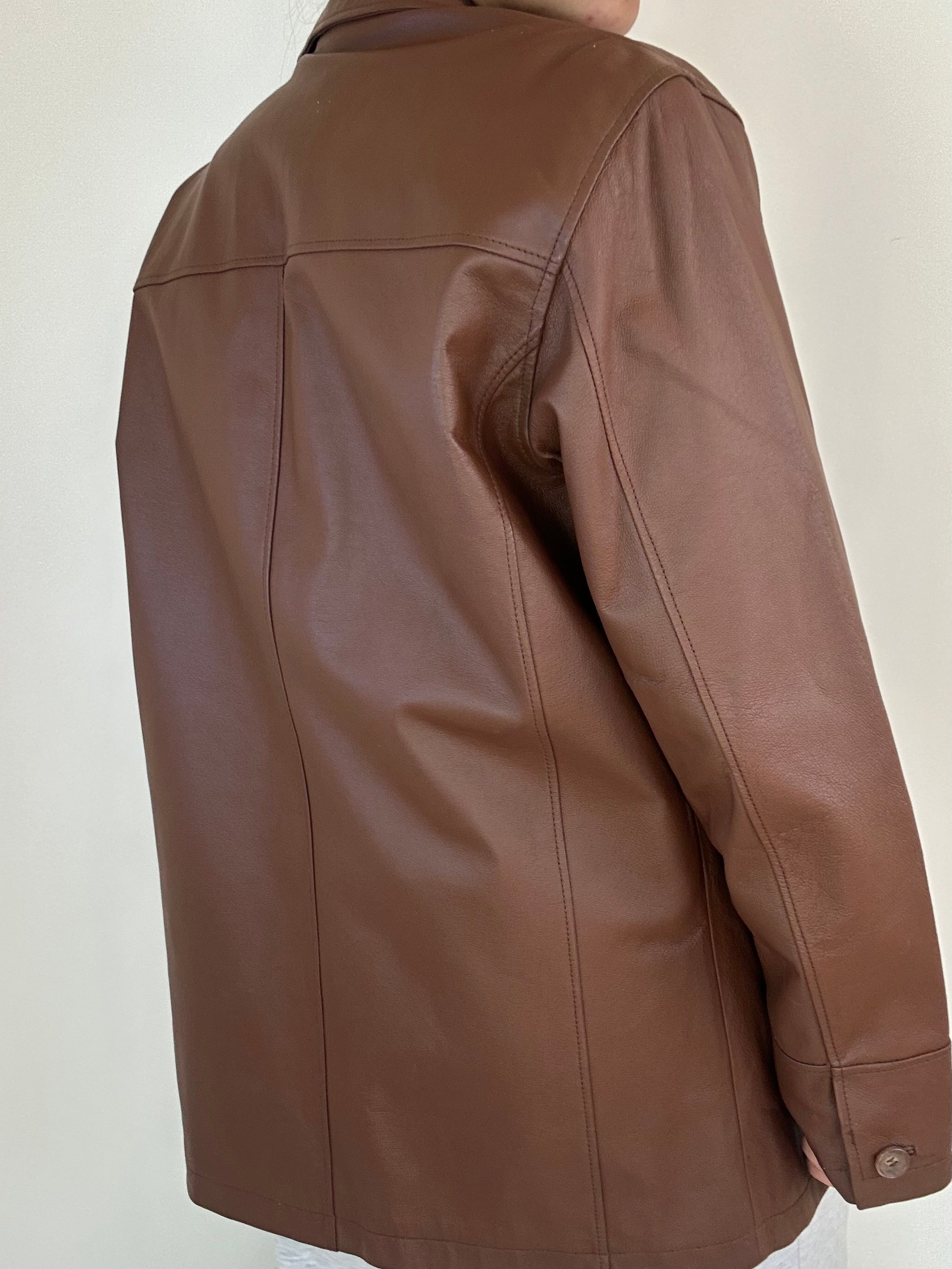 Giacca Vera Pelle marrone taglia 52 Spalla a Spalla: 49cm Lunghezza totale: 66cm  Taglia Modello\a:  42IT x 1,70