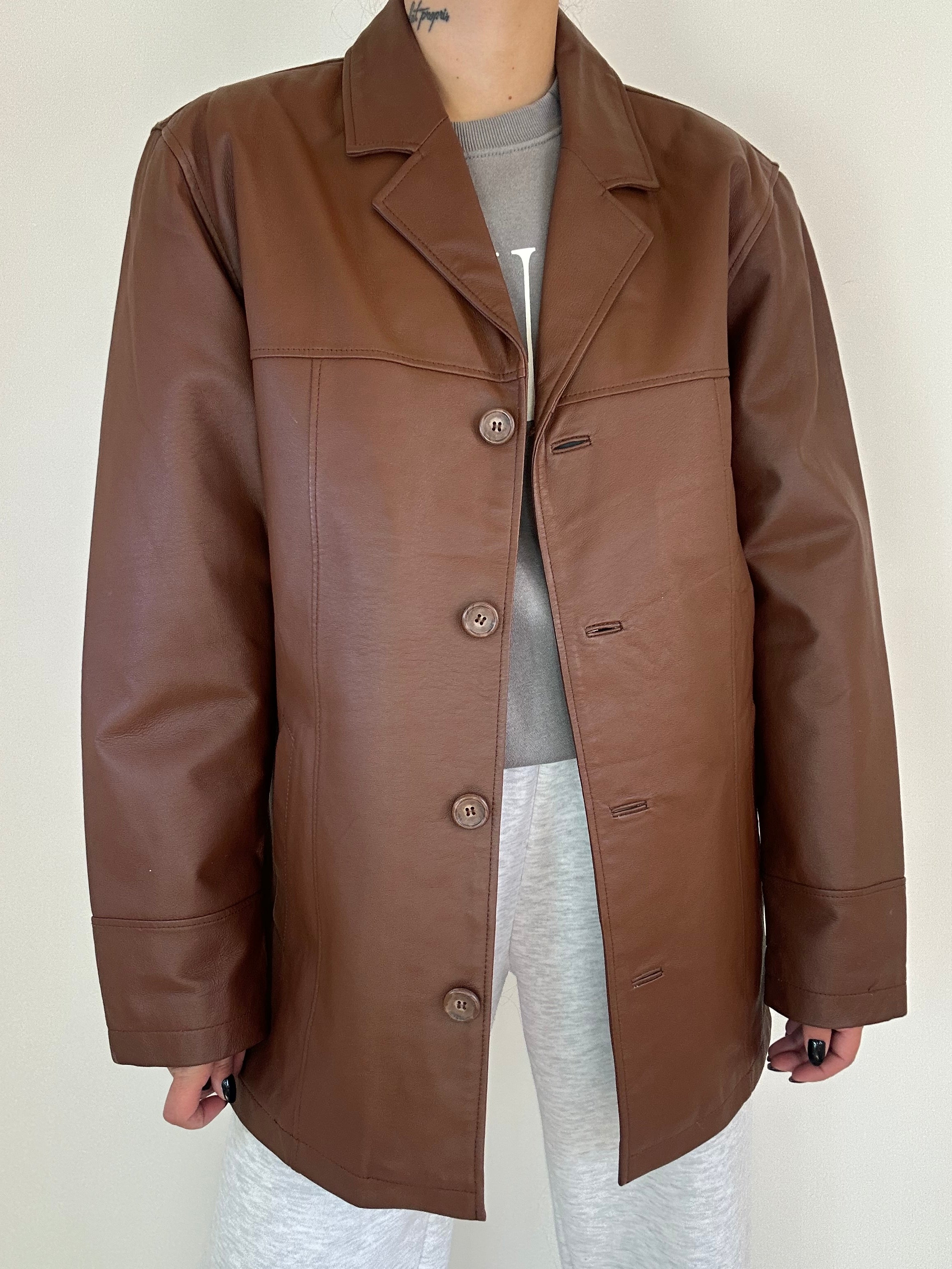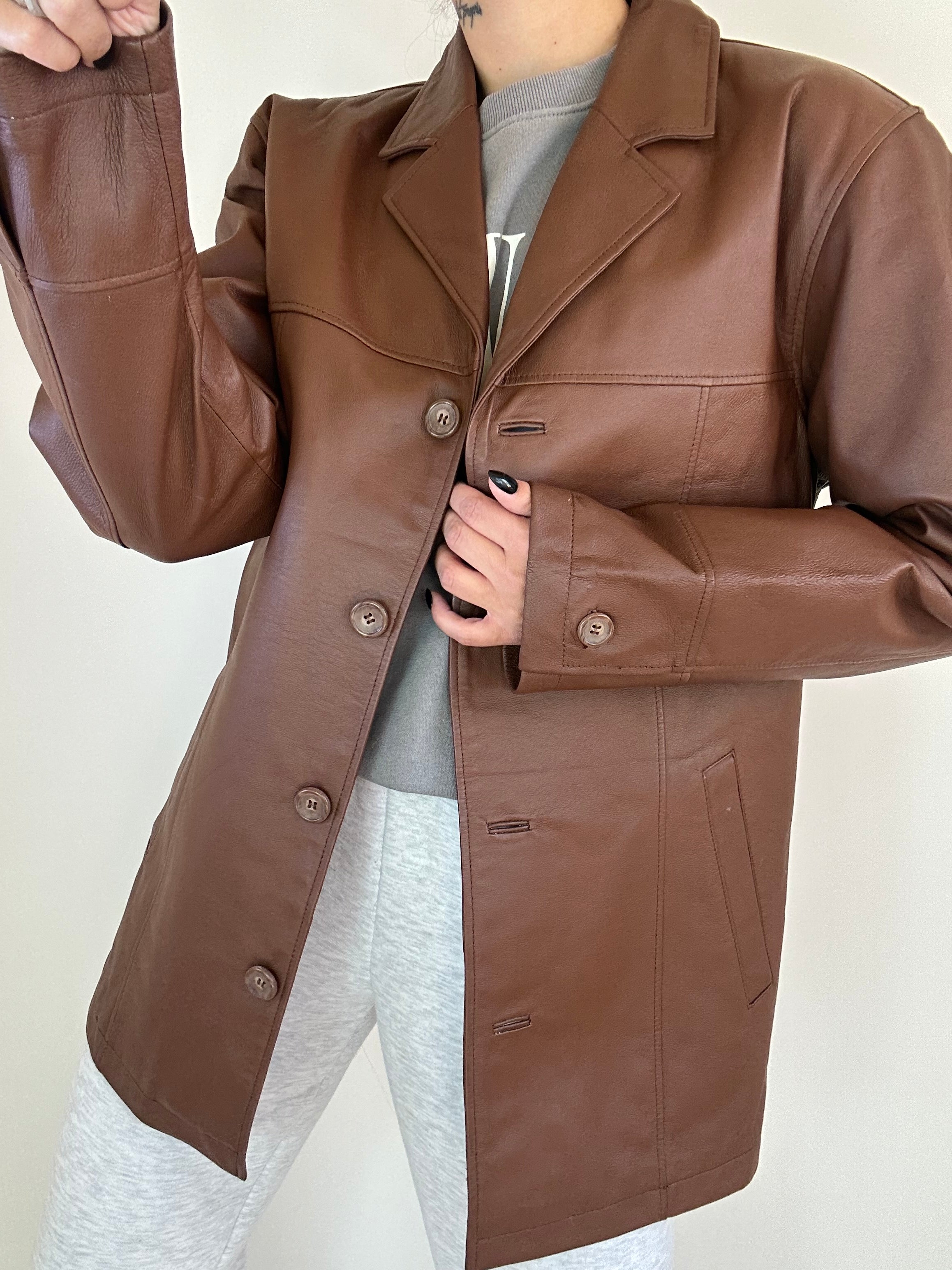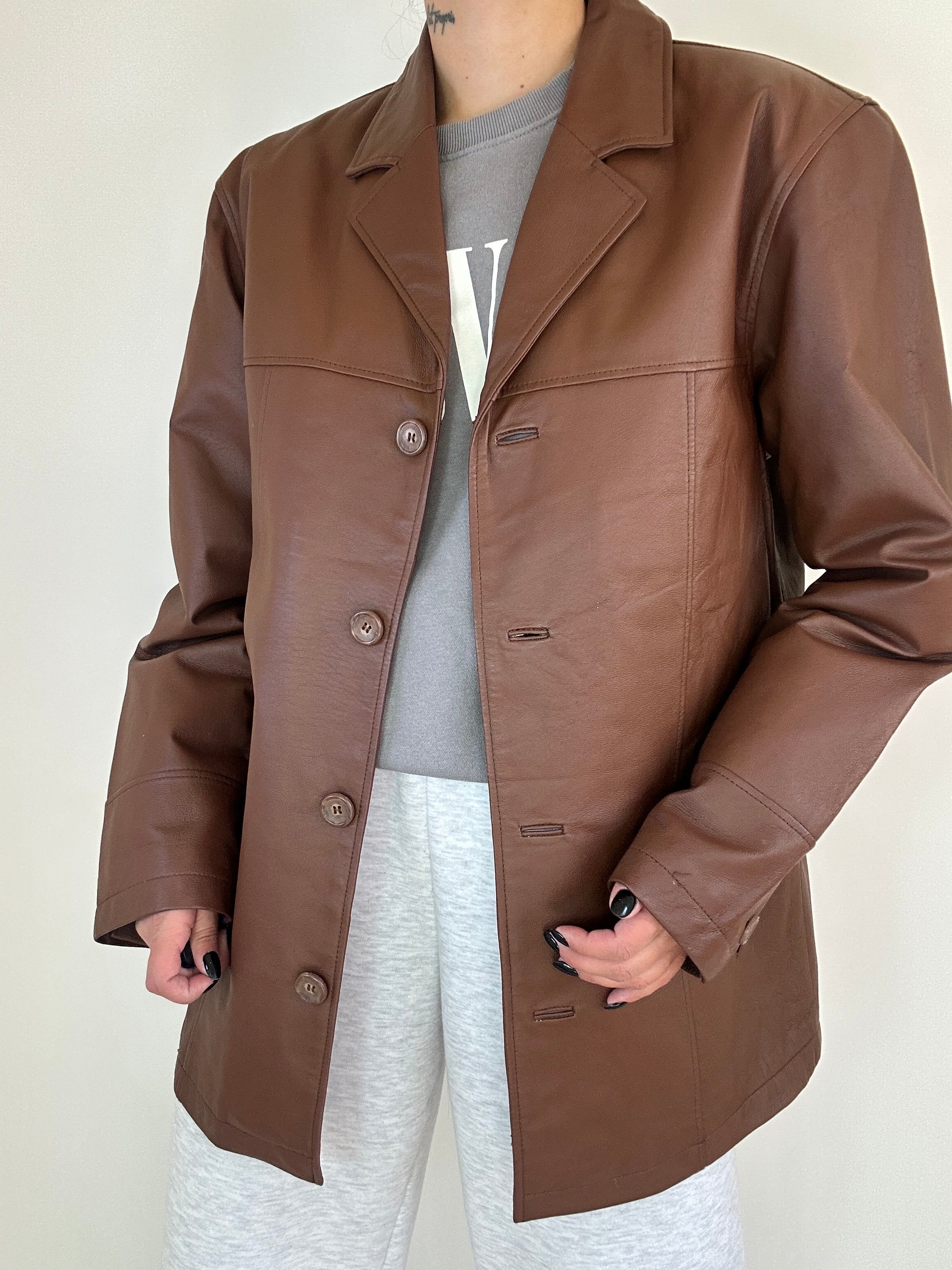 Giacca Vera Pelle marrone taglia 52 Spalla a Spalla: 49cm Lunghezza totale: 66cm  Taglia Modello\a:  42IT x 1,70