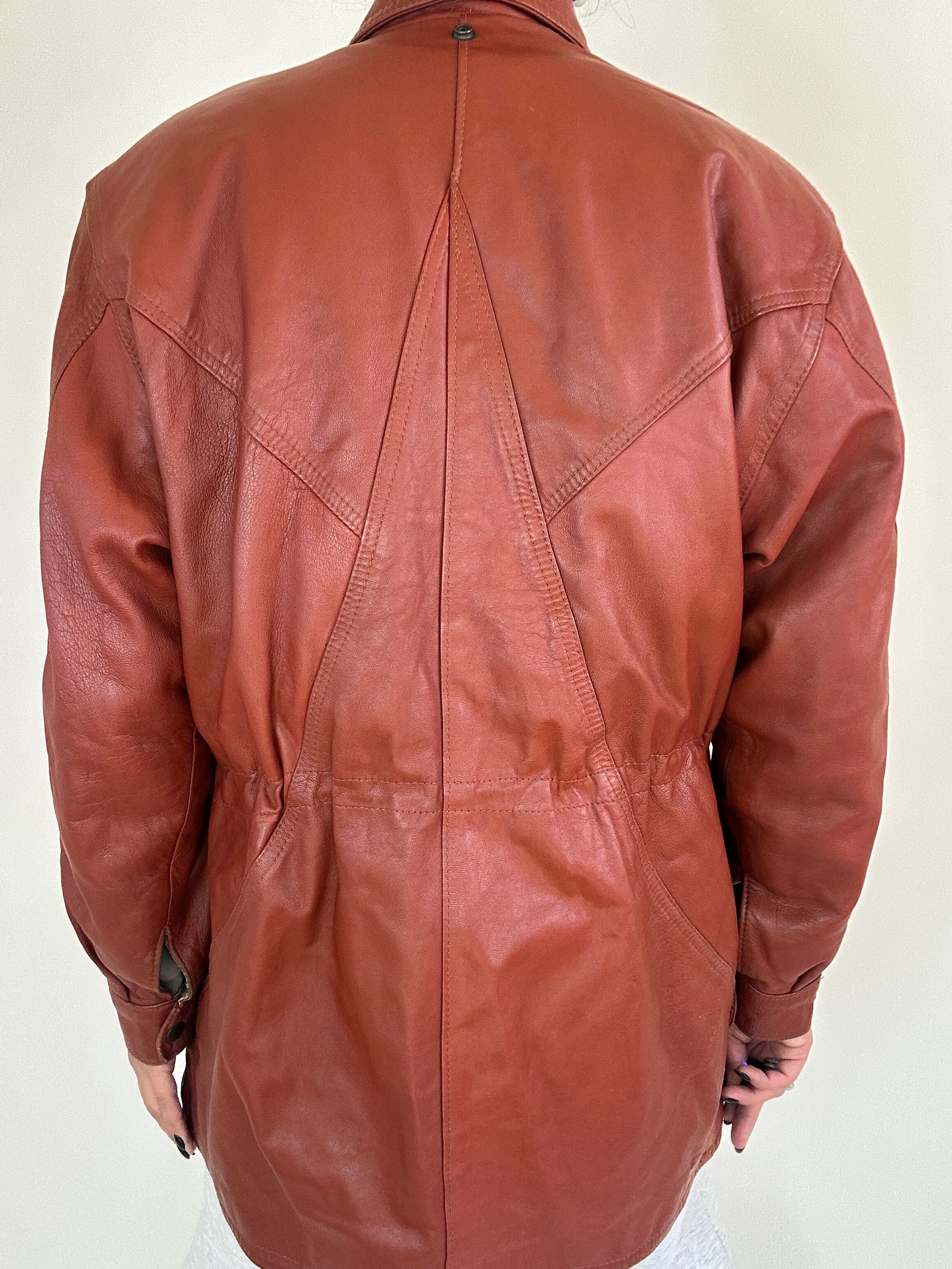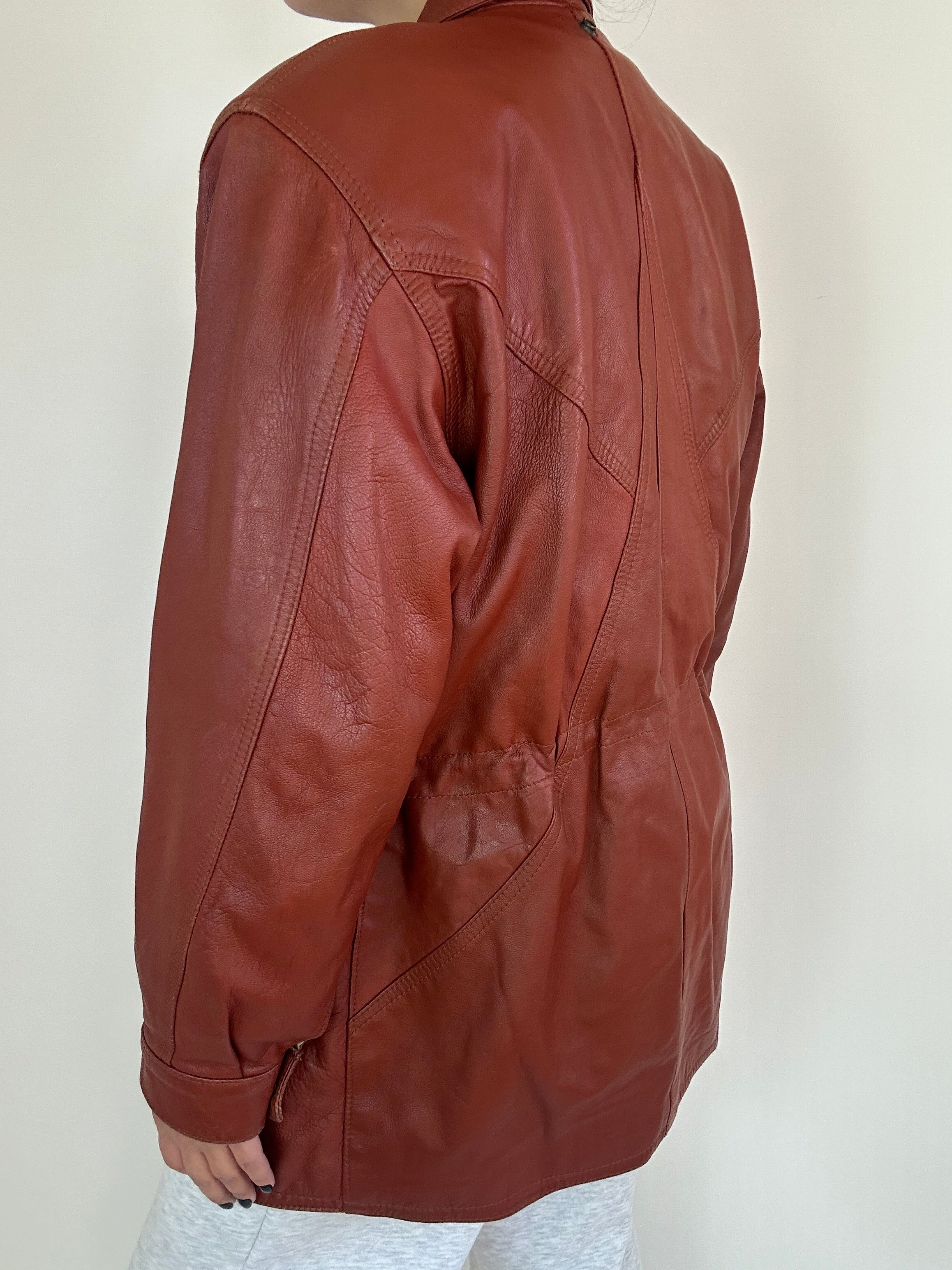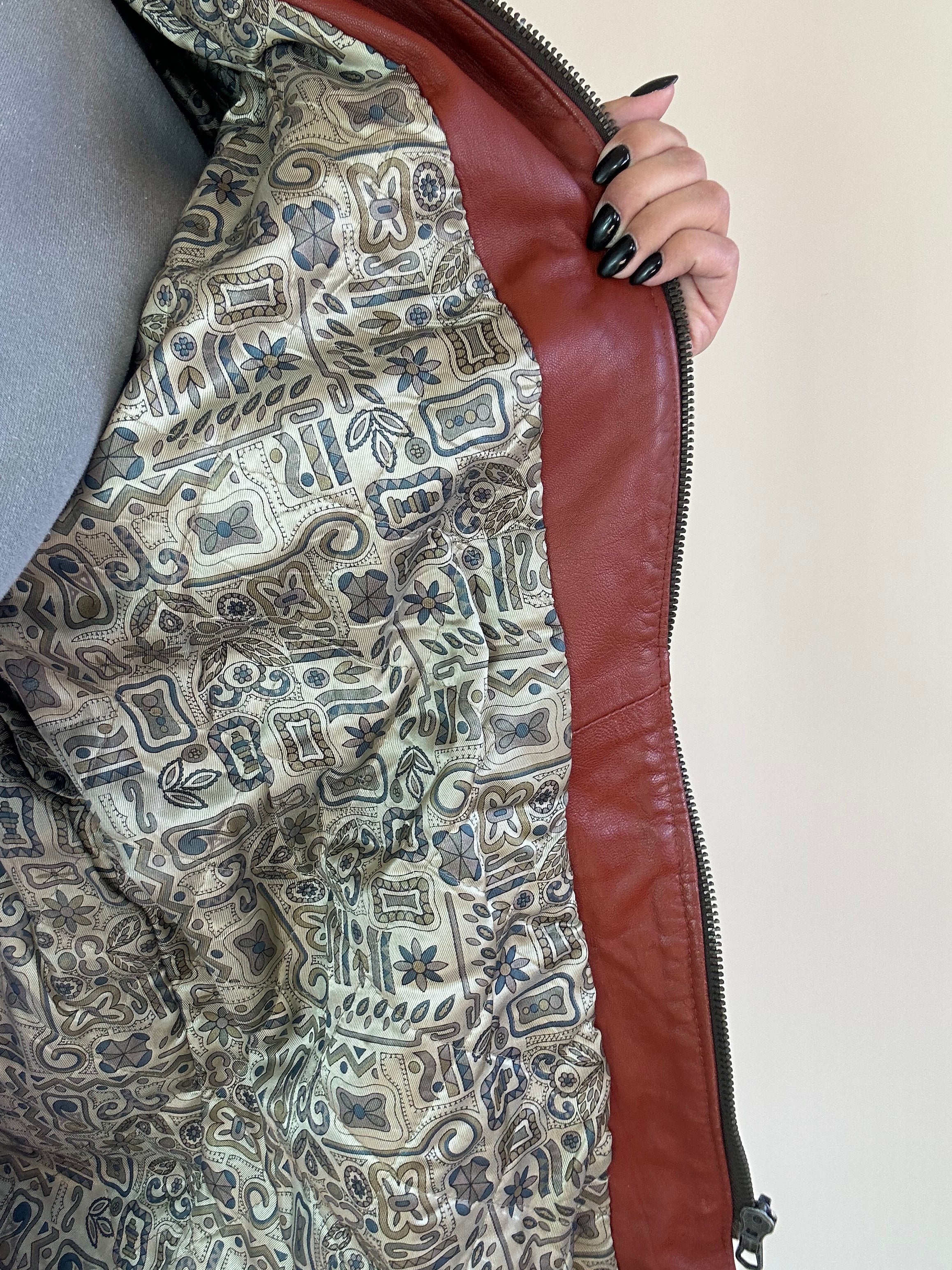 Giacca Vera pelle arancio bruciato taglia S  Spalla a Spalla: 49cm  Lunghezza totale: 80cm  Taglia Modello\a:  42IT x 1,70