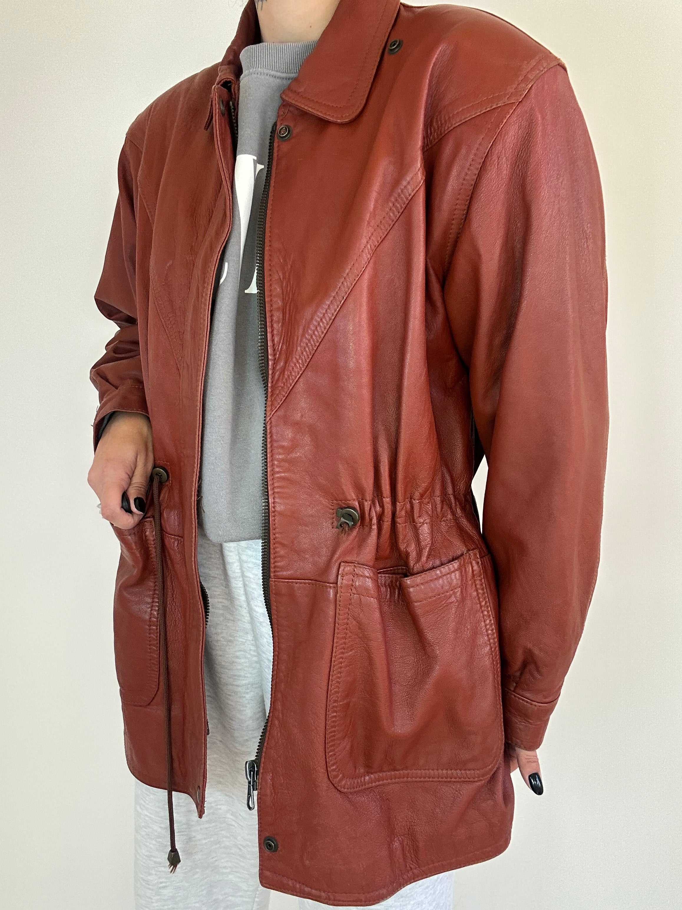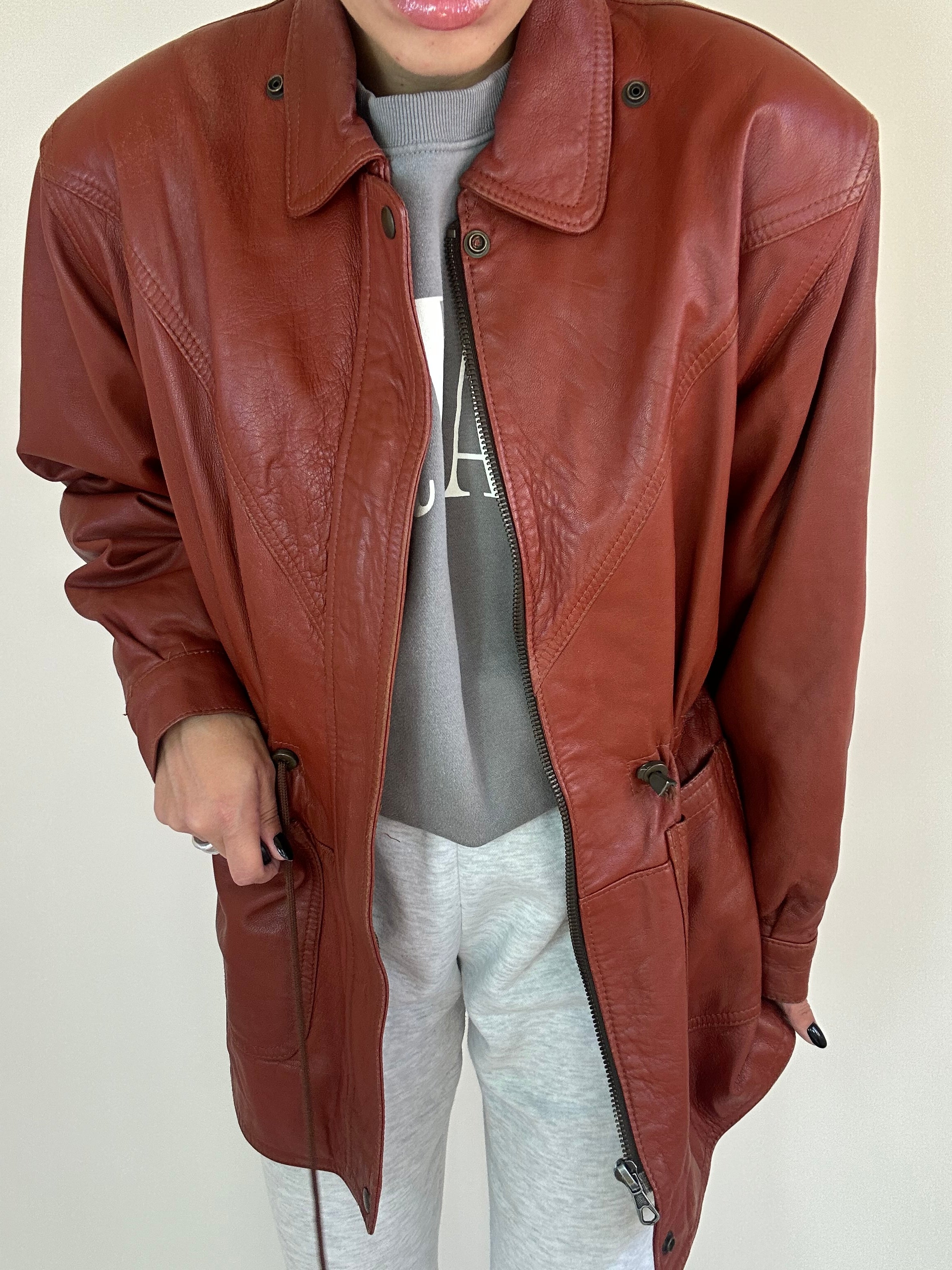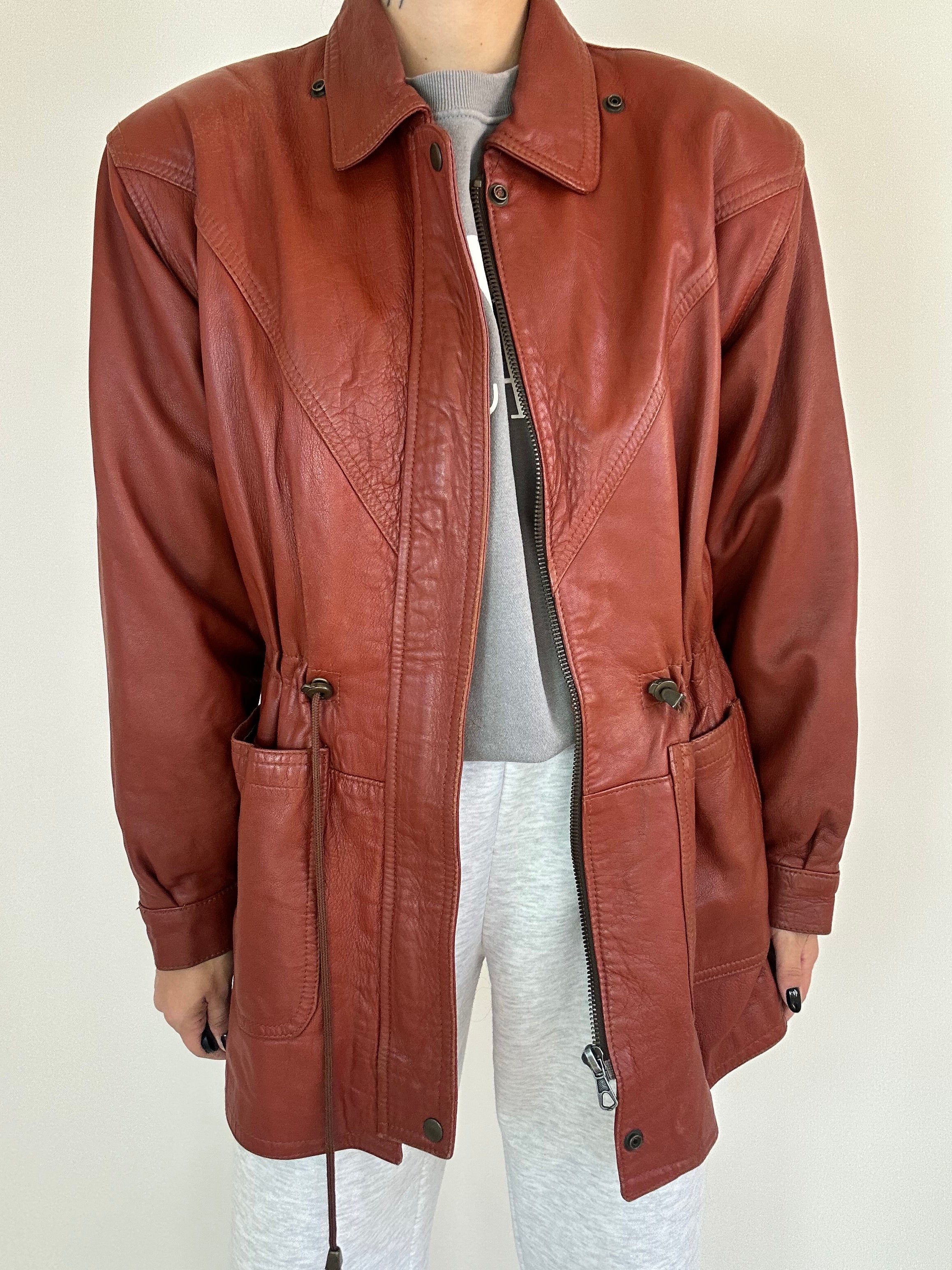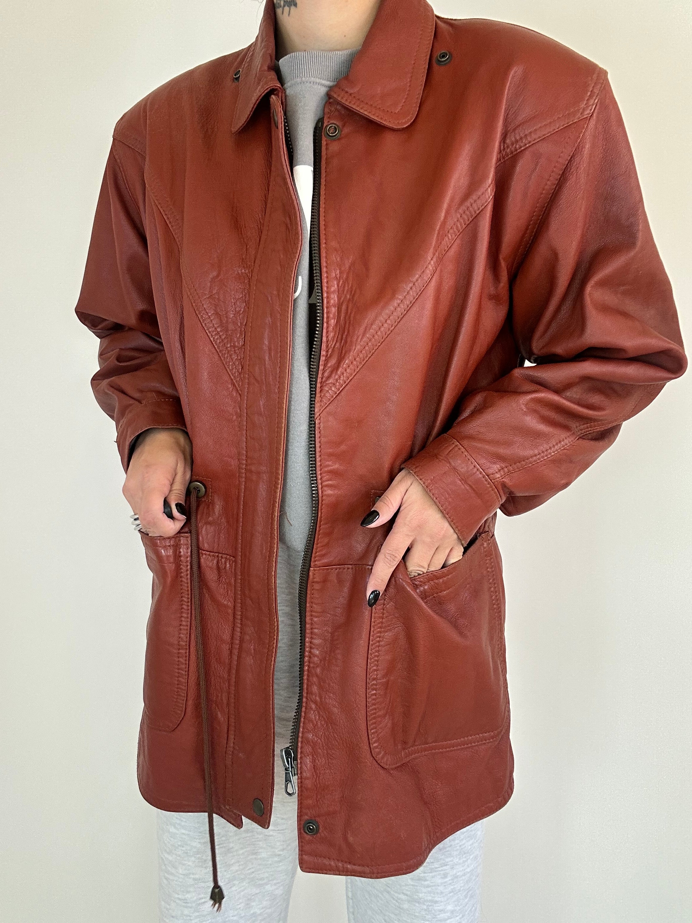 Giacca Vera pelle arancio bruciato taglia S  Spalla a Spalla: 49cm  Lunghezza totale: 80cm  Taglia Modello\a:  42IT x 1,70