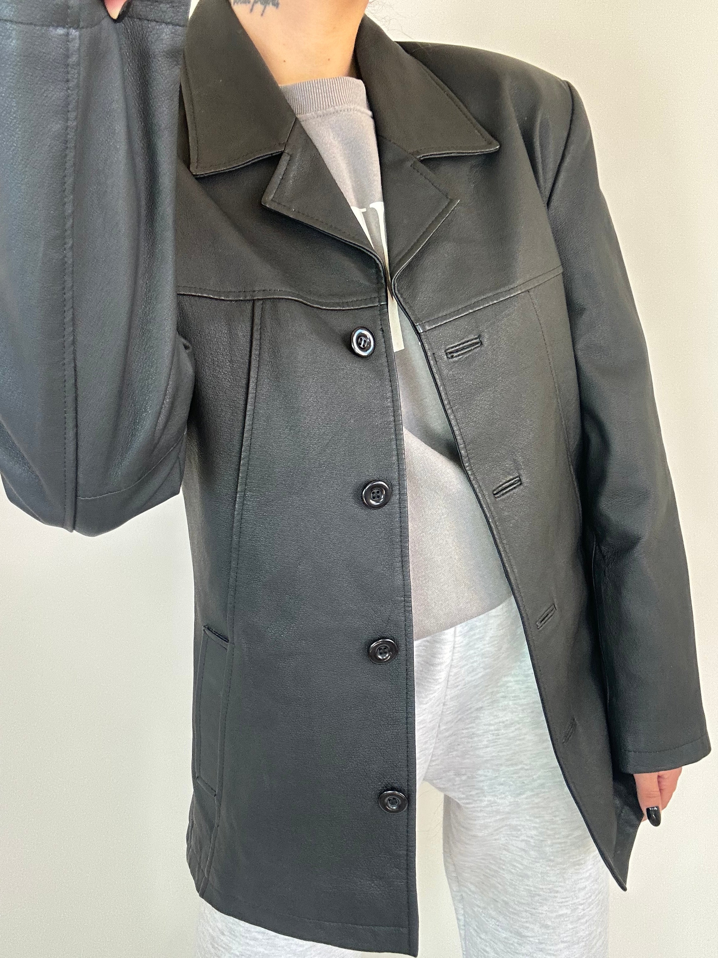 Giacca vera pelle nera taglia 48  Spalla a Spalla: 49cm  Lunghezza totale: 76cm  Taglia Modello\a:  42IT x 1,70