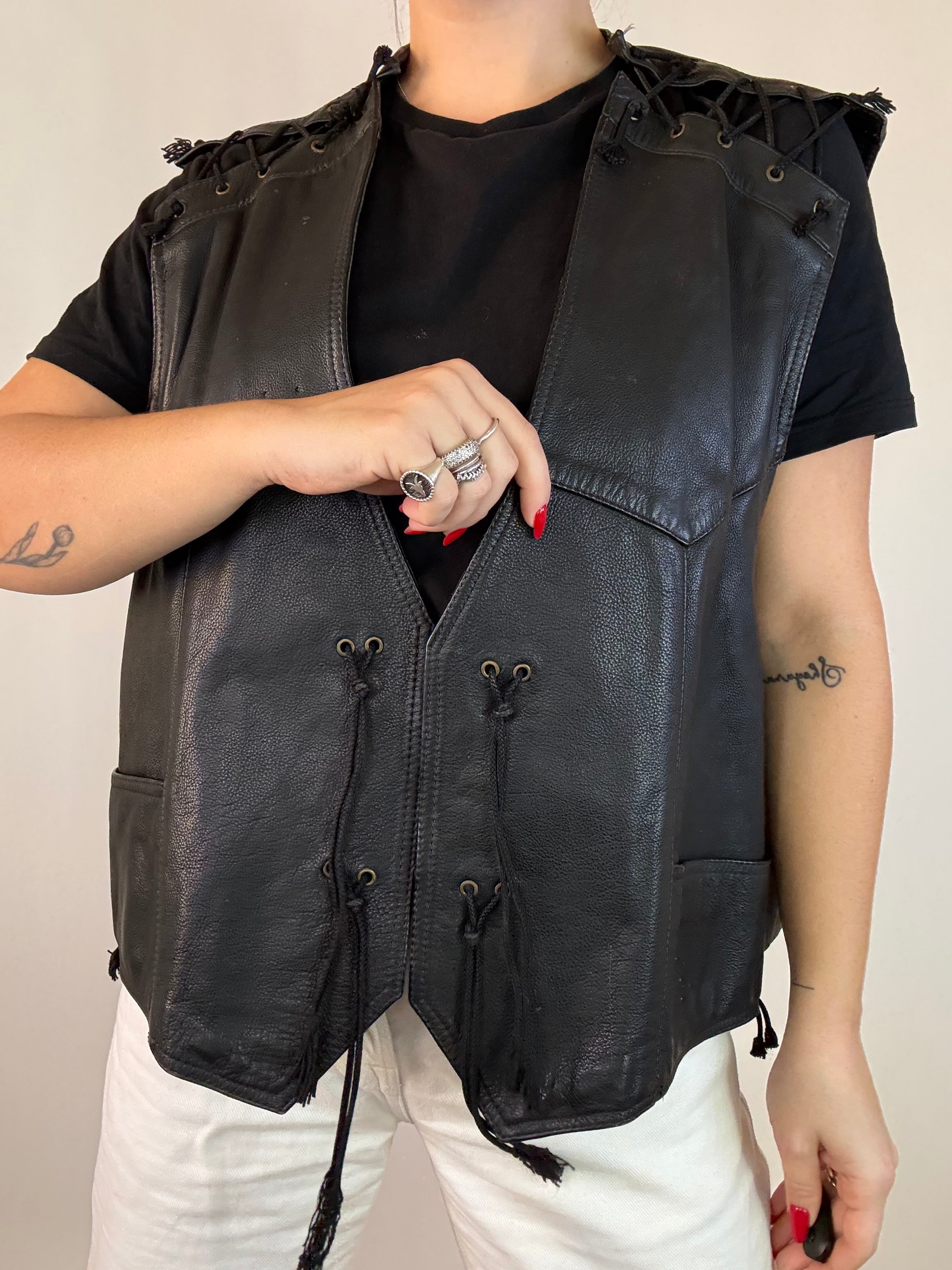 Gilet con stampa moto in Vera Pelle taglia XXL