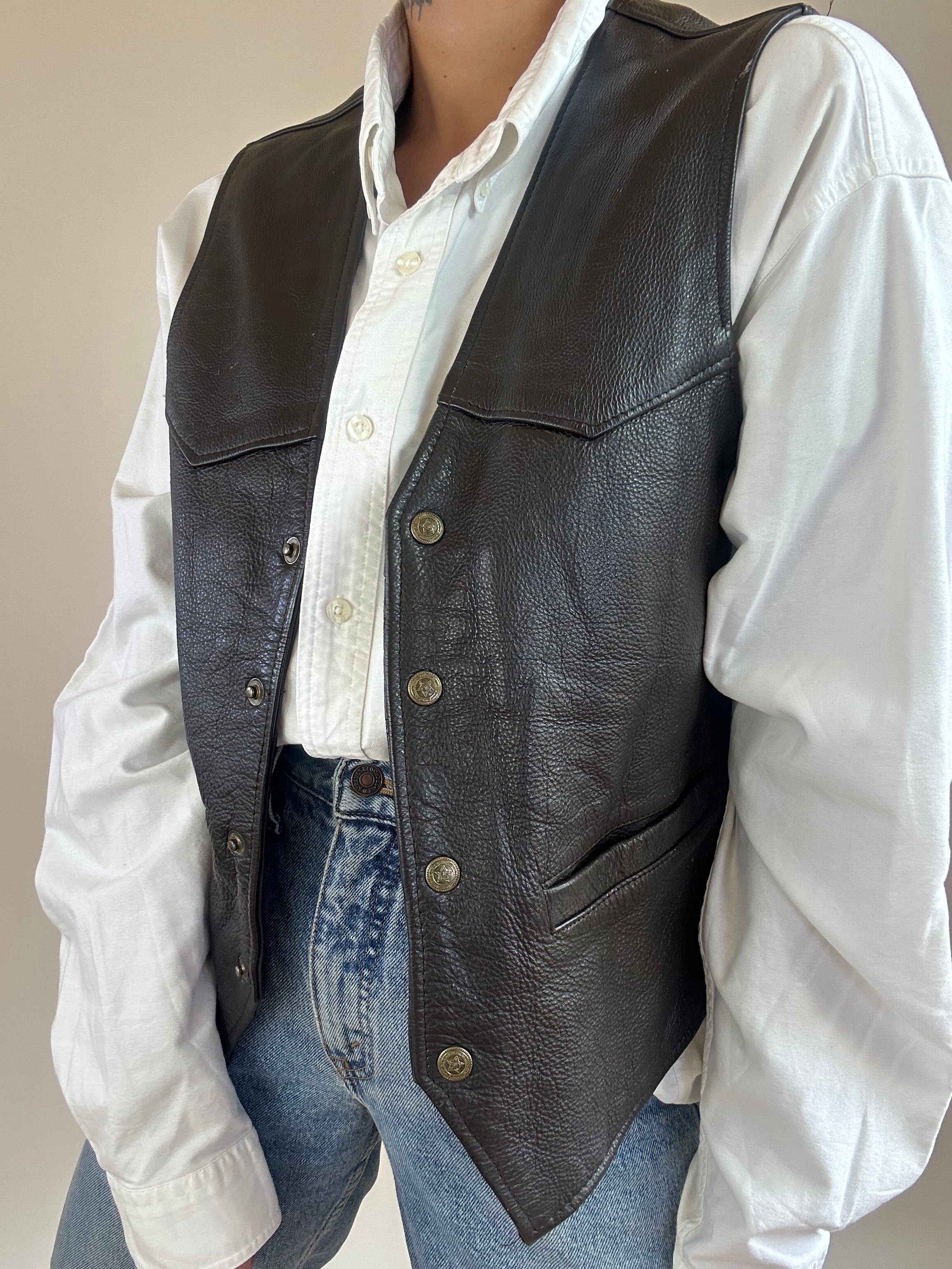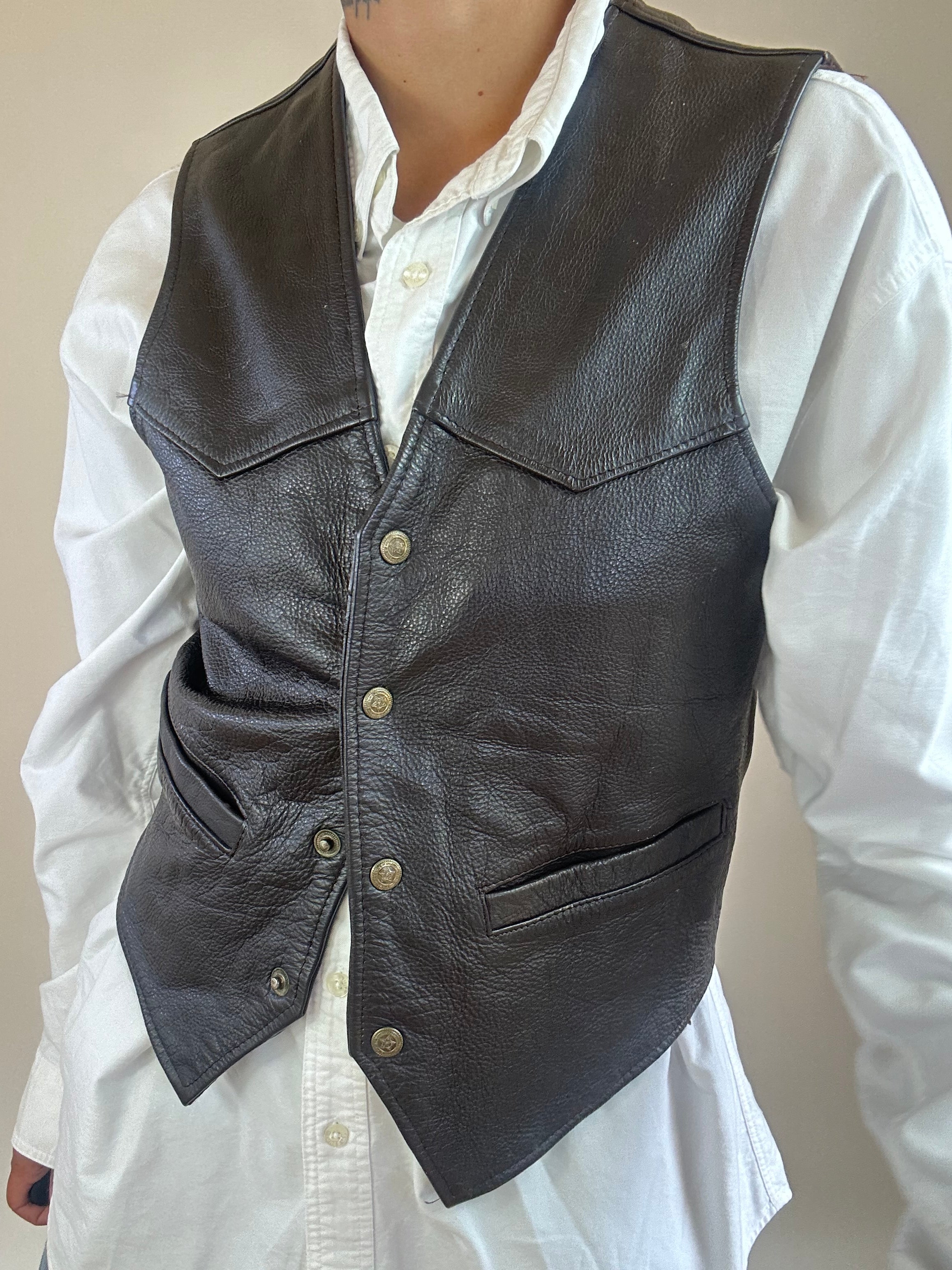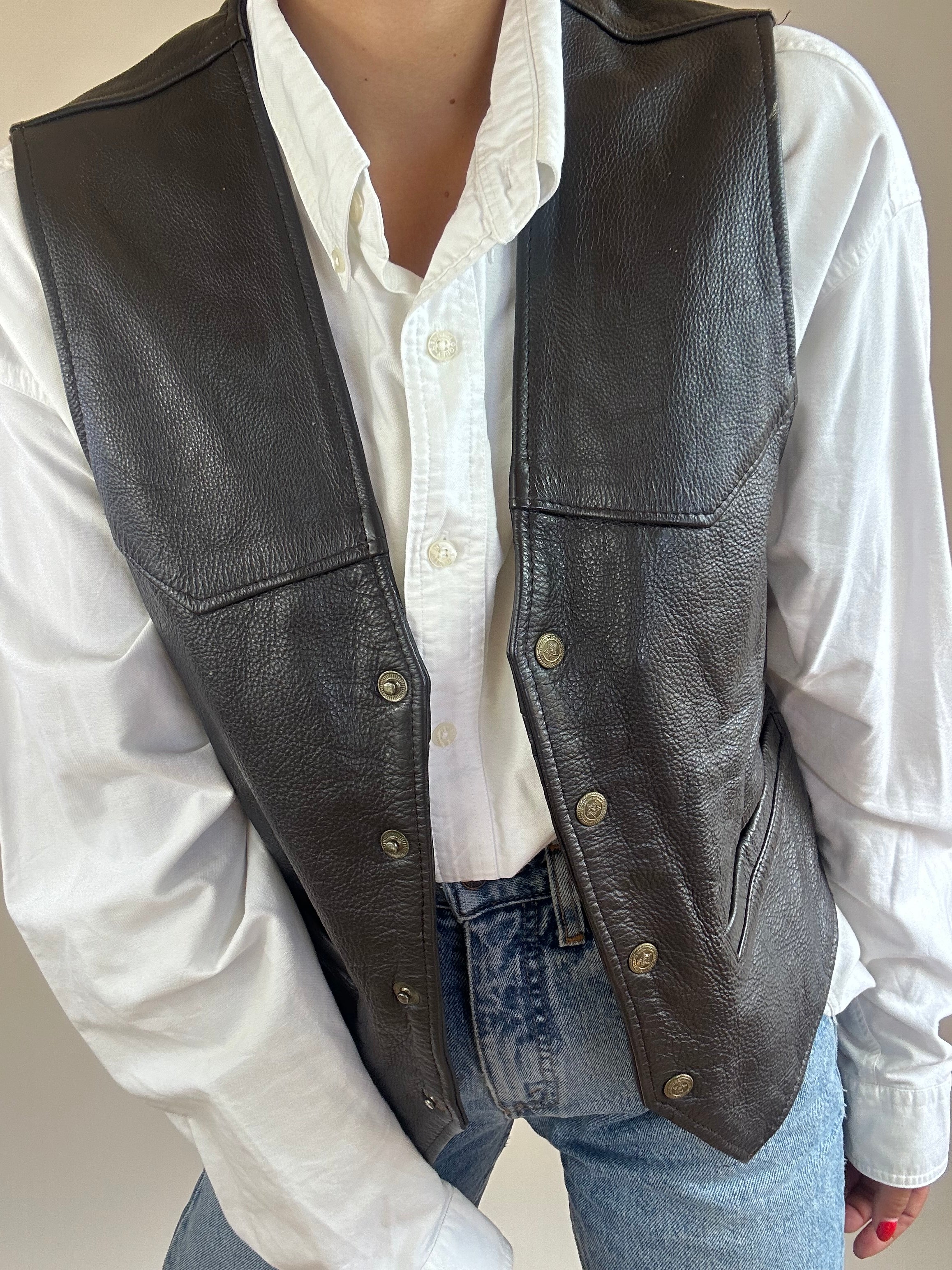 Gilet in vera pelle nero taglia S Spalla a spalla: 38cm Lunghezza totale: 58cm Taglia Modello\a:  42IT x 1,70