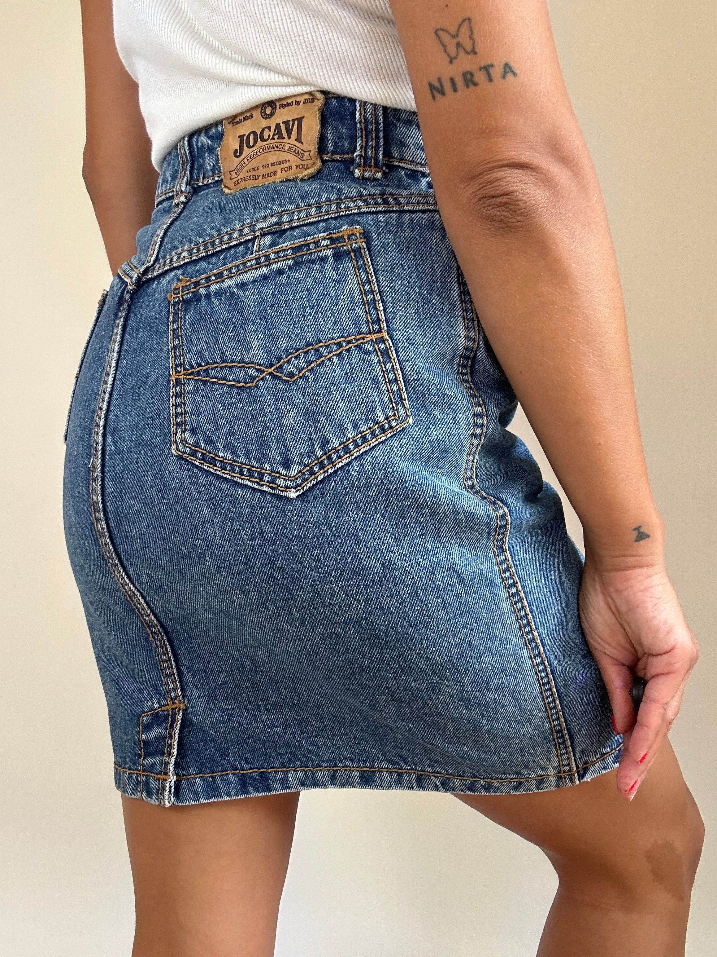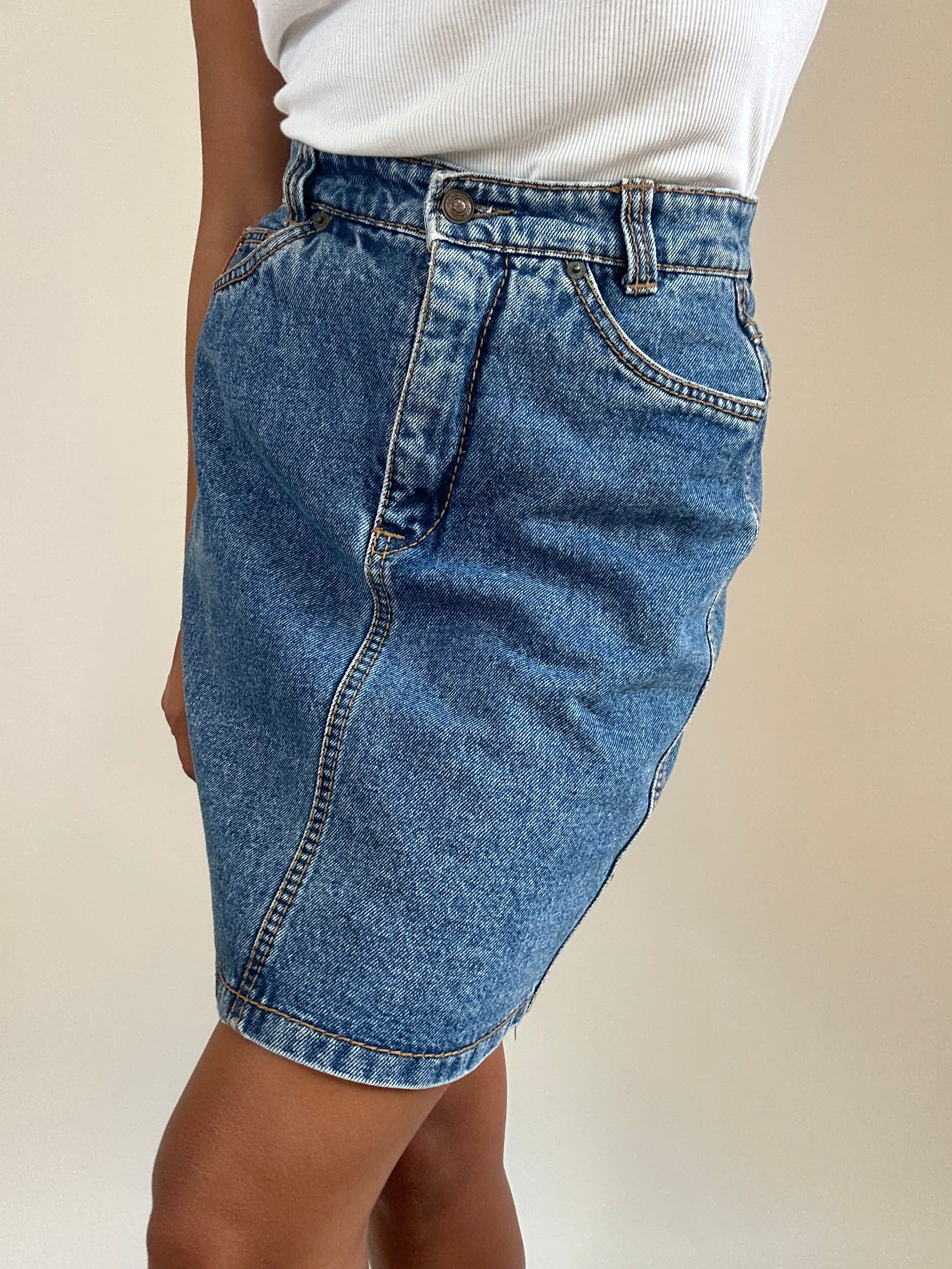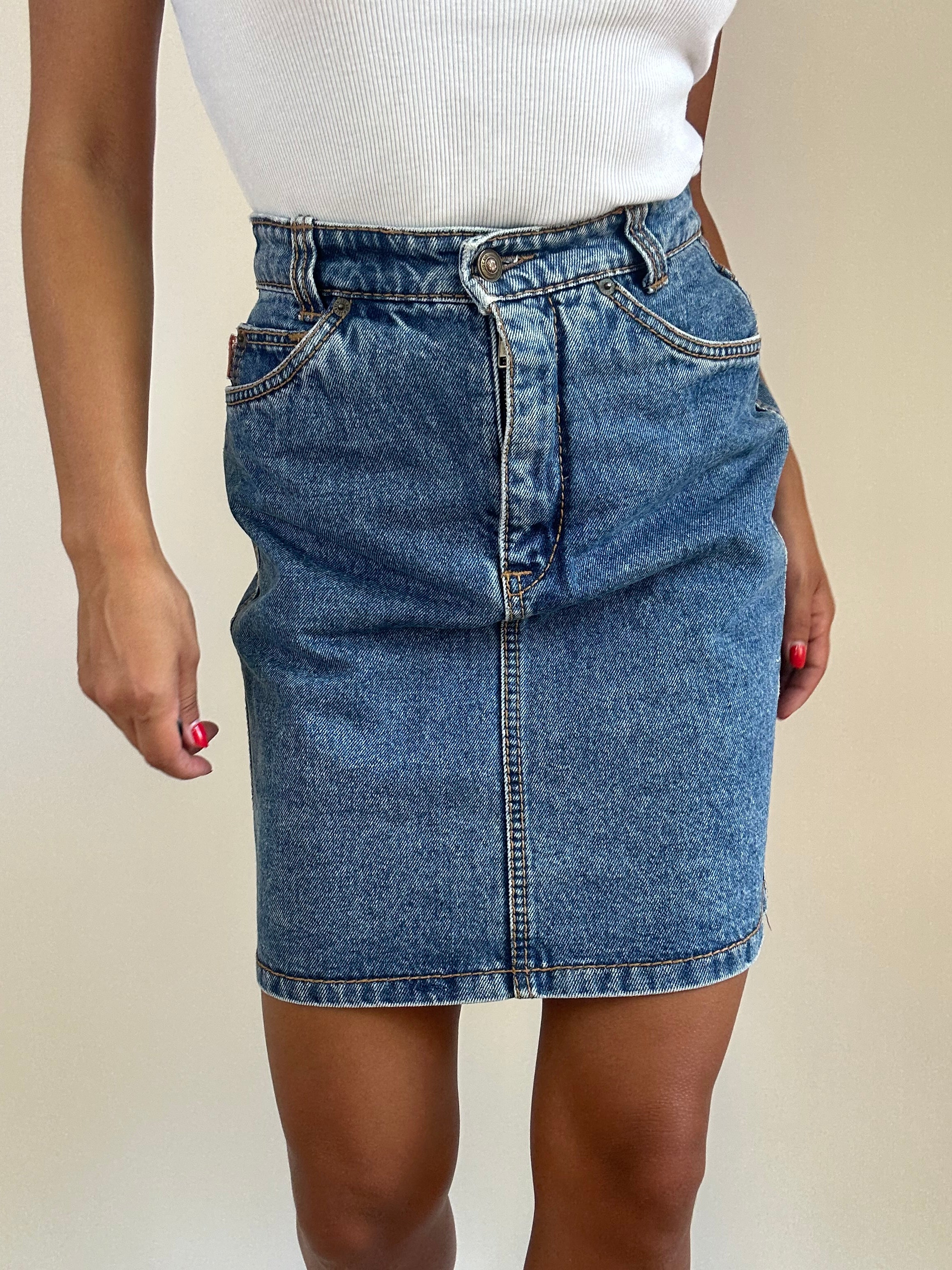 Gonna denim blu taglia 42 vita piatta: 36cm  Lunghezza totale: 48cm  Taglia Modello\a:  42IT x 1,70