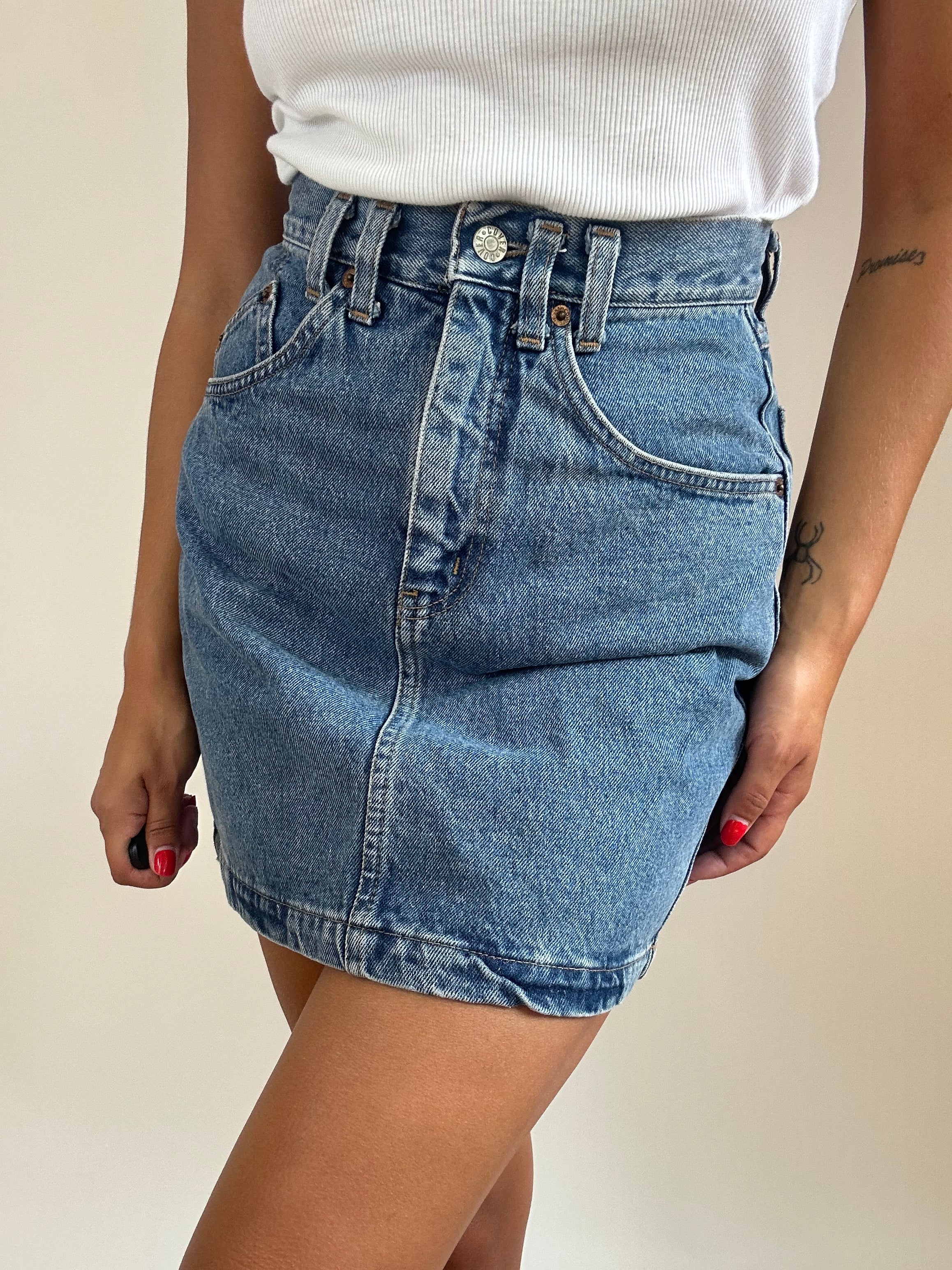 Gonna denim taglia 40 vita piatta: 36cm  Lunghezza totale: 42cm  Taglia Modello\a:  42IT x 1,70