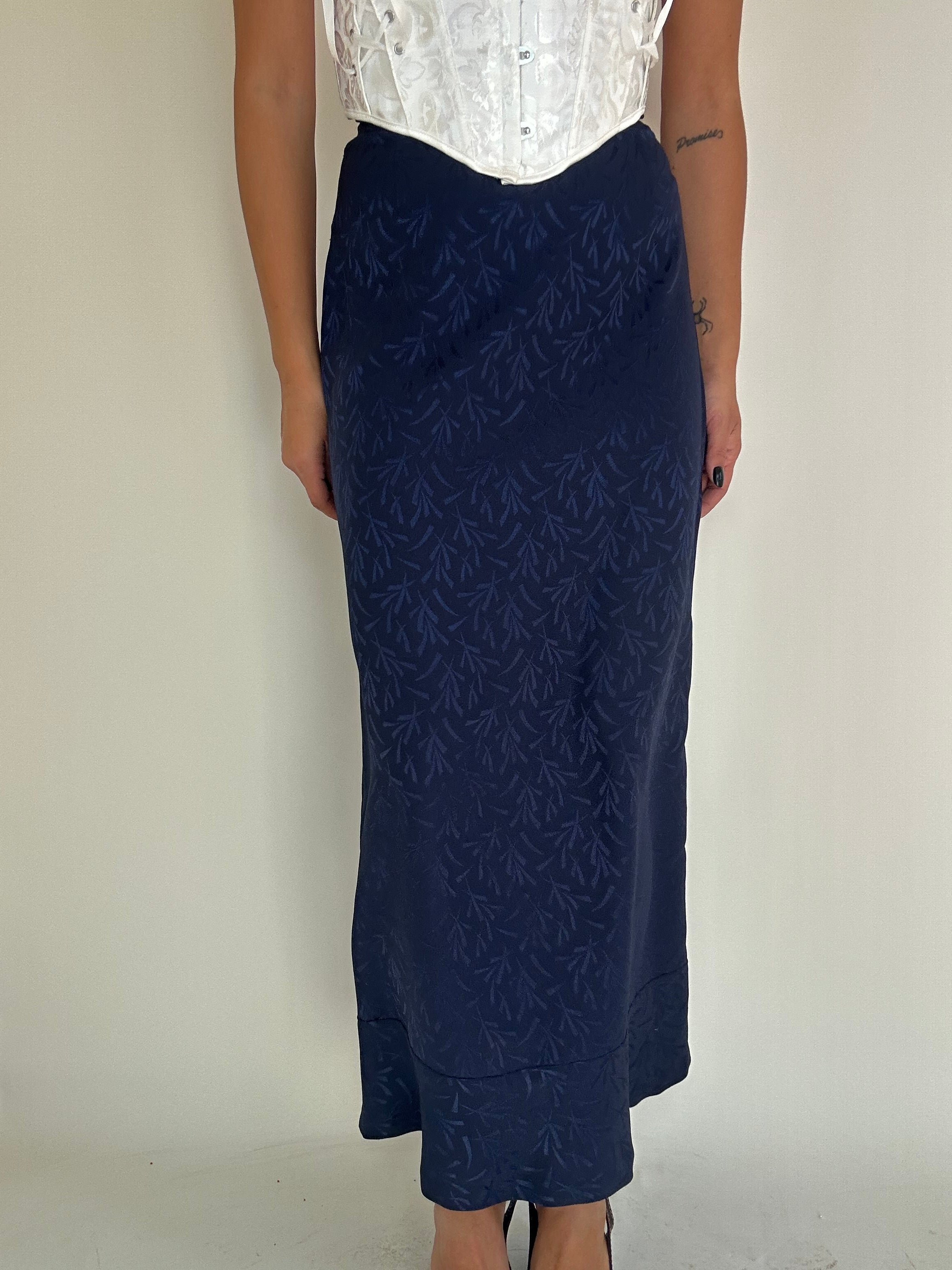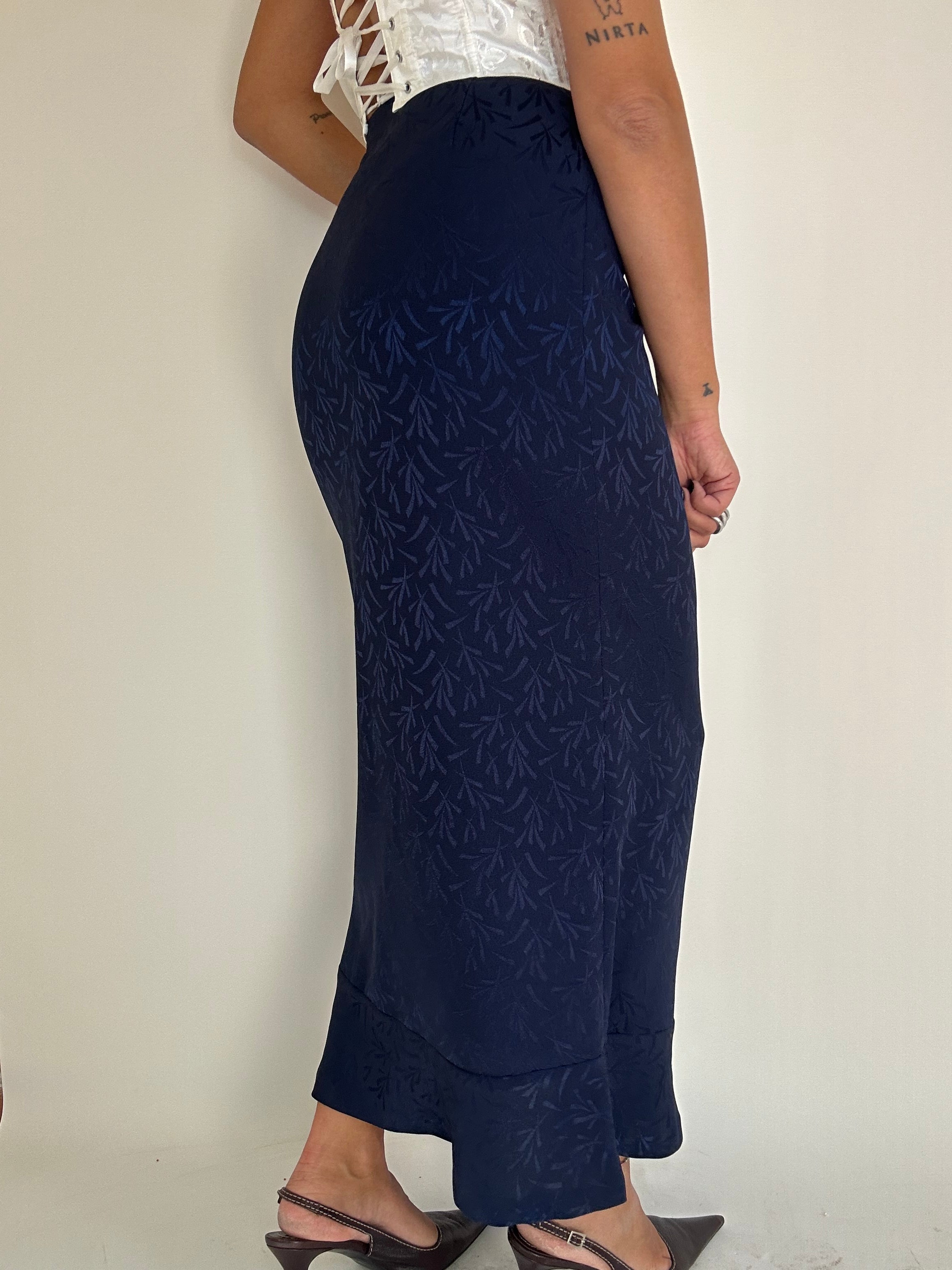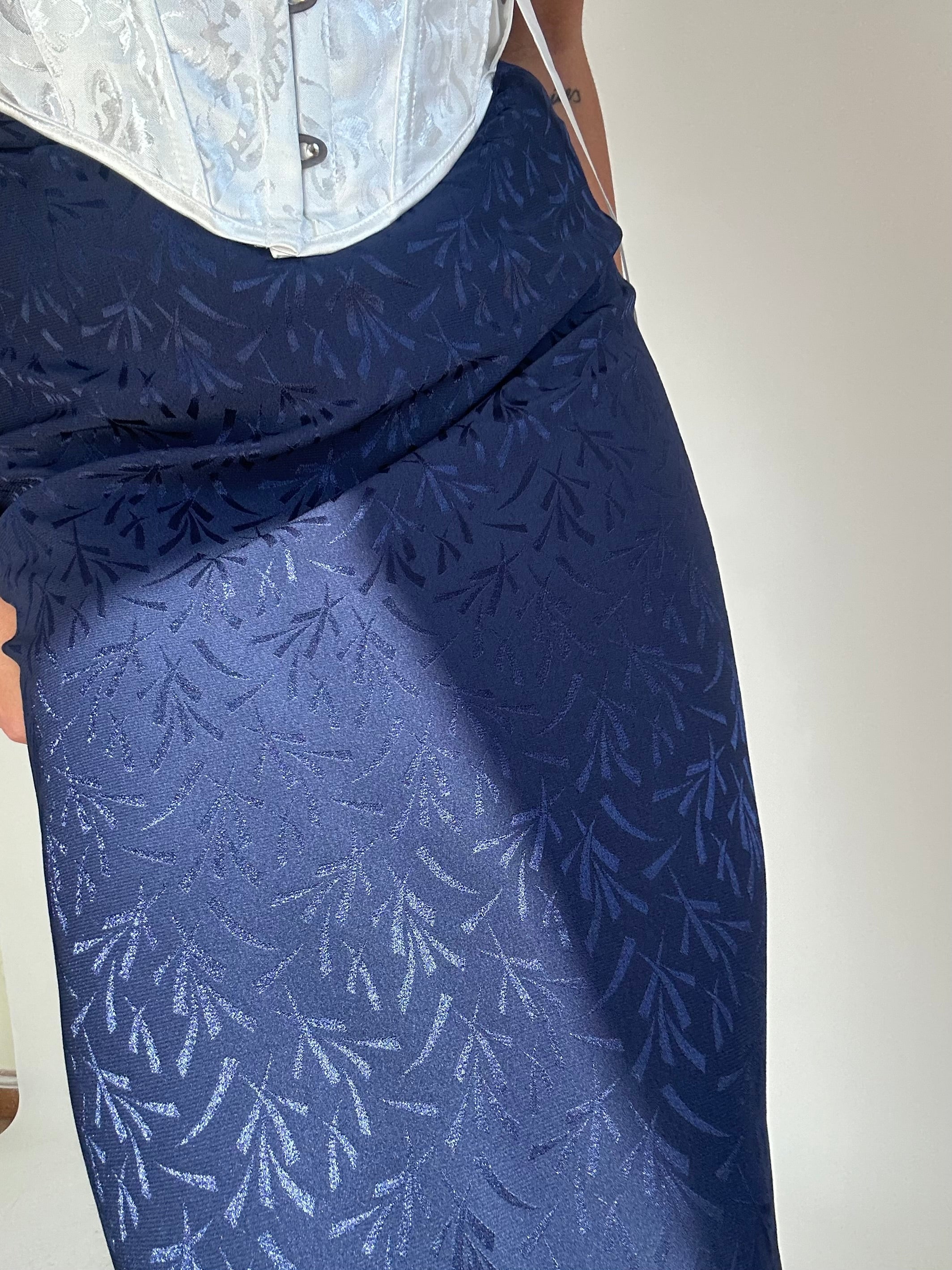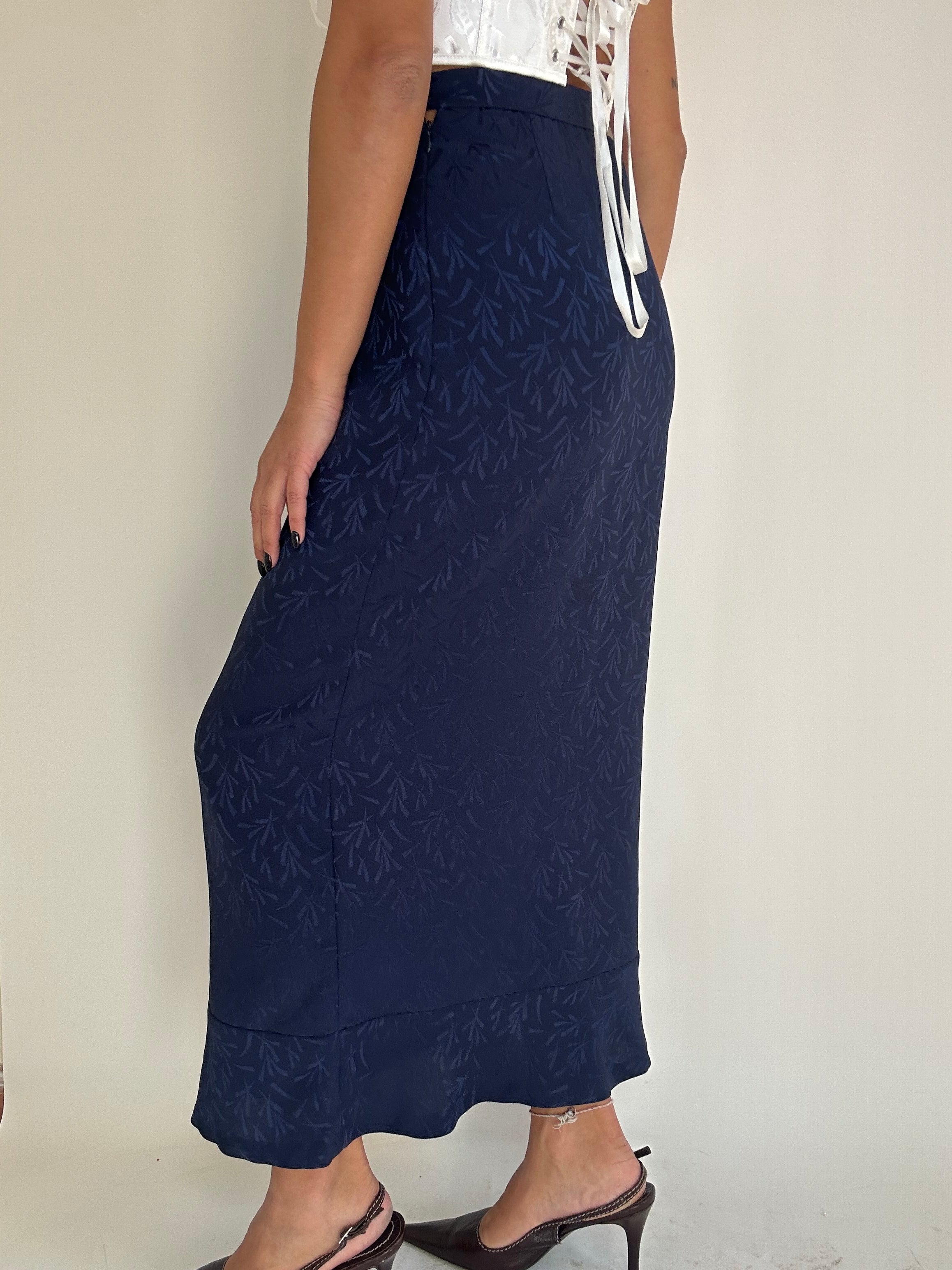 Gonna Fendi blu con inserti foglie taglia 42 Vita piatta: 34cm  Lunghezza totale: 94cm  Taglia Modello\a:  42IT x 1,70
