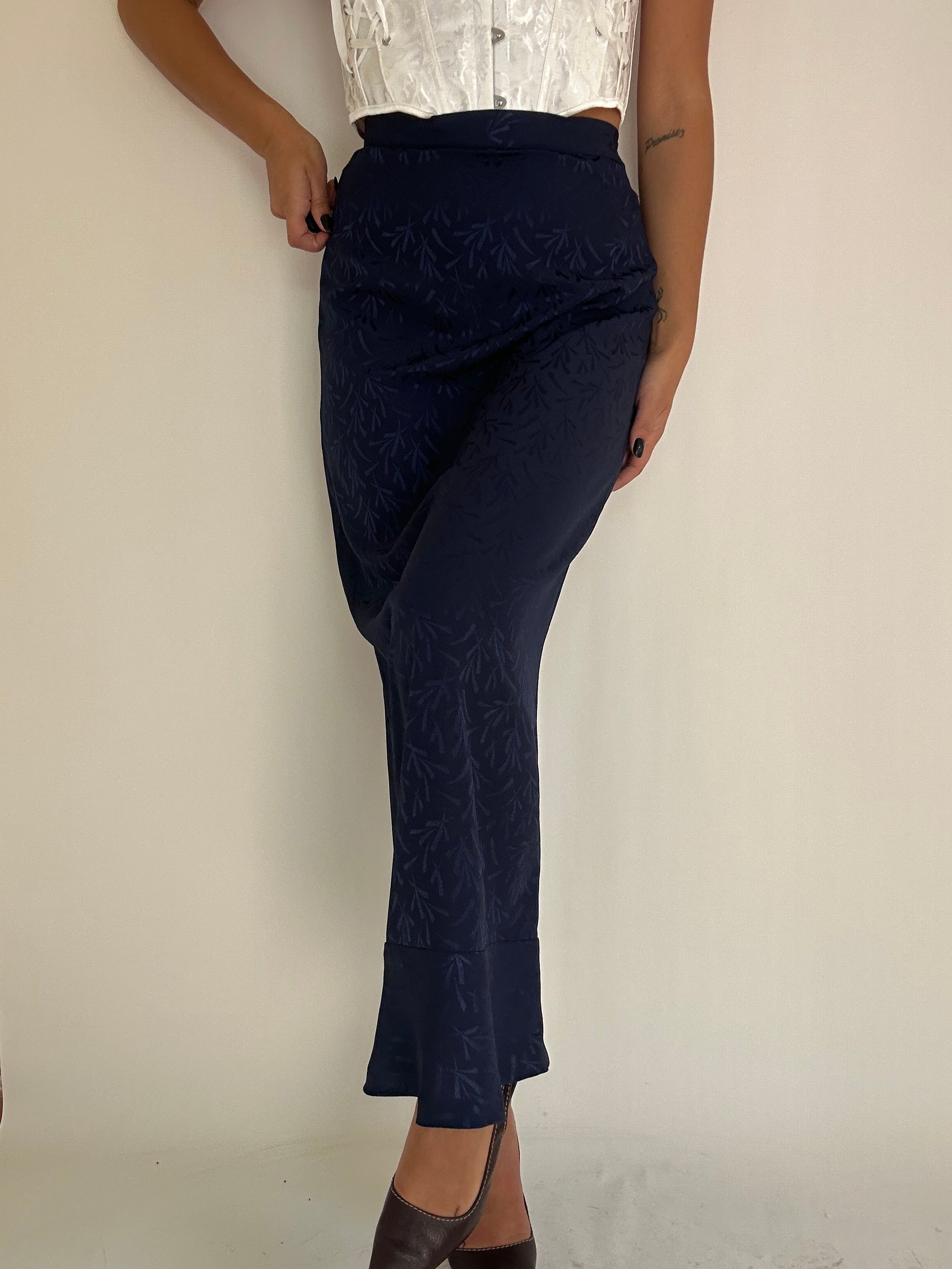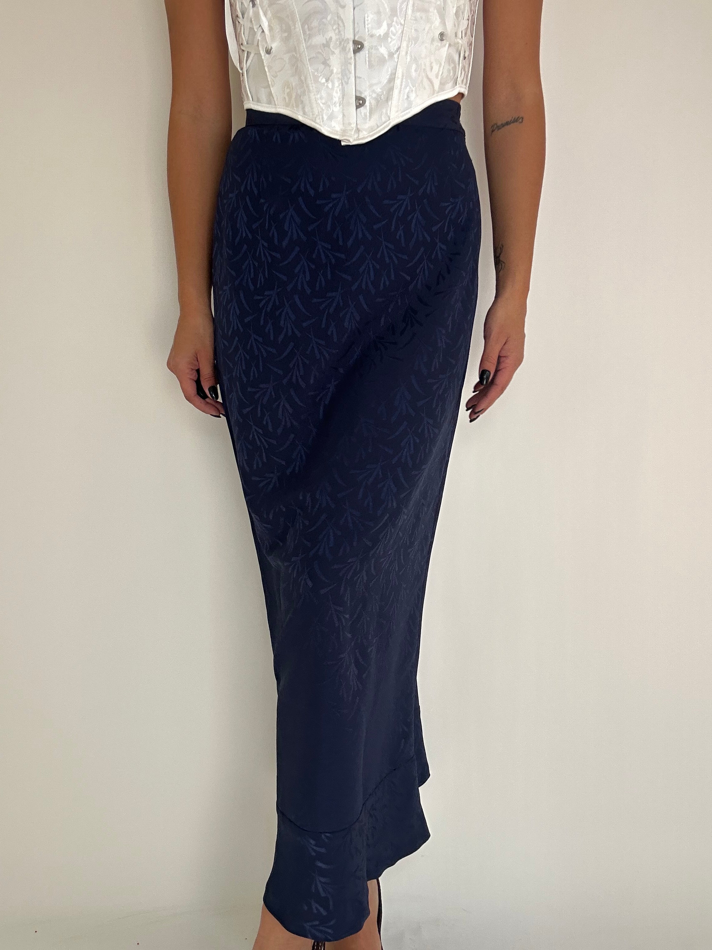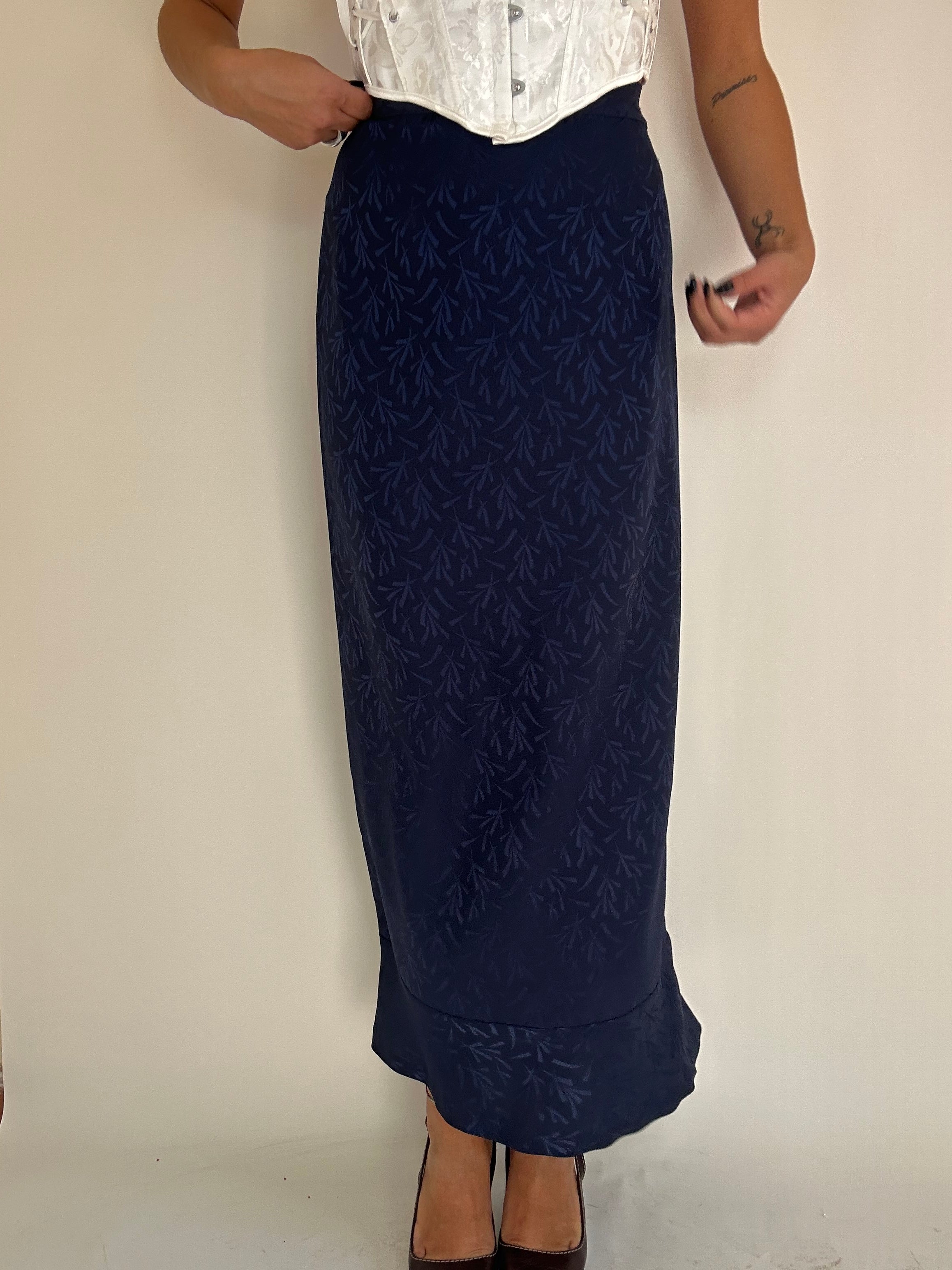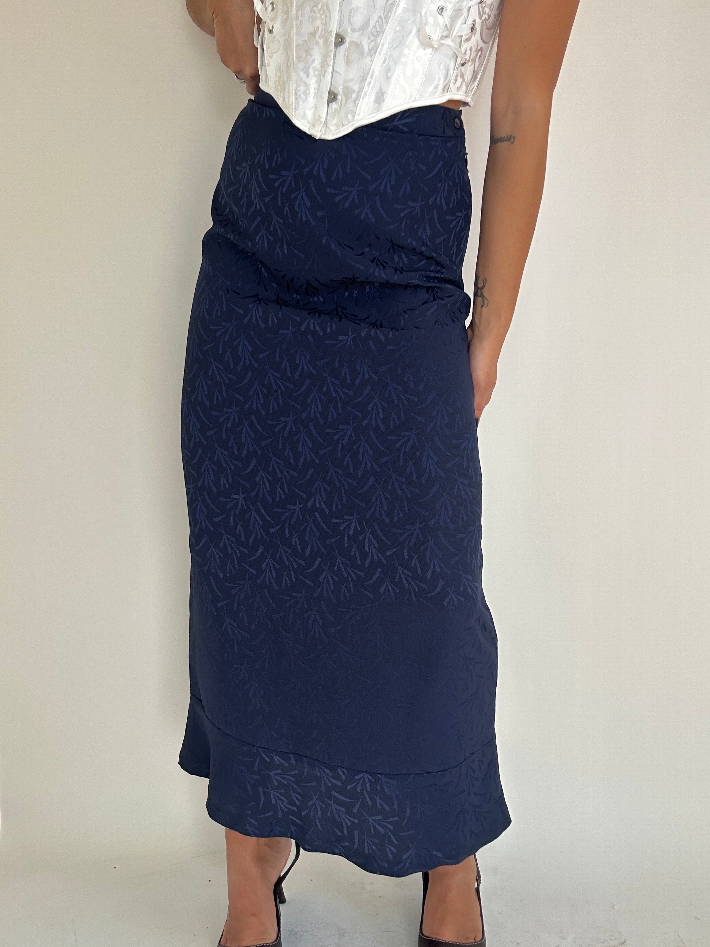 Gonna Fendi blu con inserti foglie taglia 42 Vita piatta: 34cm  Lunghezza totale: 94cm  Taglia Modello\a:  42IT x 1,70