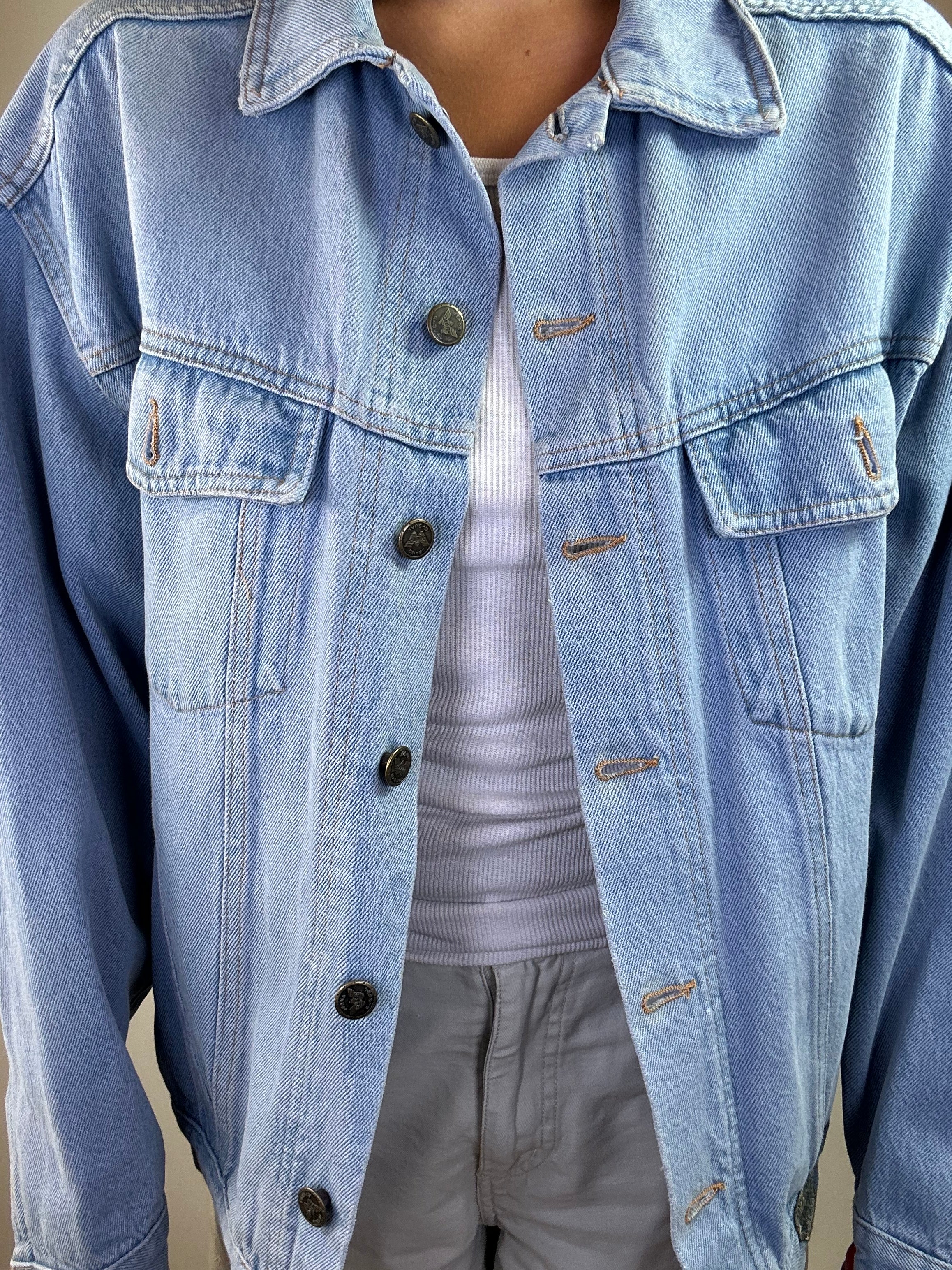 Jacket Denim custom Again taglia M  Spalla a Spalla: 55cm Lunghezza totale: 67cm  Taglia Modello\a: 42IT x 1,70