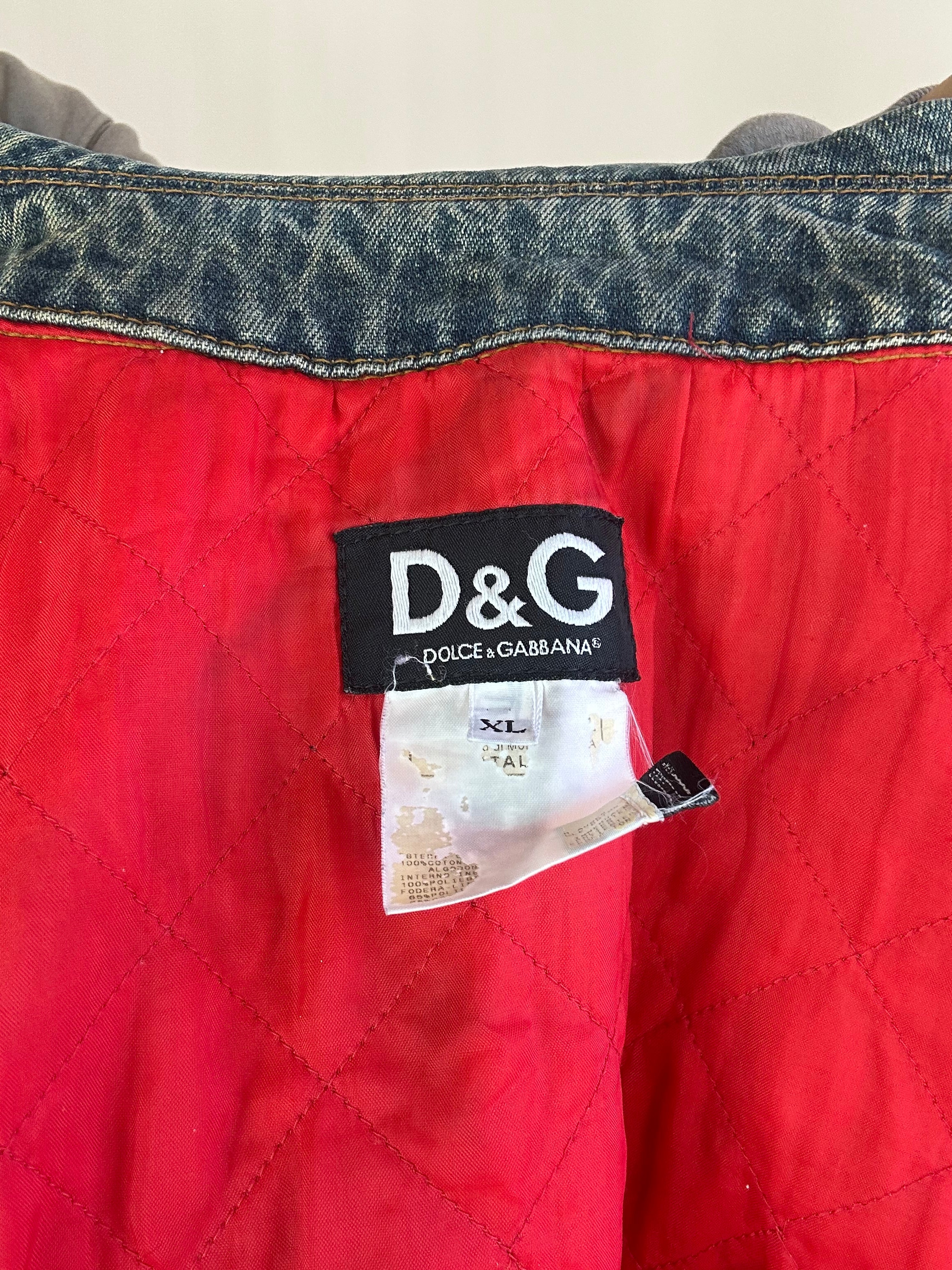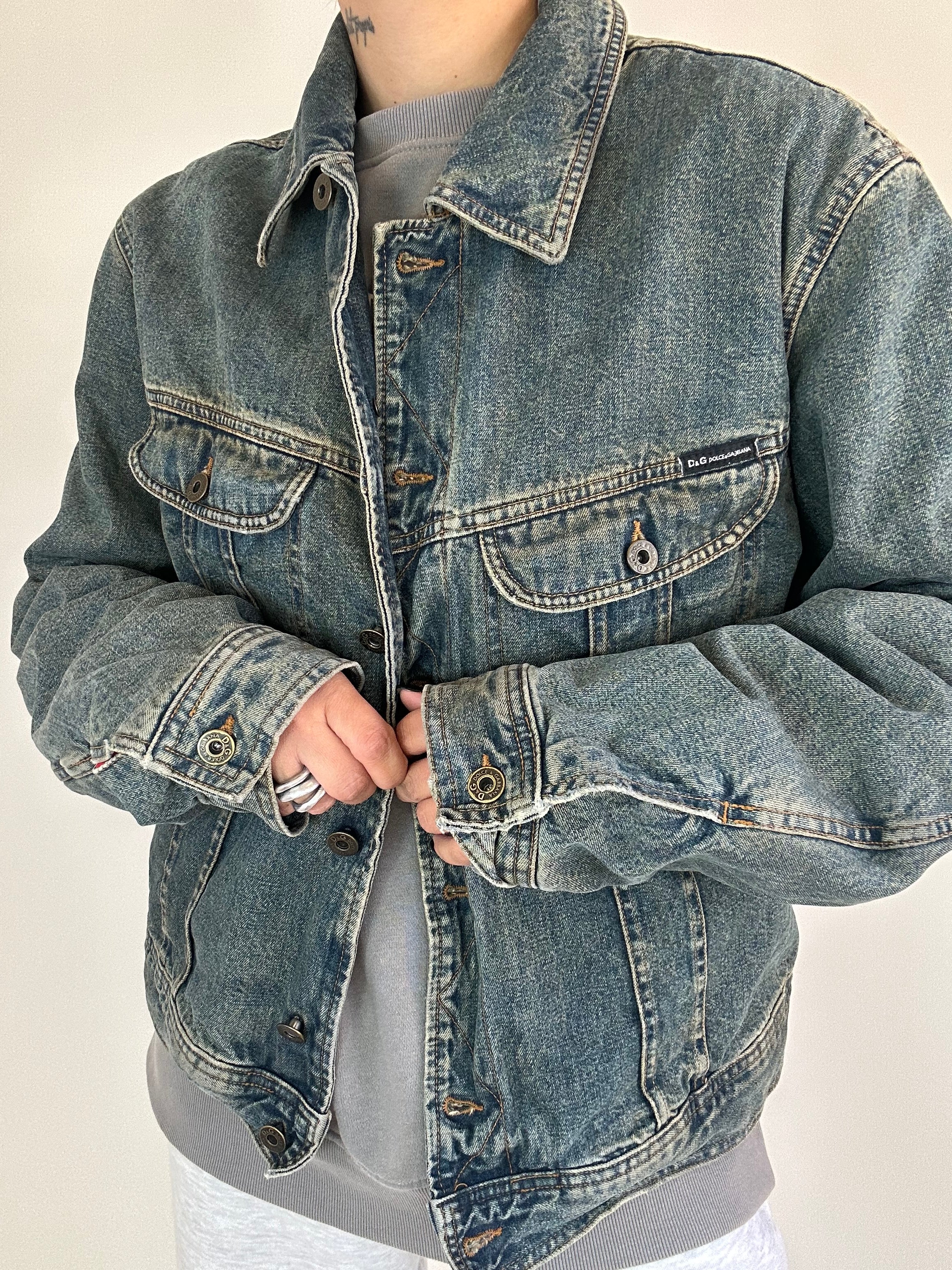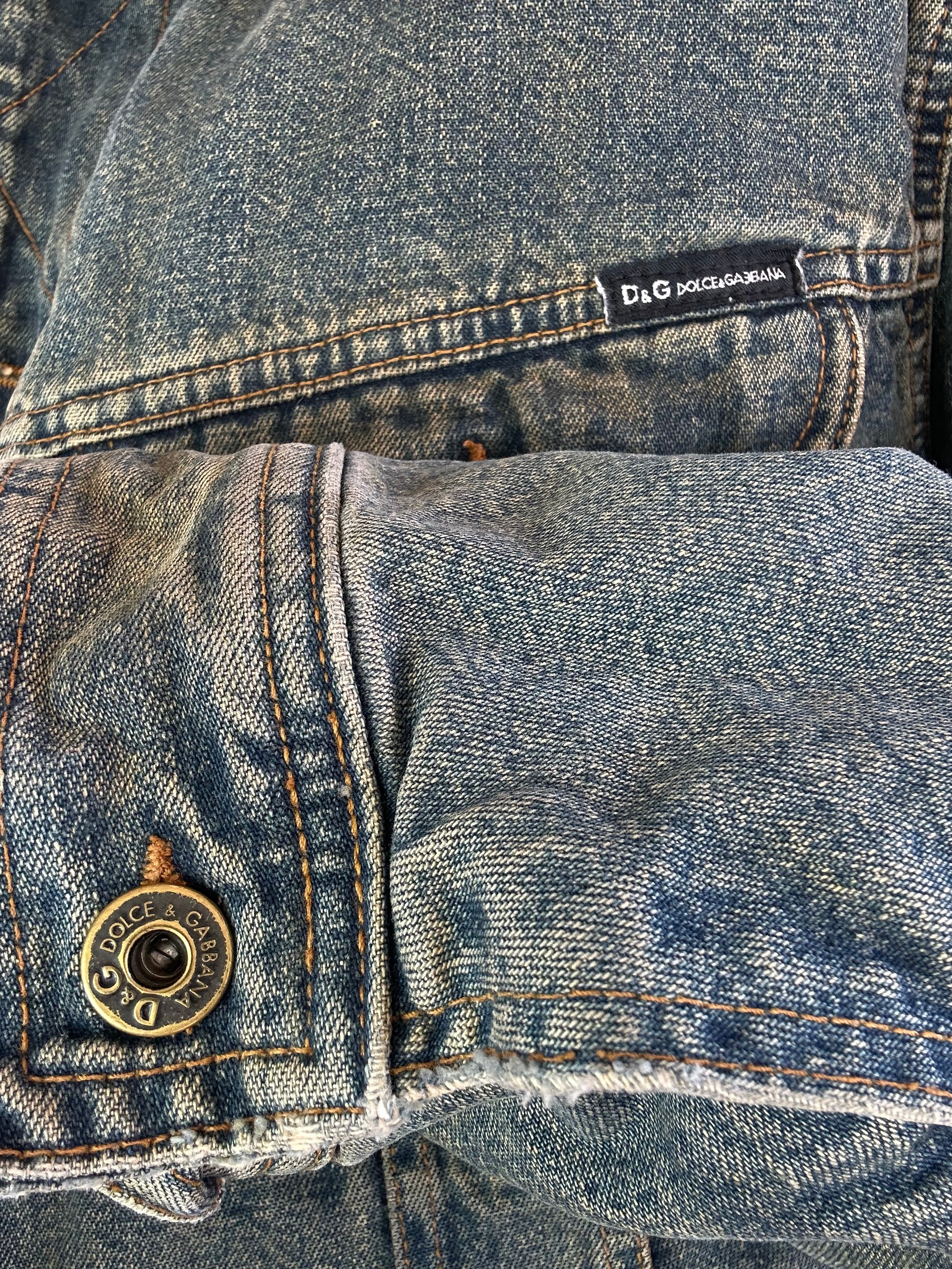 Jacket Denim imbottito Dolce&Gabbana taglia XL  Spalla a Spalla: 49cm  Lunghezza totale: 62cm  Taglia Modello\a:  42IT x 1,70