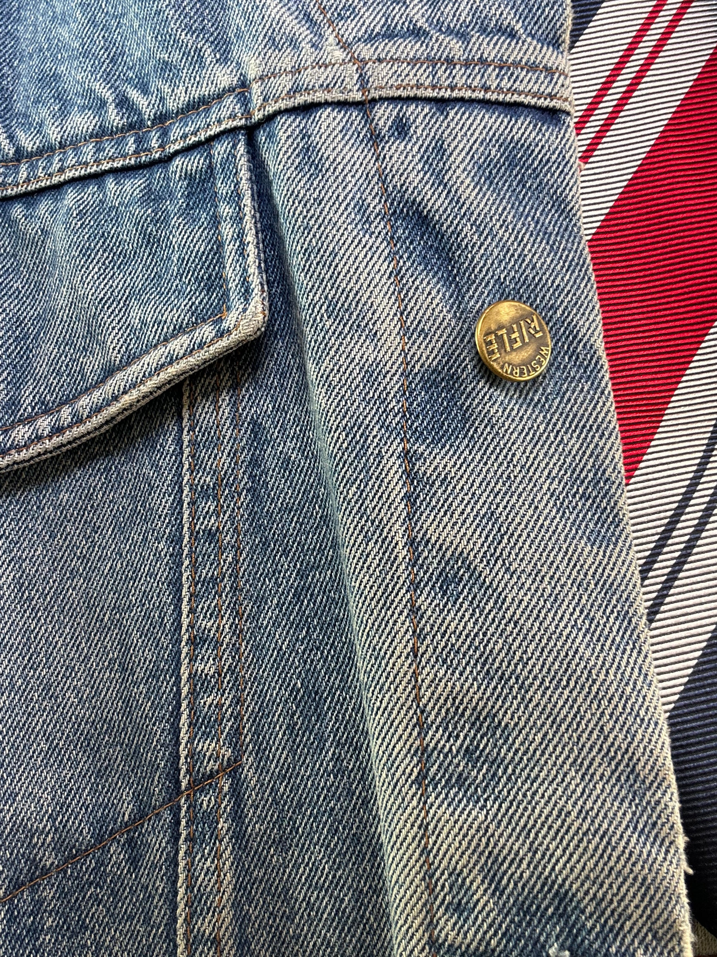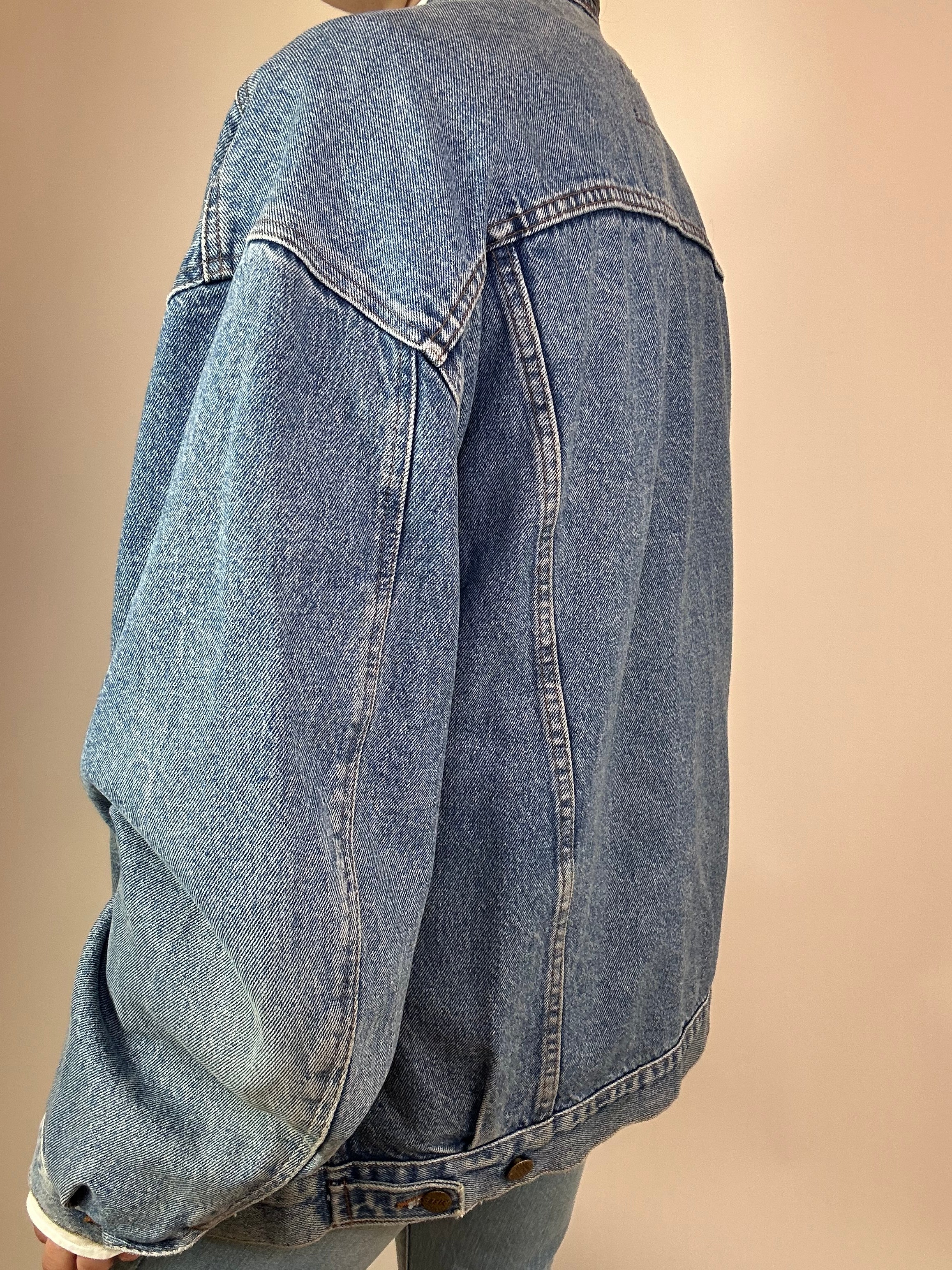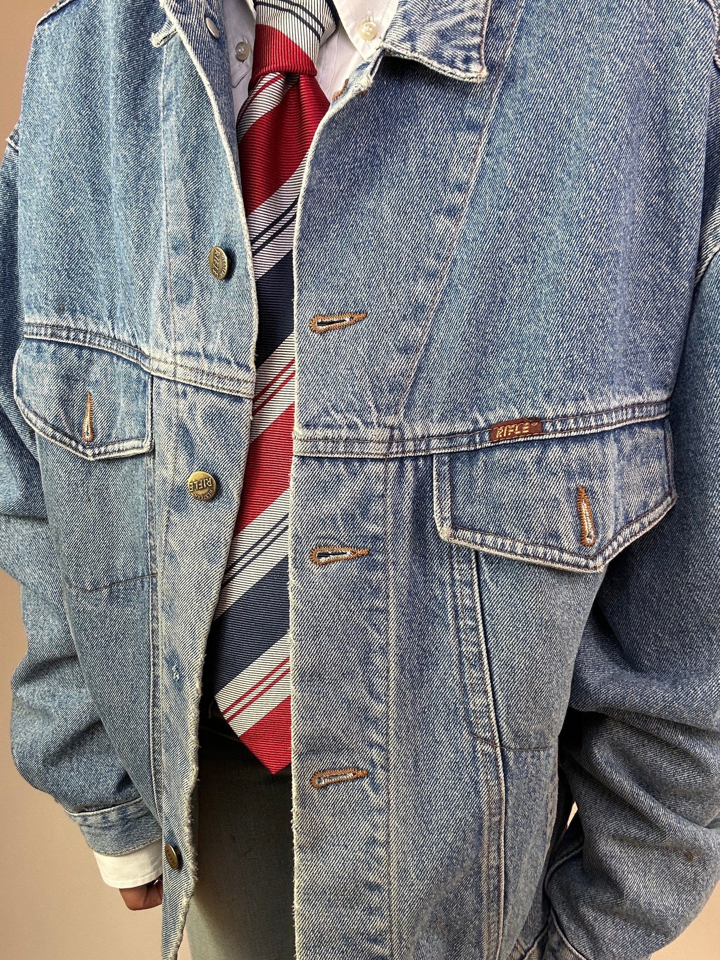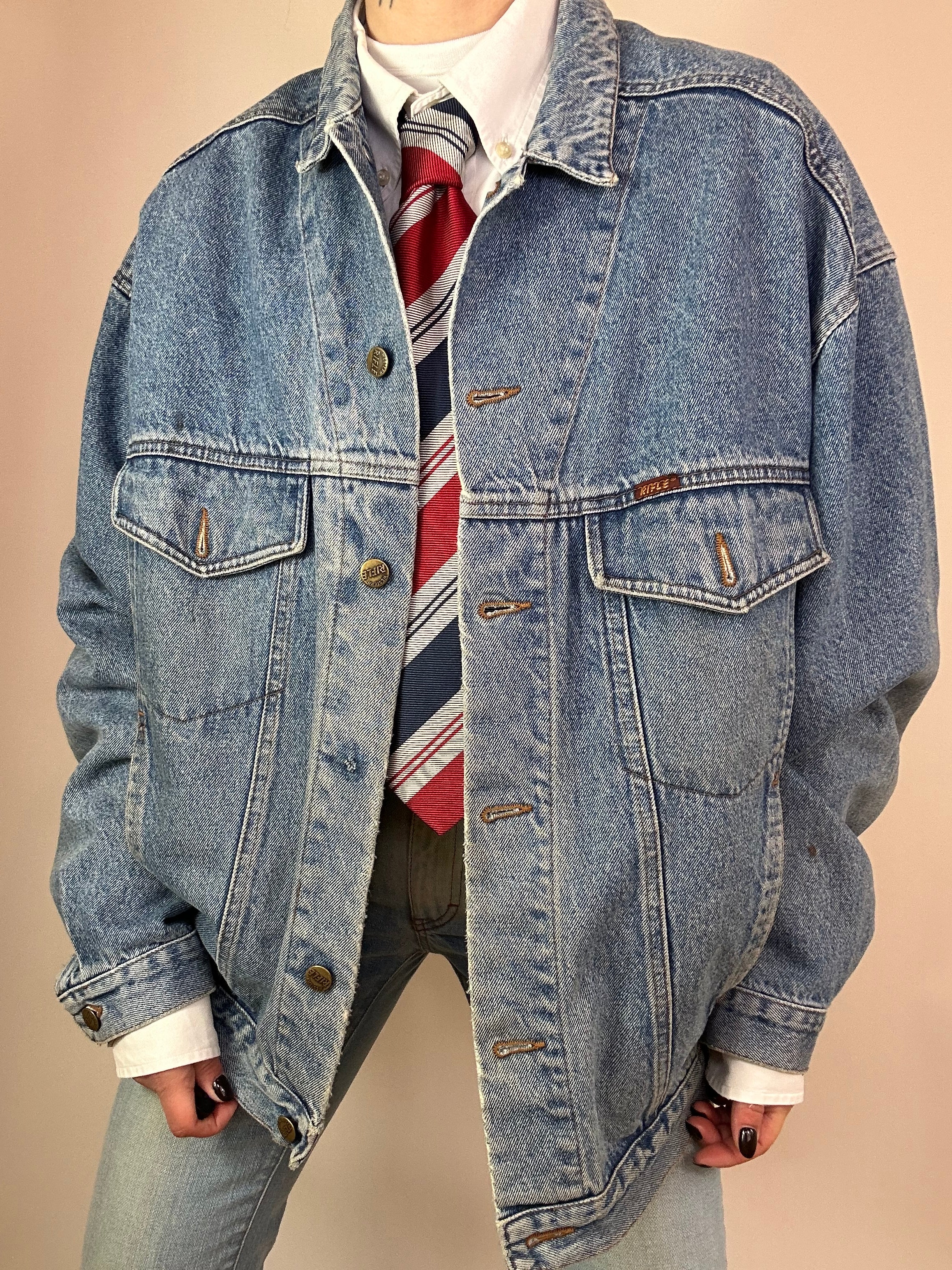 Jacket Denim Rifle taglia XXL  Vestibilità donna: 42-44 Misure capo: Spalla a spalla 64cm, Lunghezza 68cm Altezza modella: 1.65, taglia 42