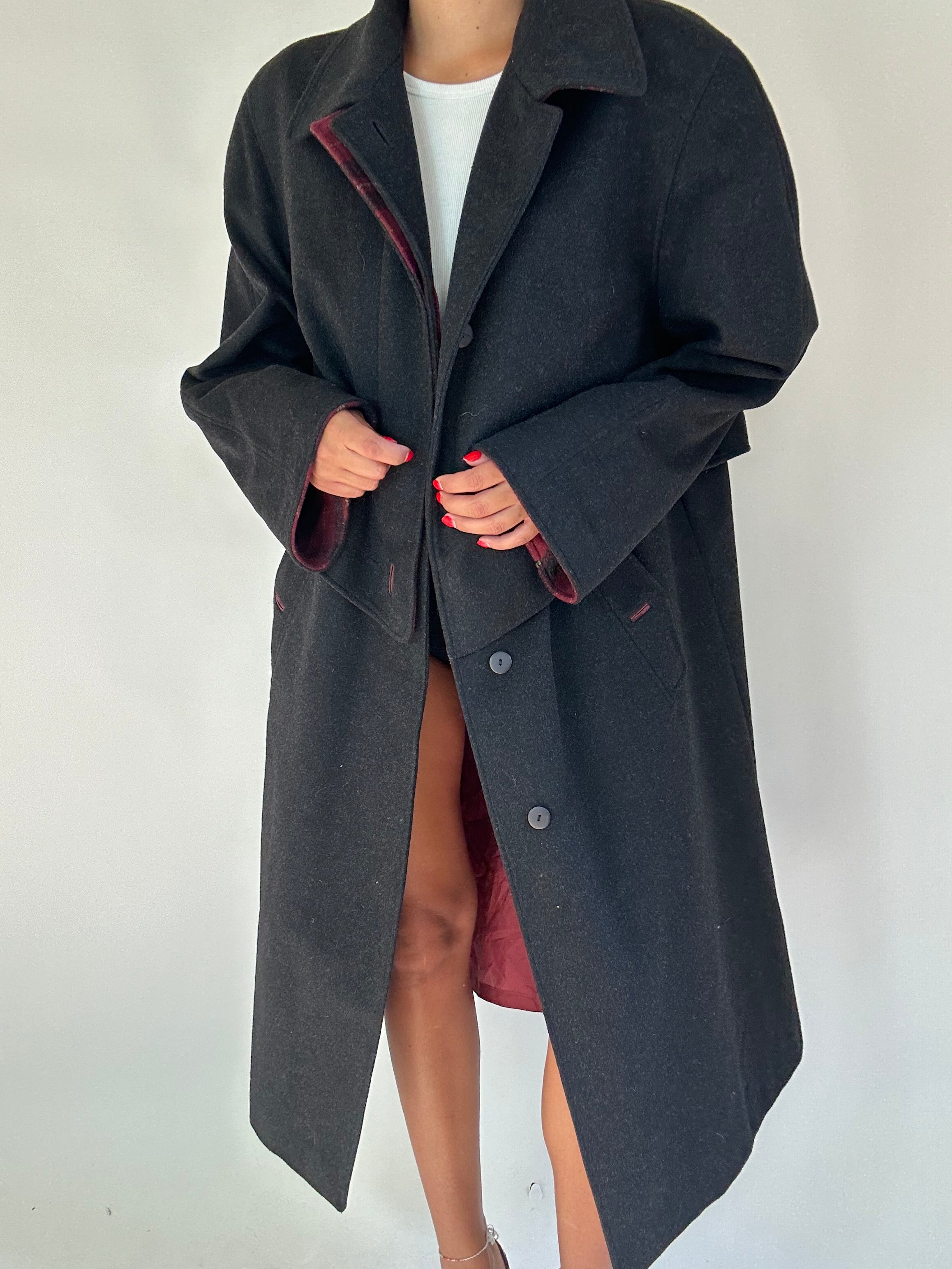 Loden Grigio taglia M in 70% Lana 5% Alpaca 25% Poliamide  Spalla a Spalla: 48cm Lunghezza totale: 110cm Taglia Modello\a:  42IT x 1,70