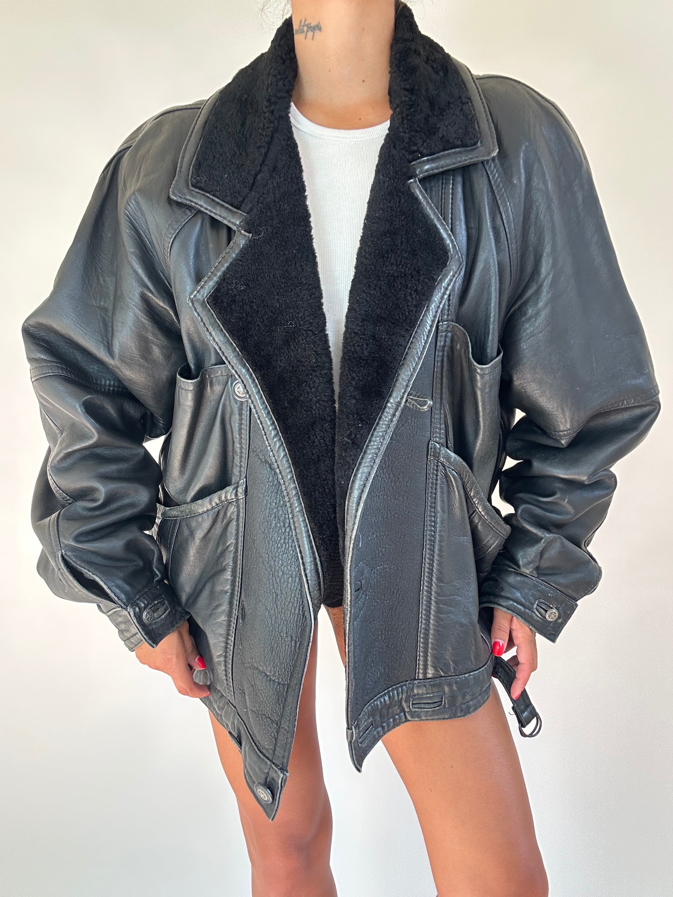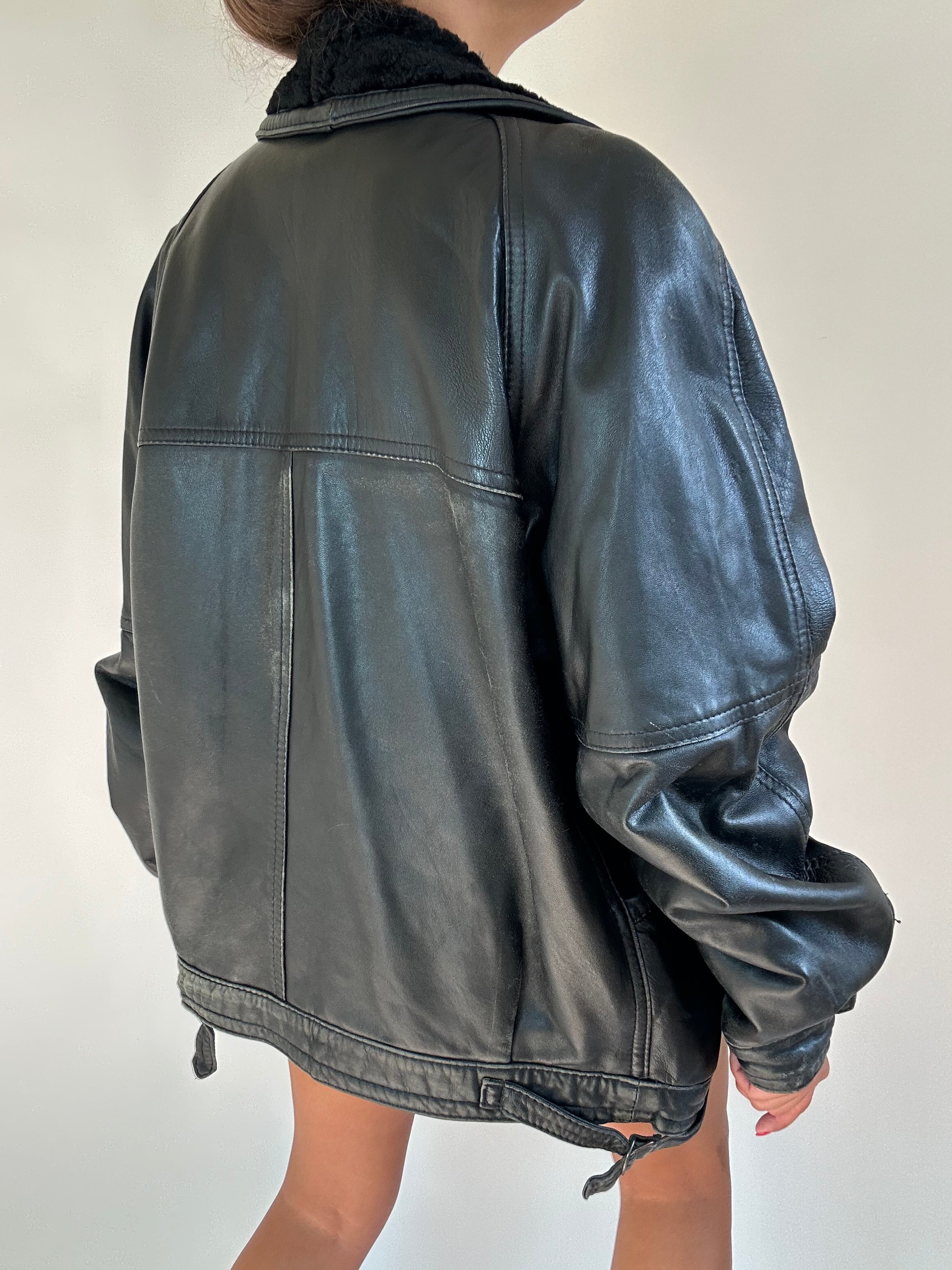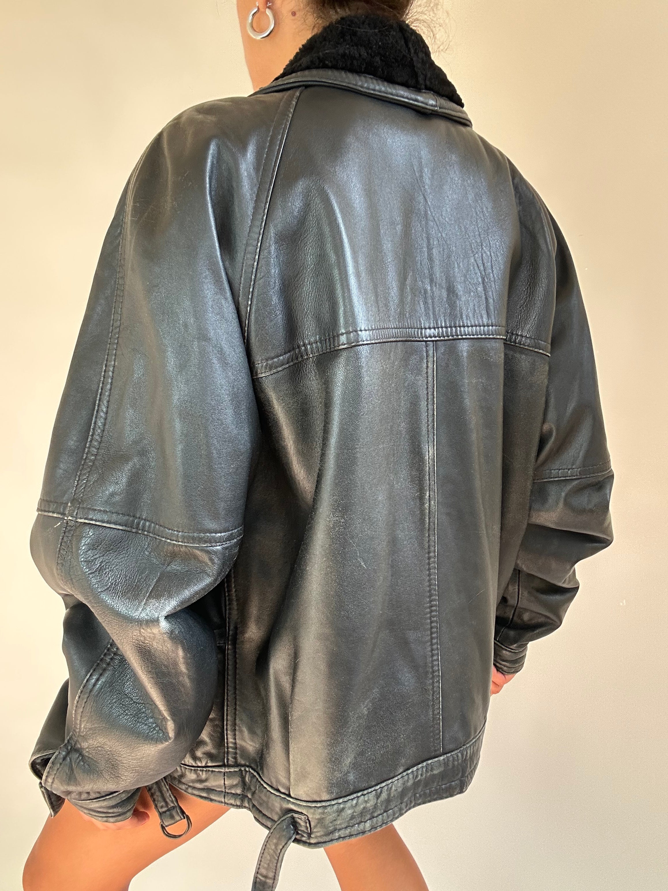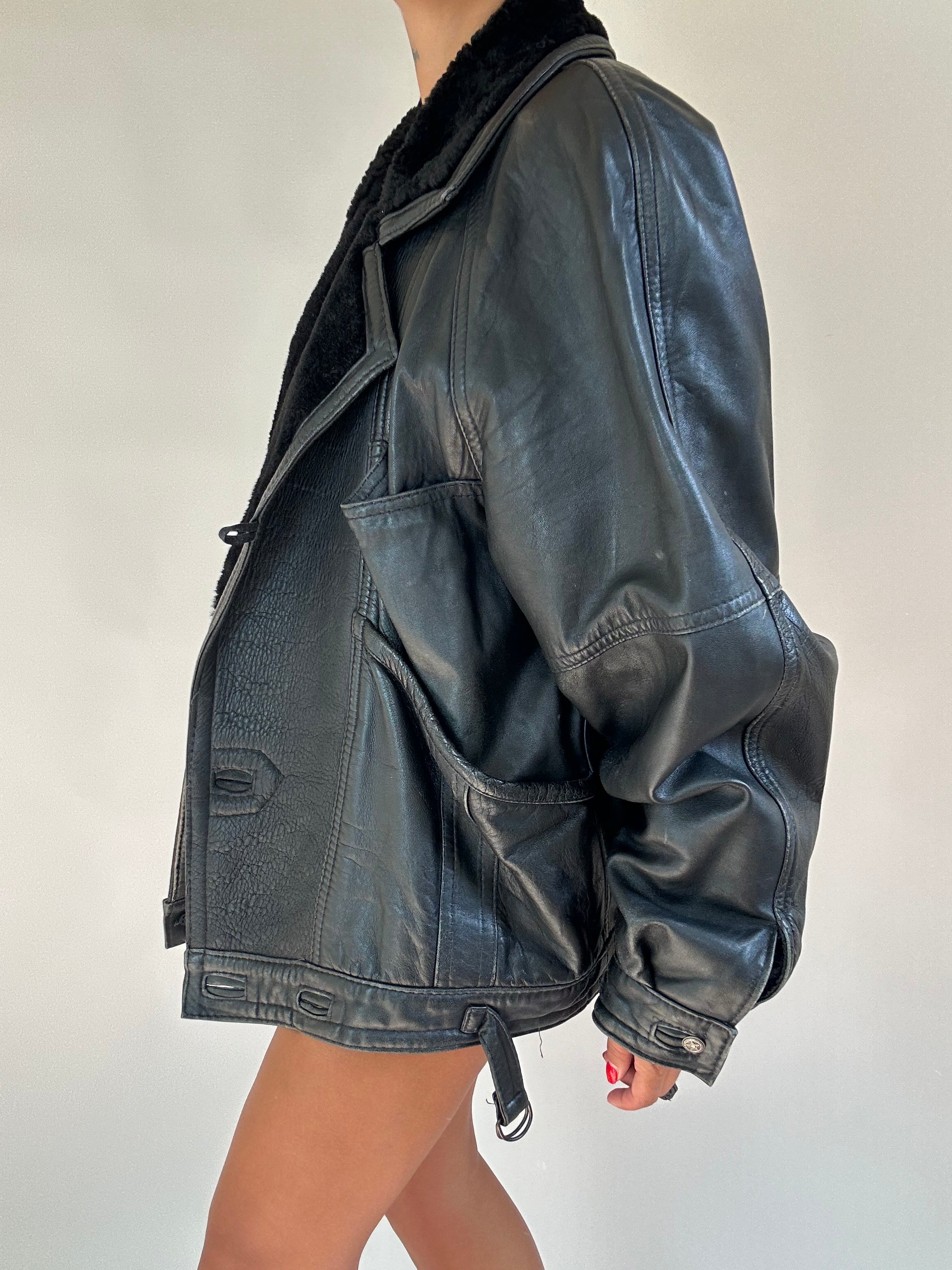 Montone nero taglia XL  Spalla a Spalla: 45cm Lunghezza totale: 71cm Taglia Modello\a: 42IT x 1,70 Composizione: Vera Pelle