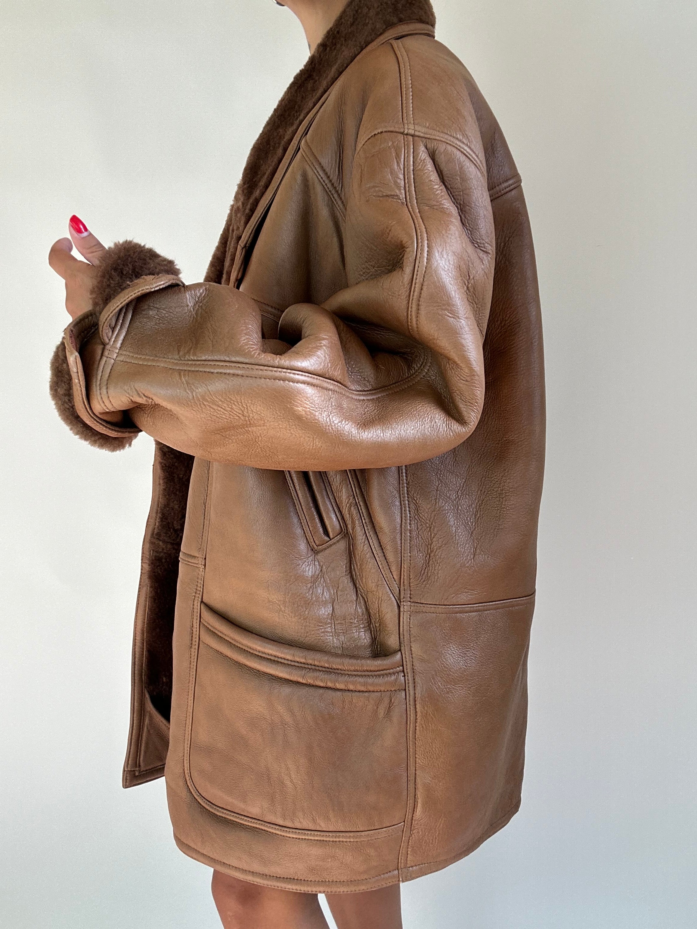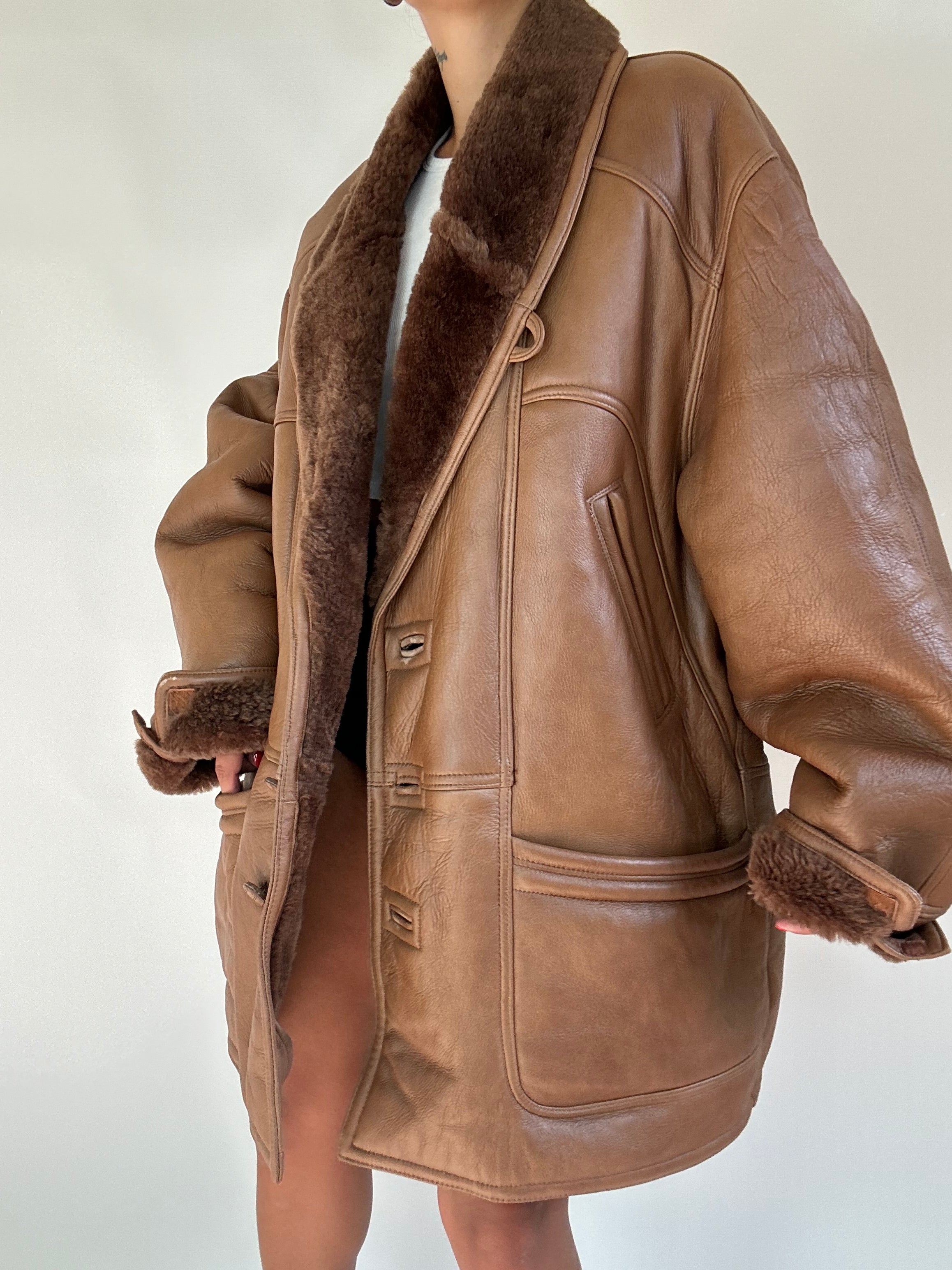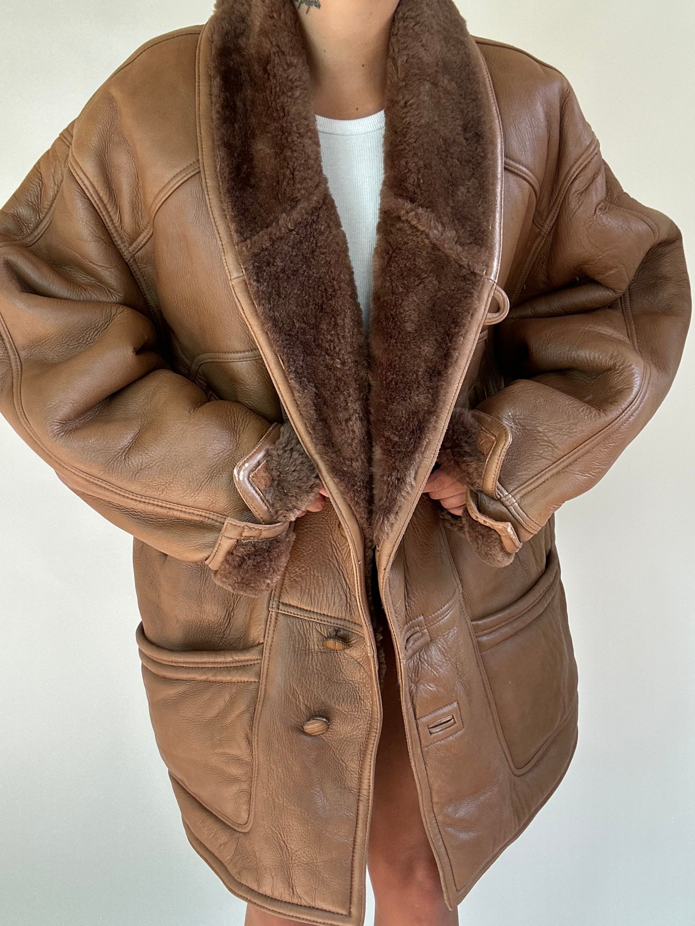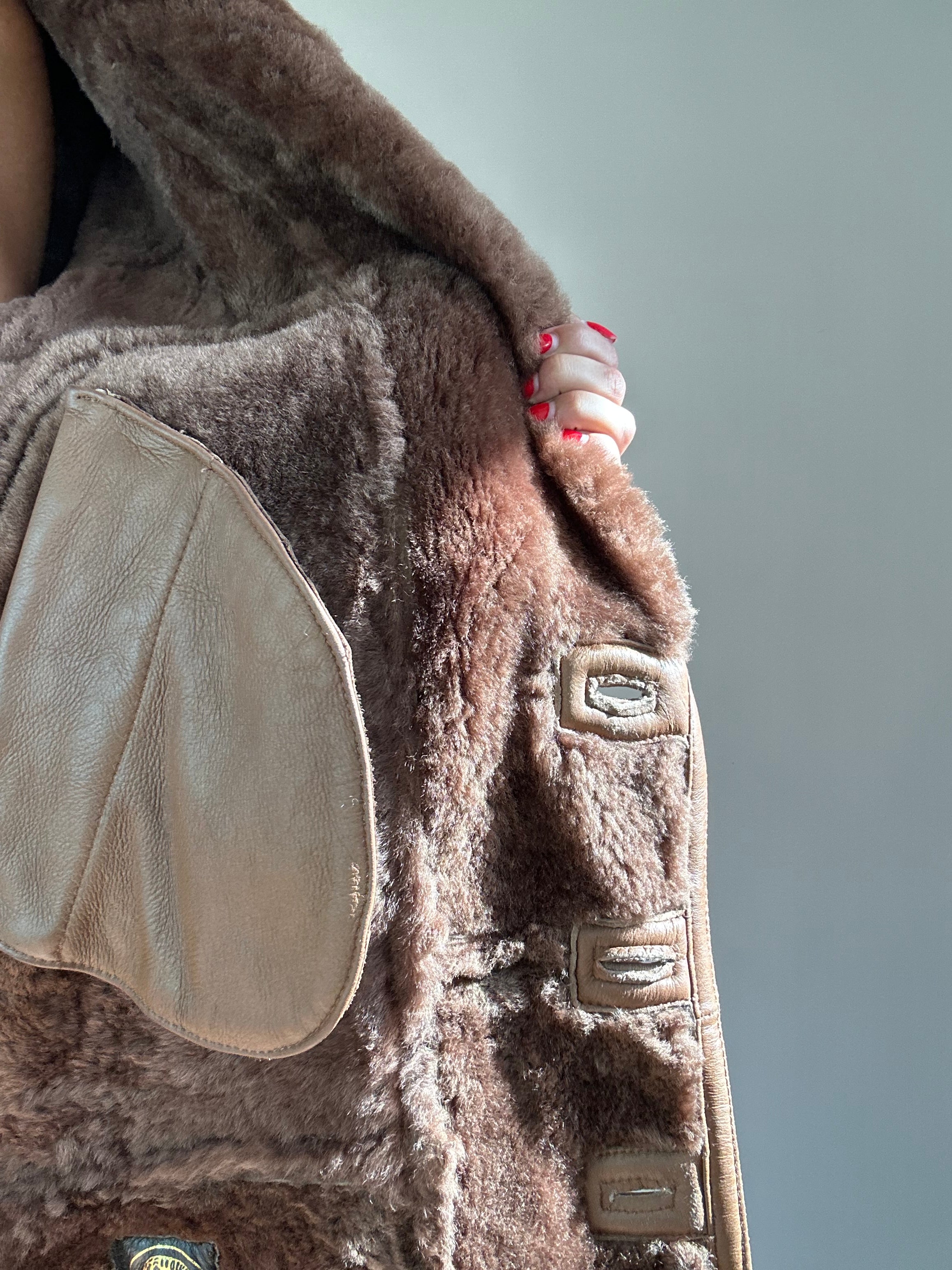 Montone Shearling color marrone taglia 56 Spalla a Spalla: 60cm  Lunghezza totale: 91cm Taglia Modello\a: 42IT x 1,70   Composizione: Vera Pelle