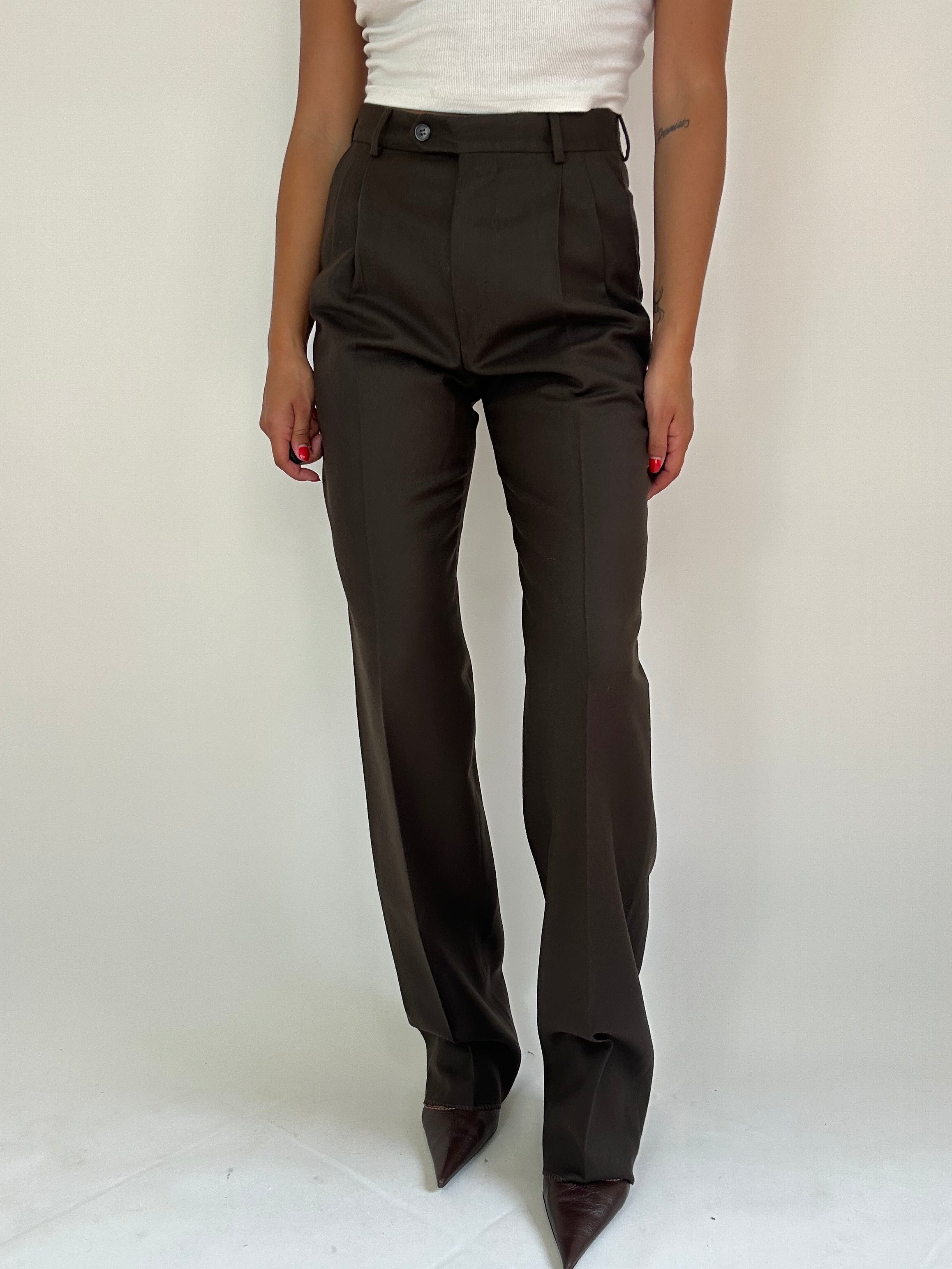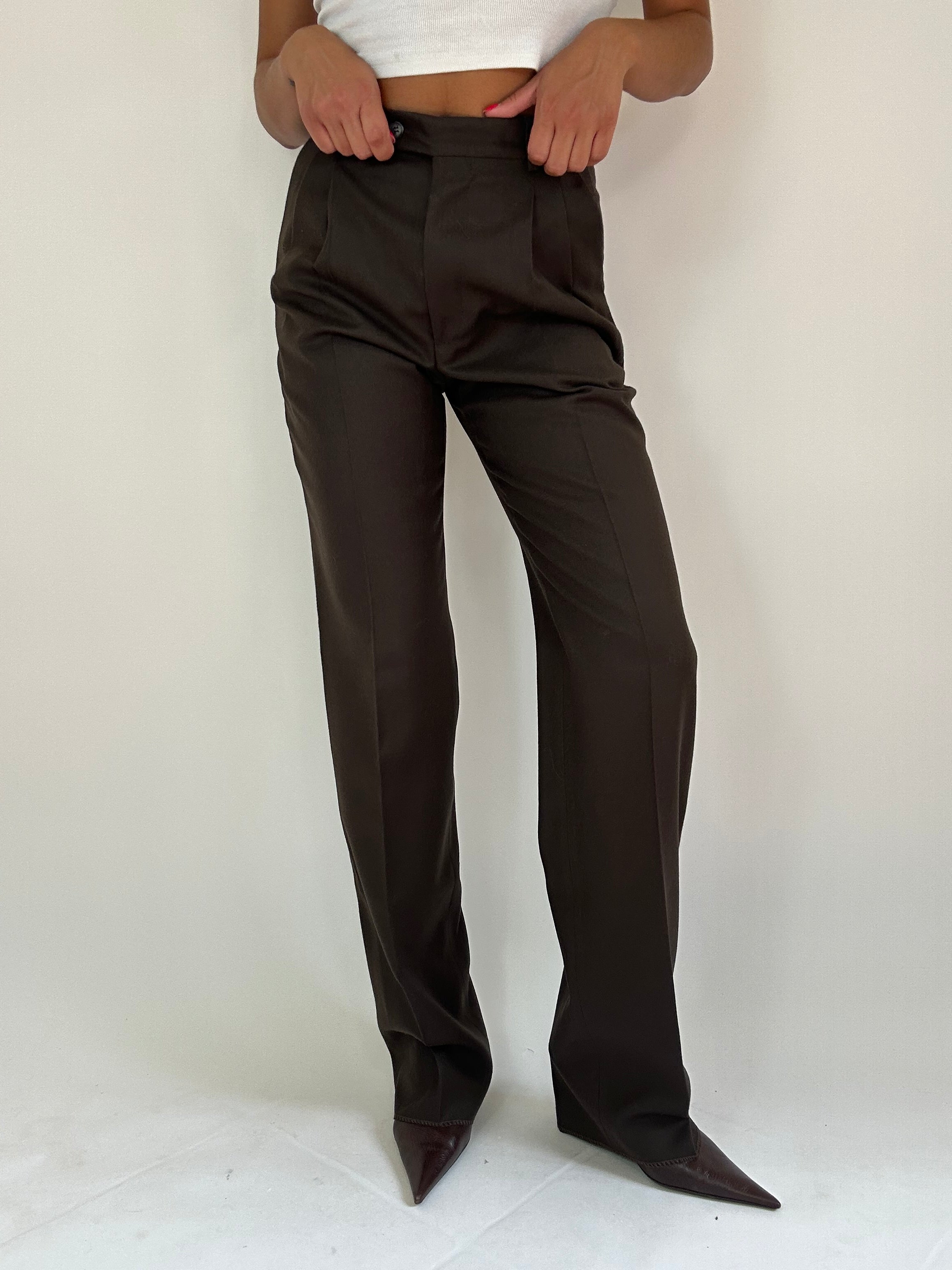 Pantalone sartoriale marrone taglia 44 in lana  vita piatta: 38cm  Lunghezza totale: 112cm Taglia Modello\a:  42IT x 1,70