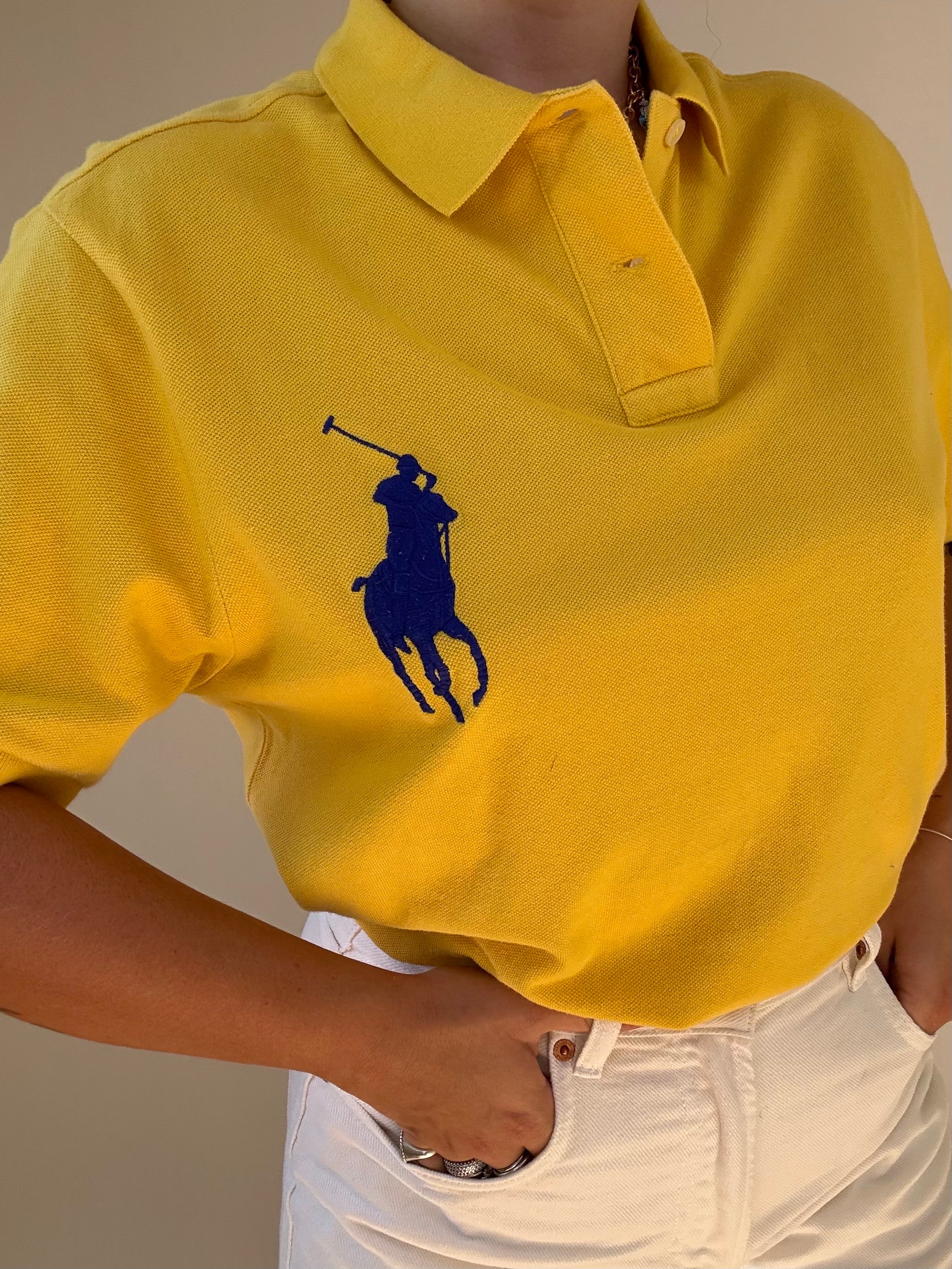 Polo Ralph Lauren gialla con loghi uomo taglia L Slim Fit in 100% cotone Spalla a Spalla: 48cm Lunghezza totale: 73cm Taglia Modella\o:  42IT x 1,65cm