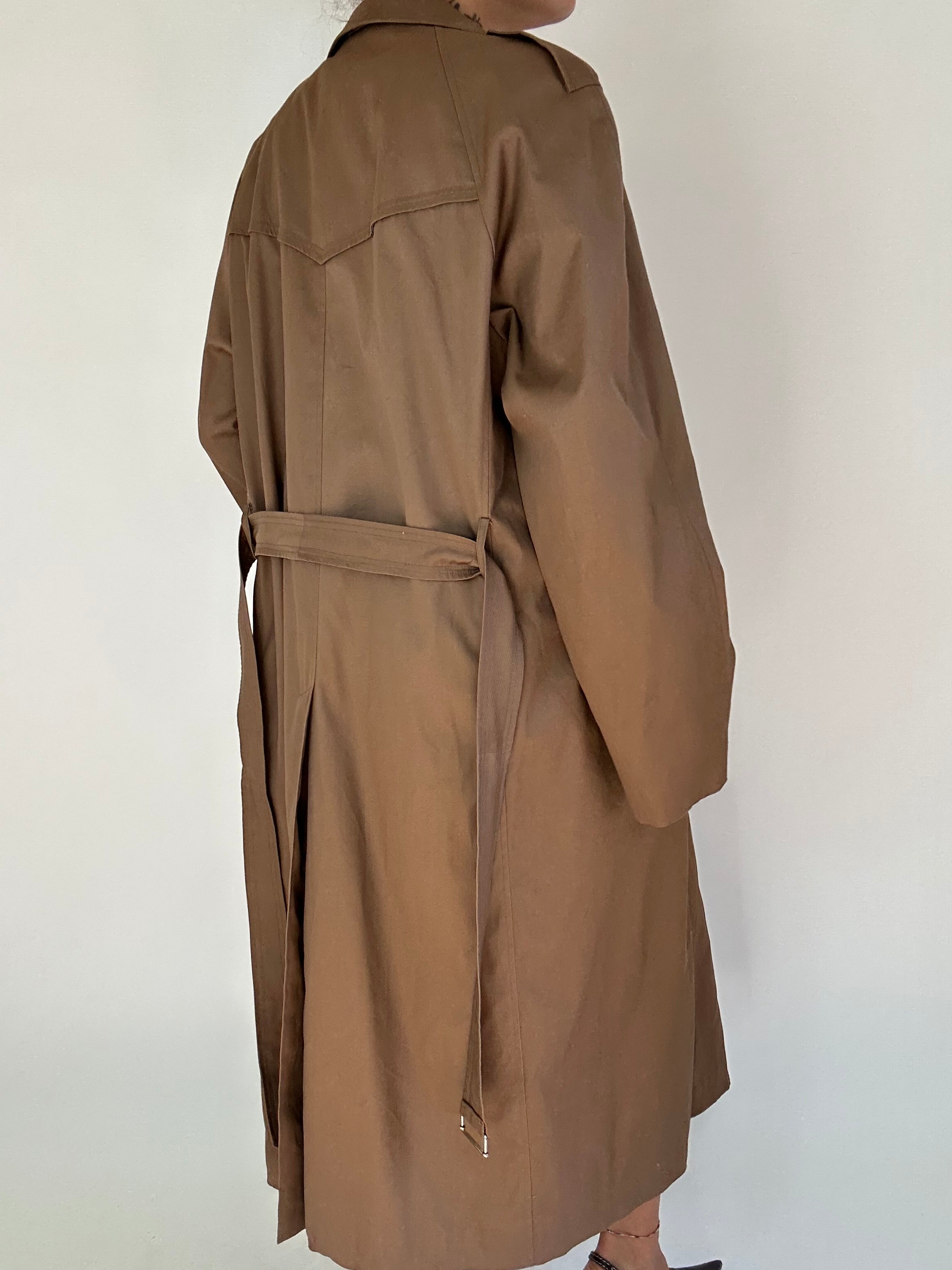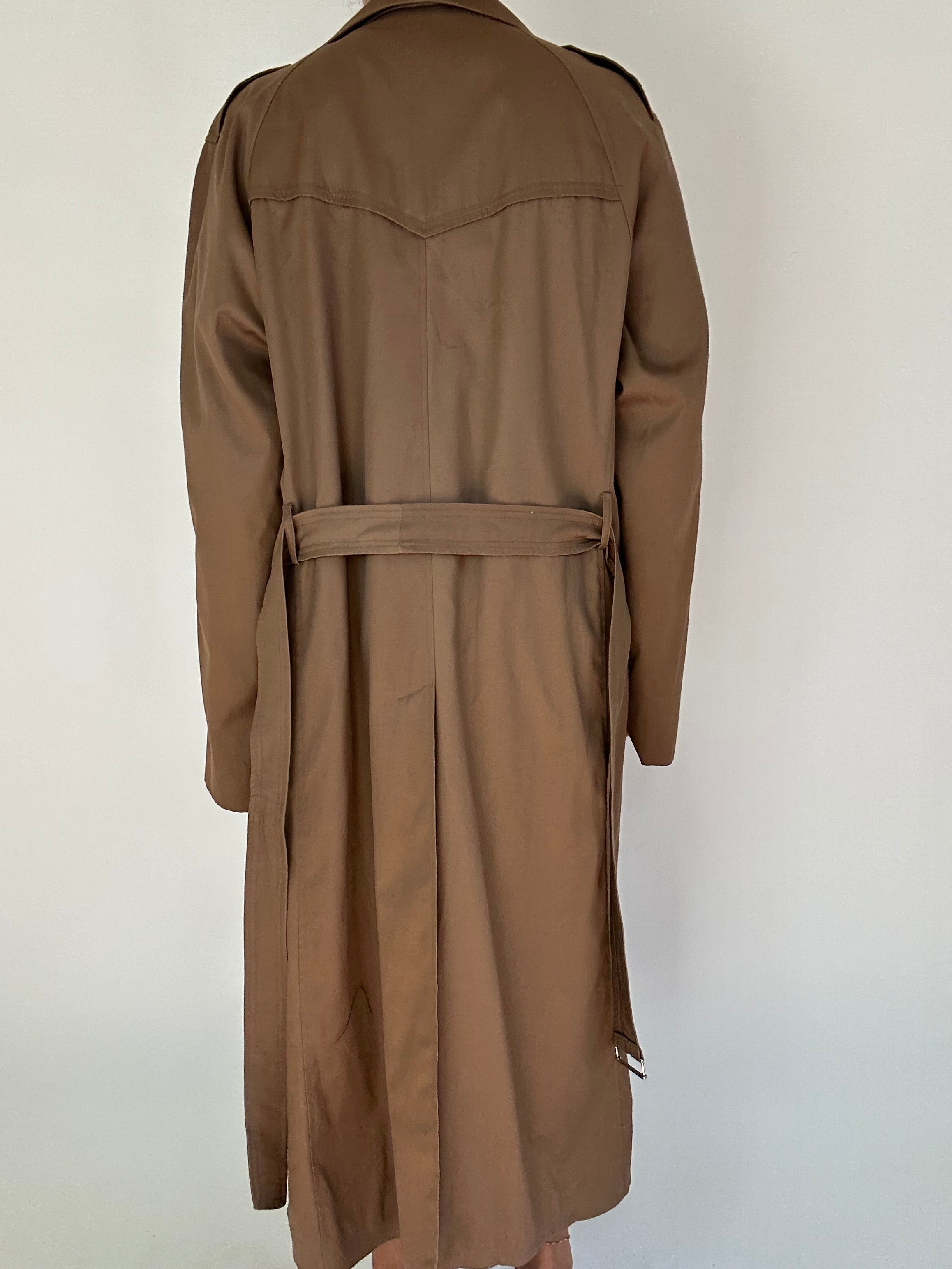 Trench doppio petto marrone taglia 54 Spalla a Spalla: 50cm Lunghezza totale: 125cm  Taglia Modello\a: 42IT x 1,70