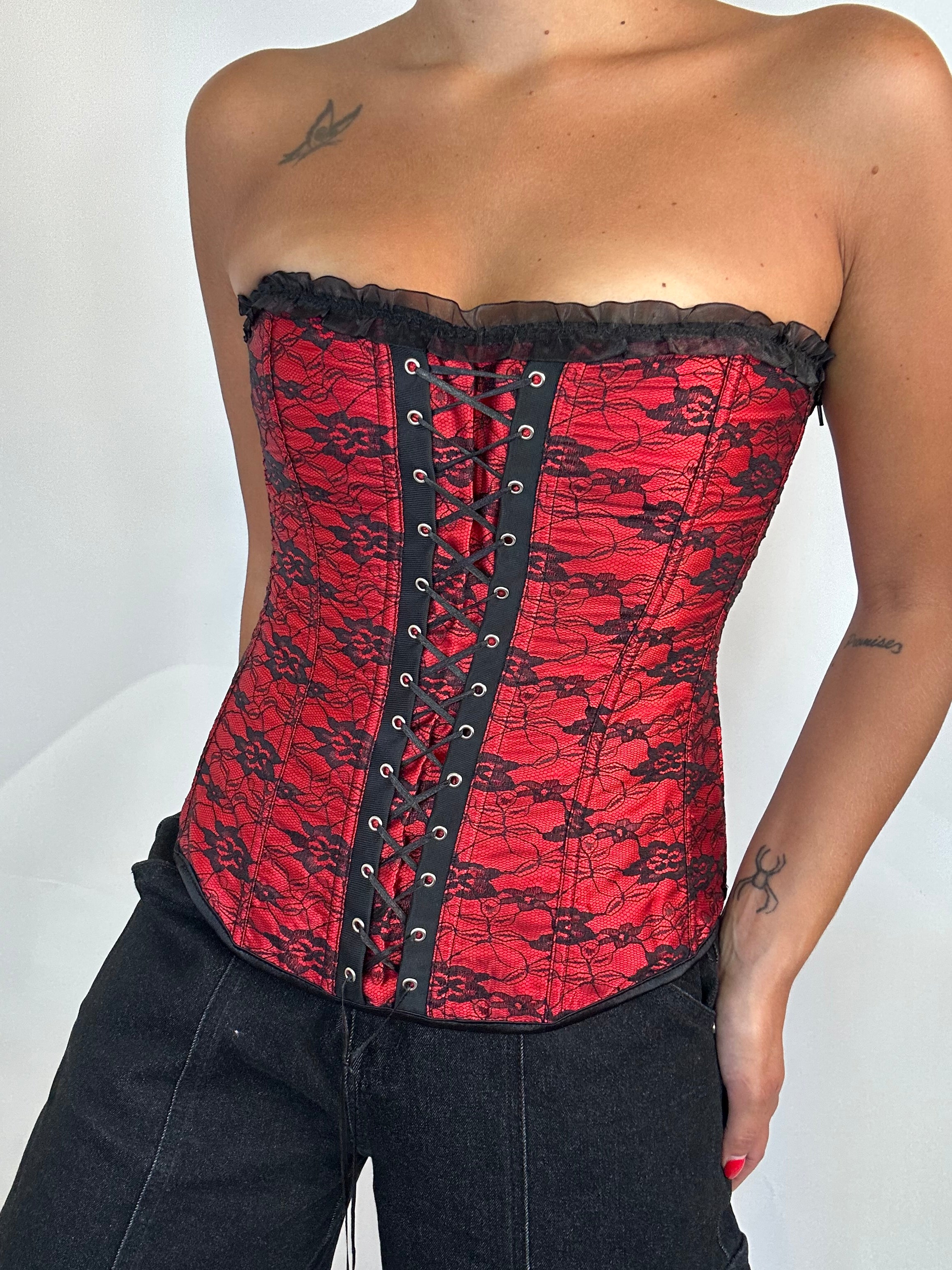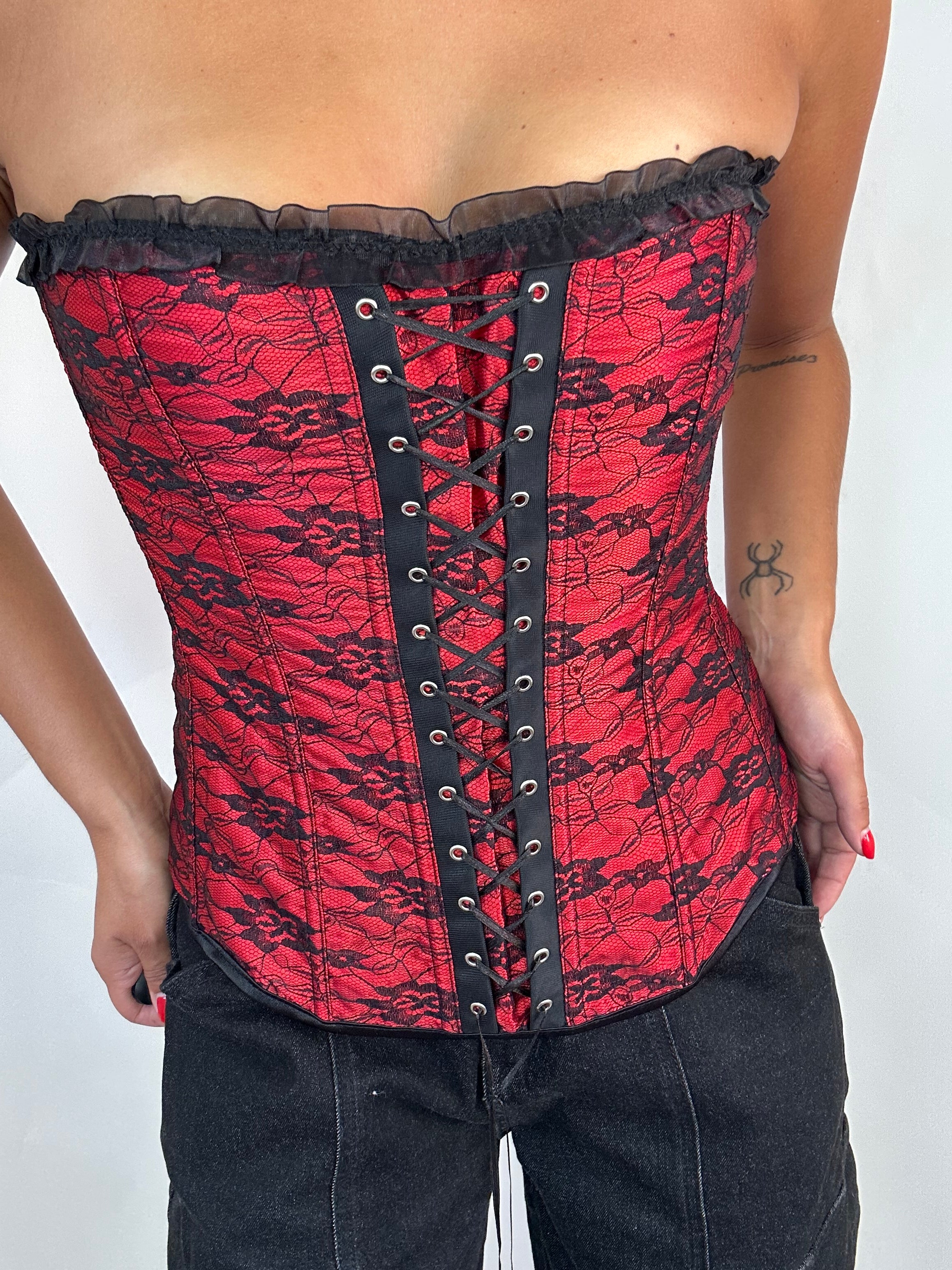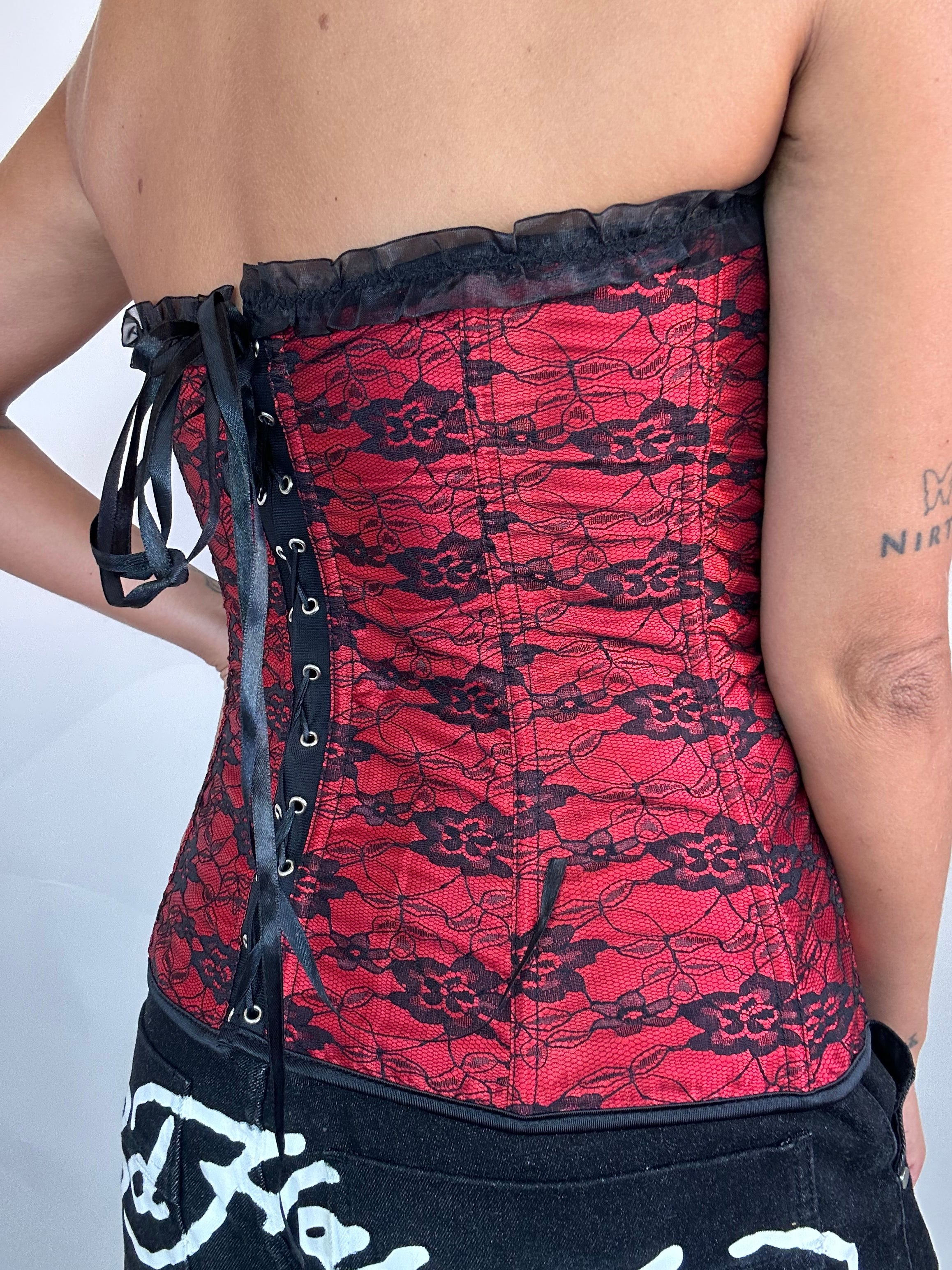 Corsetto Vintage ricamato rosso e nero taglia XL regolabile  Lunghezza totale: 36cm Taglia Modello\a:  42IT x 1,70