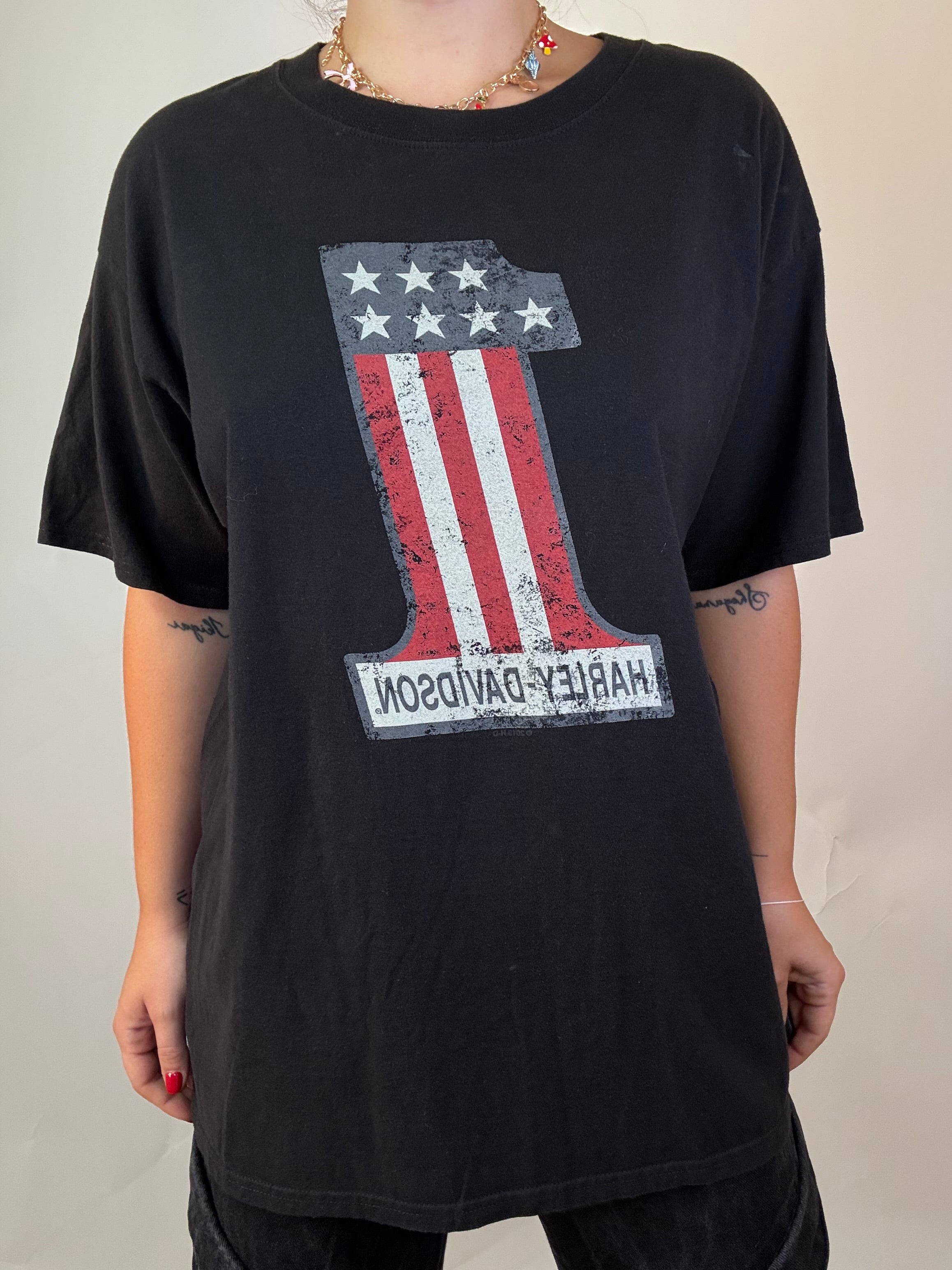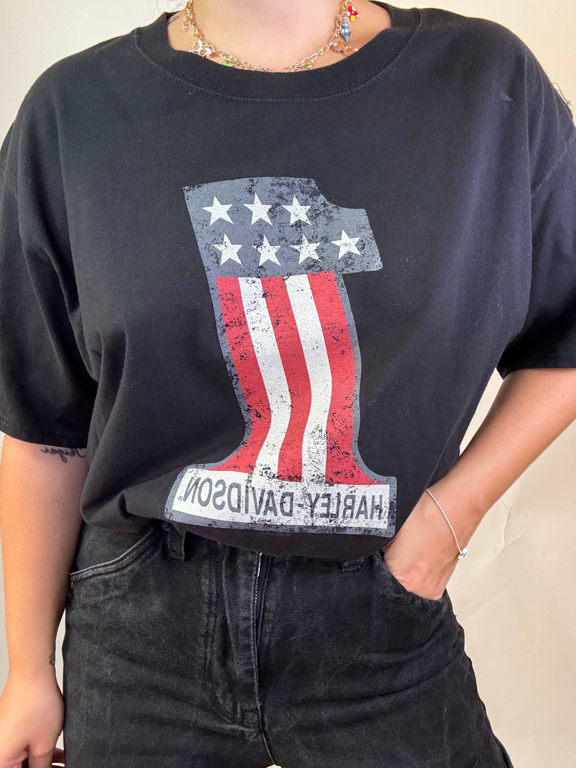 T-Shirt Harley Davidson taglia L con stampe in 100% cotone Spalla a Spalla: 53cm Lunghezza totale: 73cm Taglia Modello\o:  42IT x 1,65cm