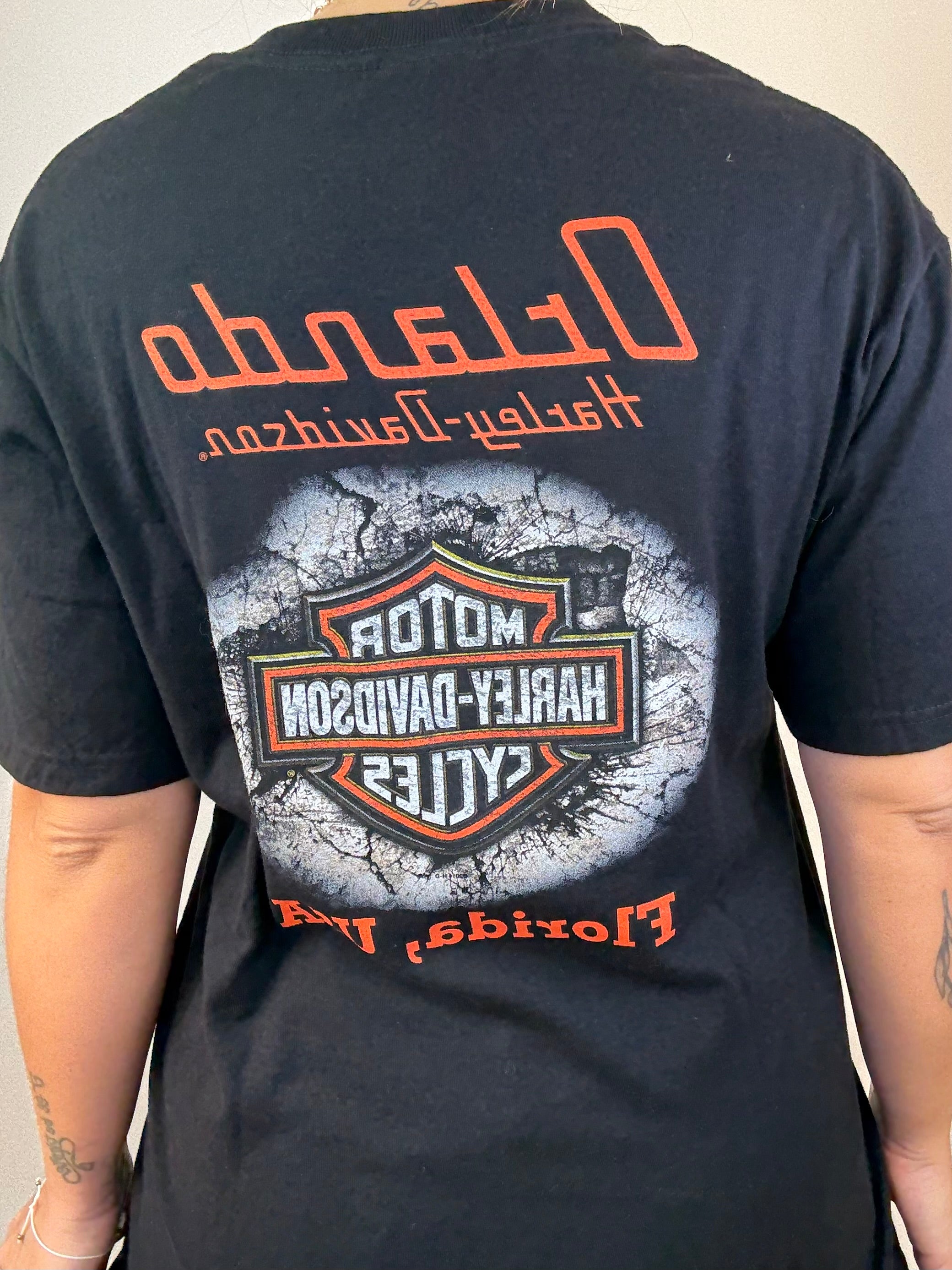 T-Shirt Harley Davidson con stampe taglia M in 100% cotone Spalla a Spalla: 48cm Lunghezza totale: 73cm Taglia Modello\o:  42IT x 1,65cm