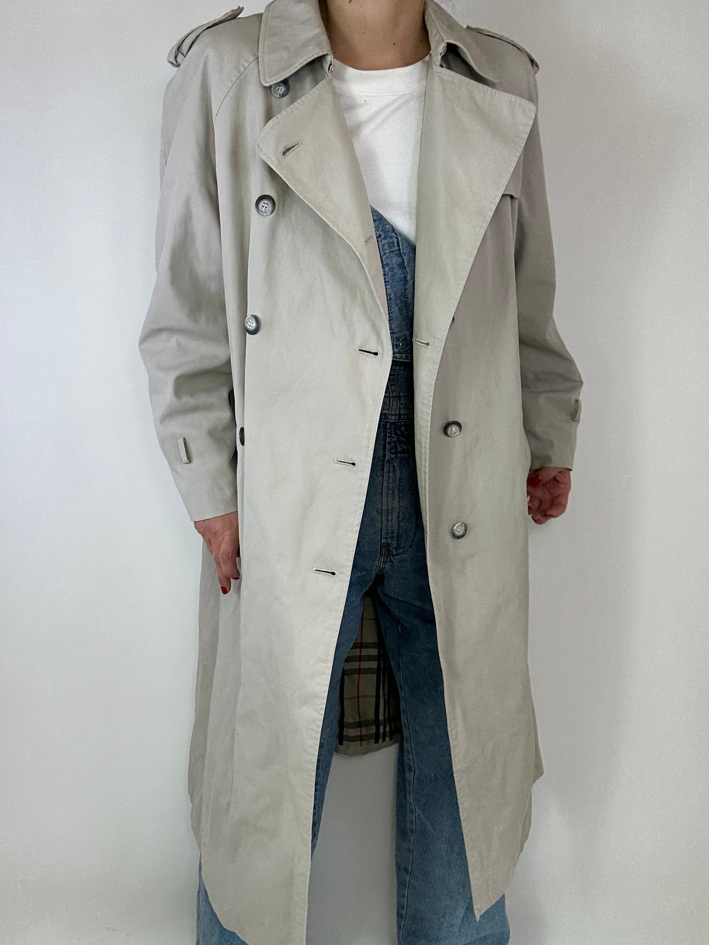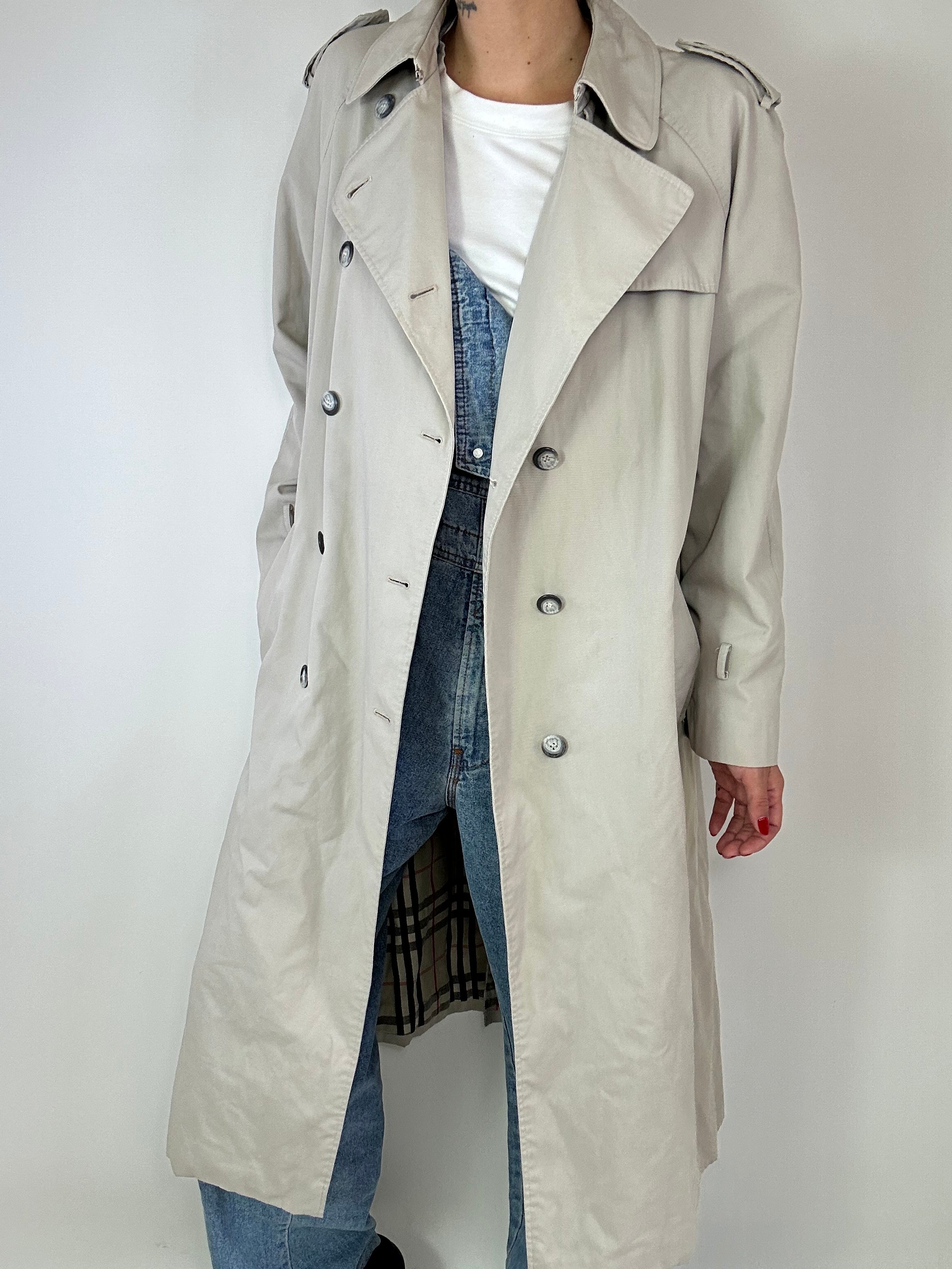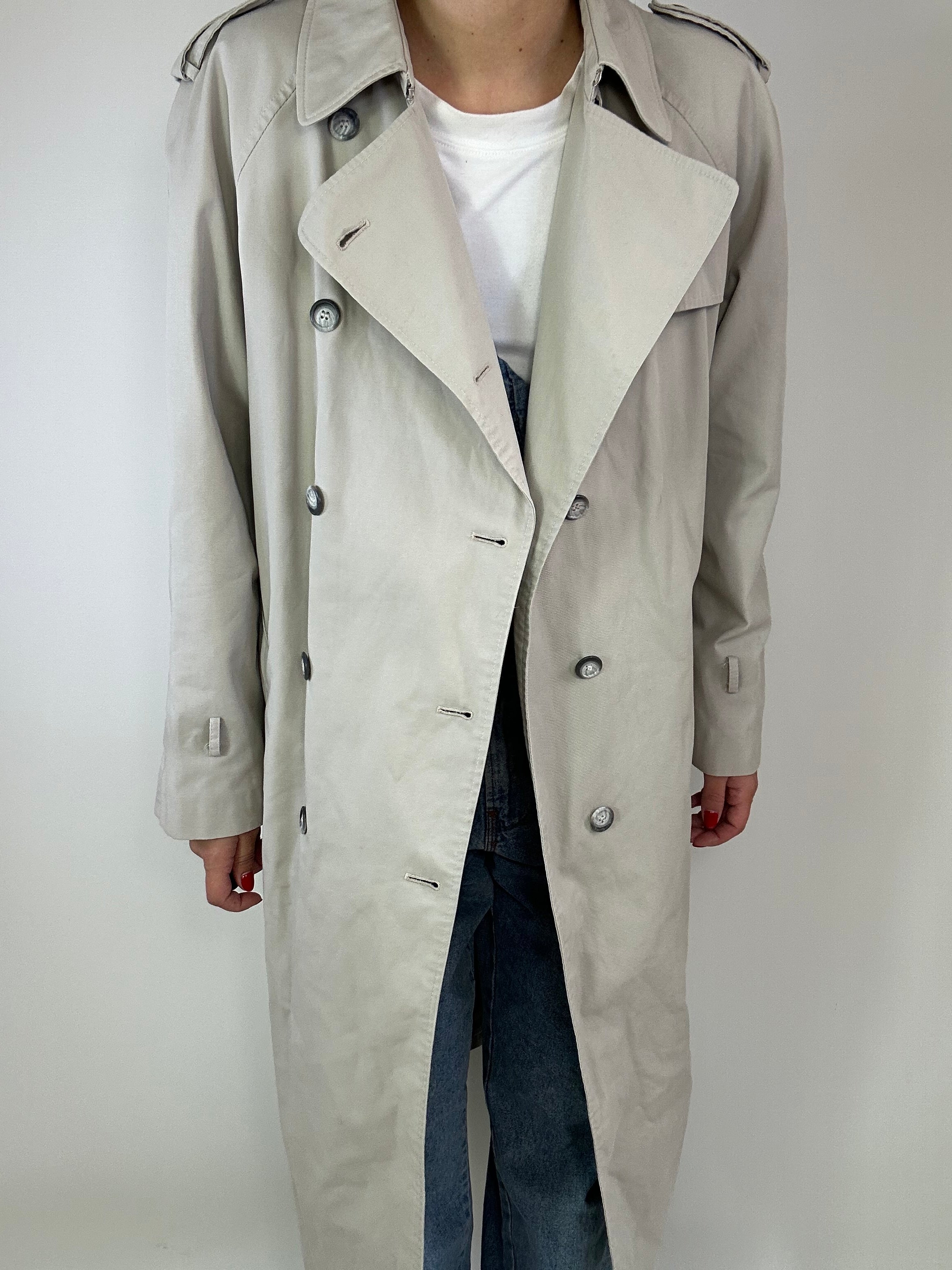 Trench doppio petto color panna taglia 46 Spalla a Spalla: 47cm Lunghezza totale: 113cm  Taglia Modello\a:  42IT x 1,70