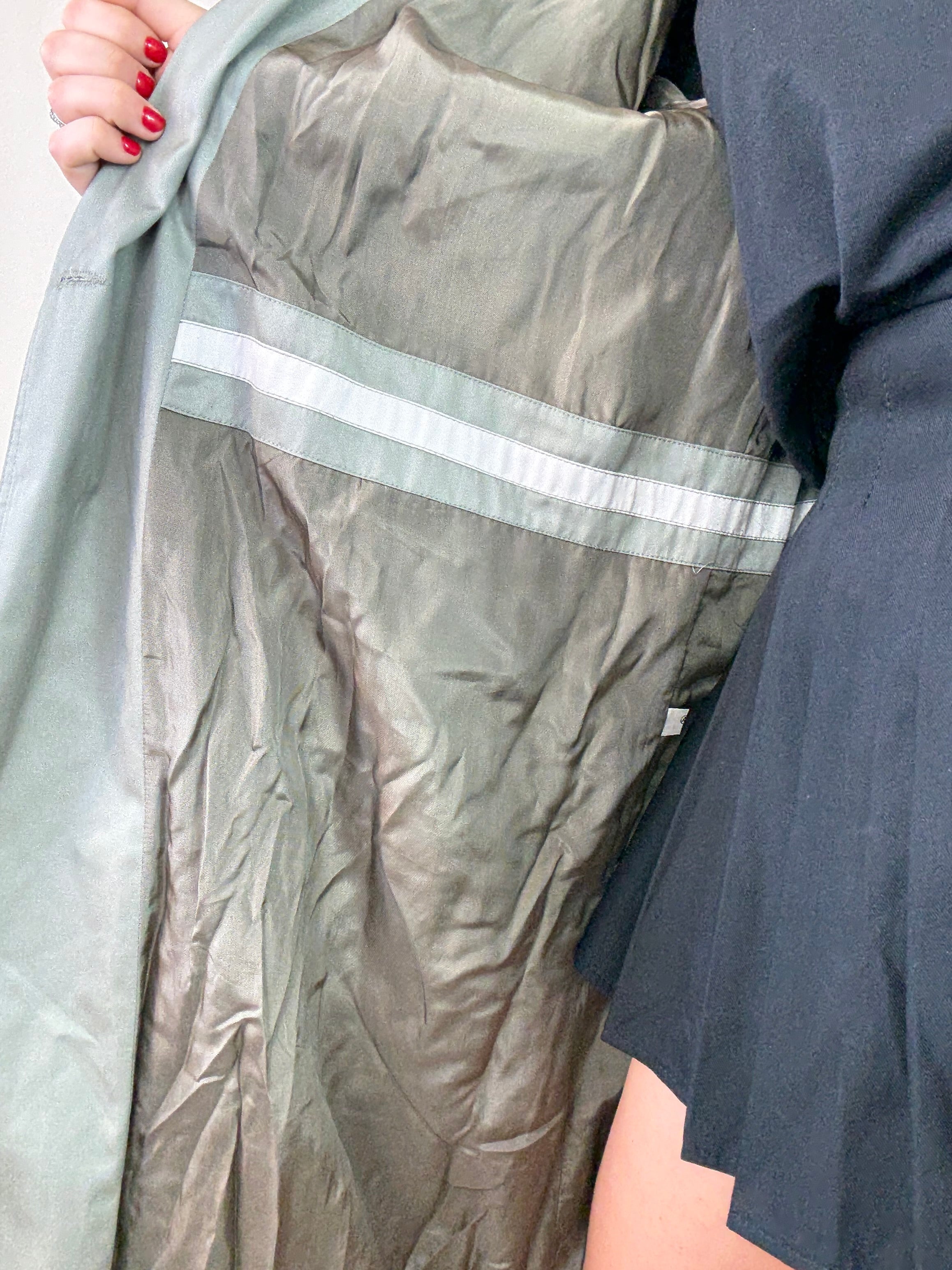 Trench Imbottito con spalline e cintura doppio petto taglia 48 Misure capo: Spalla a spalla 57cm, Lunghezza 121cm Modella: Taglia 42, 1.65mt