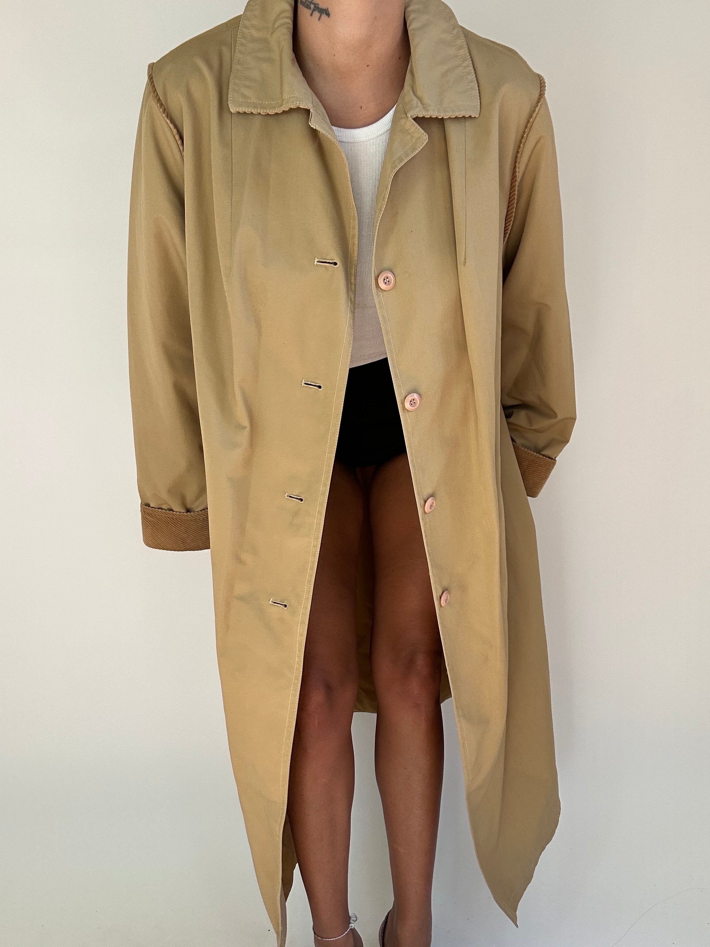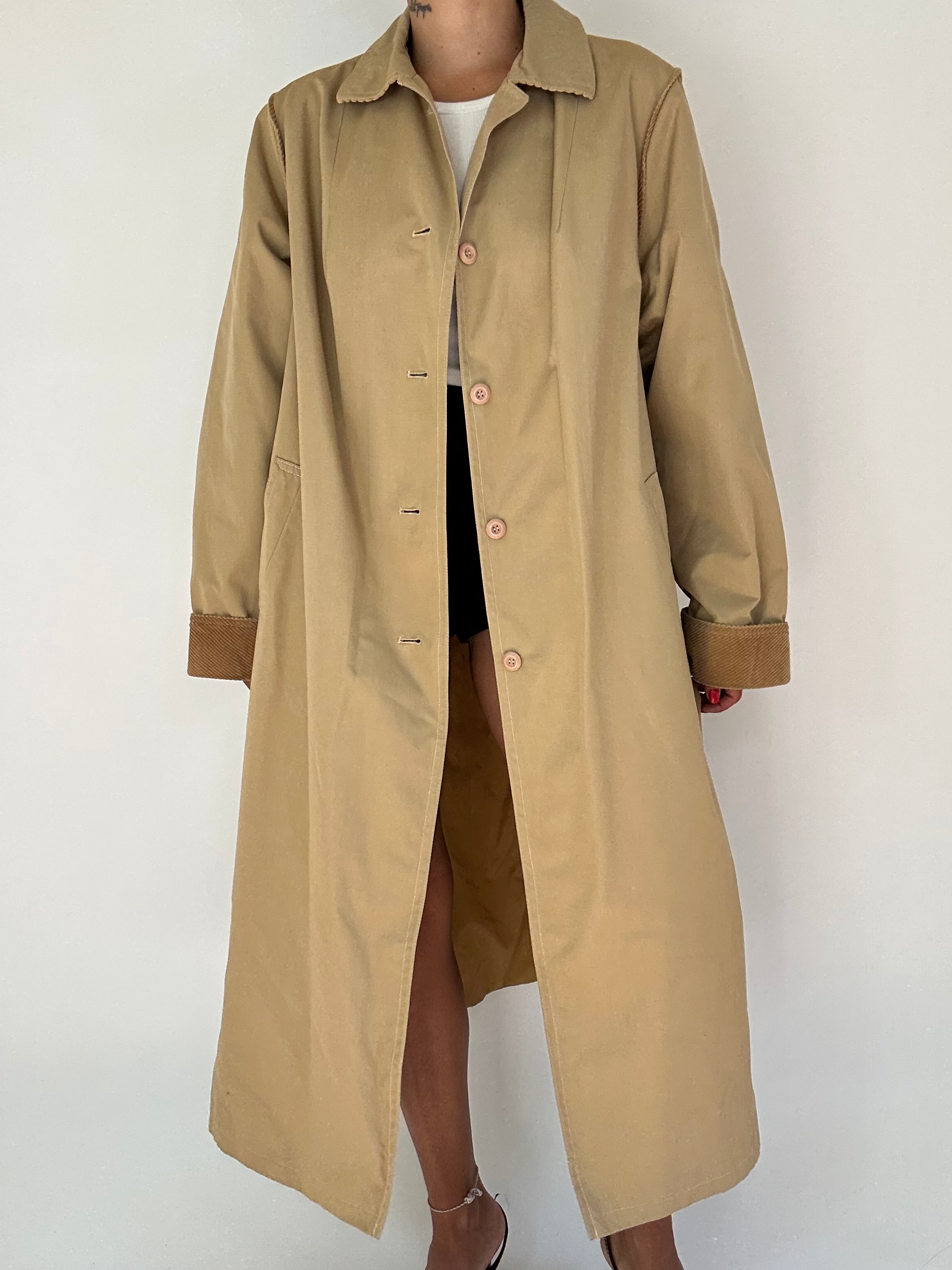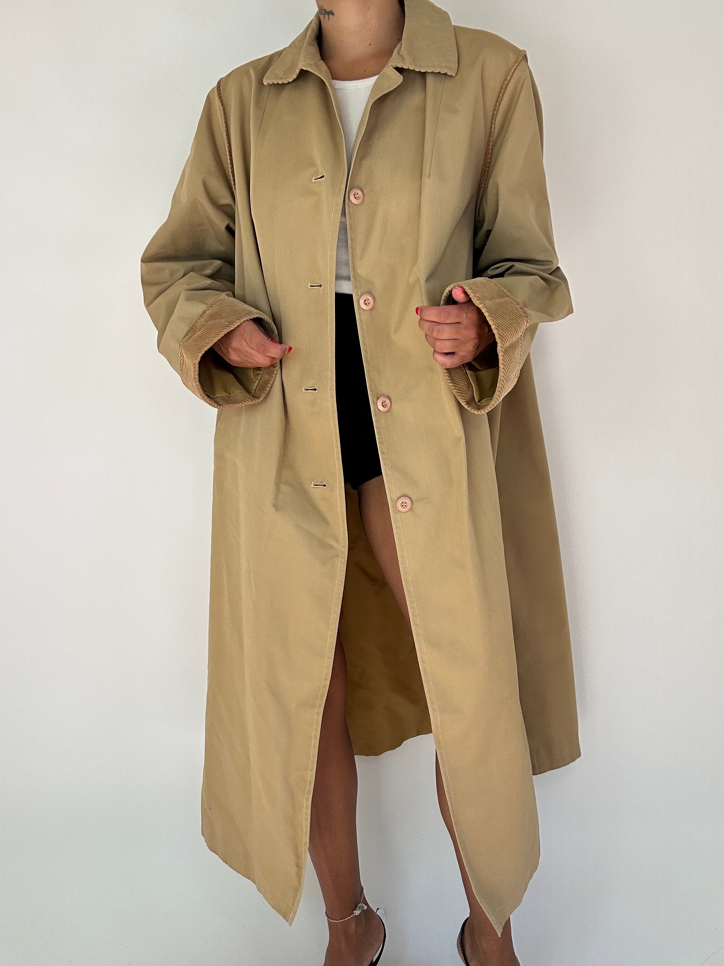 Trench made in italy color biscotto con inserti in velluto a costine taglia S